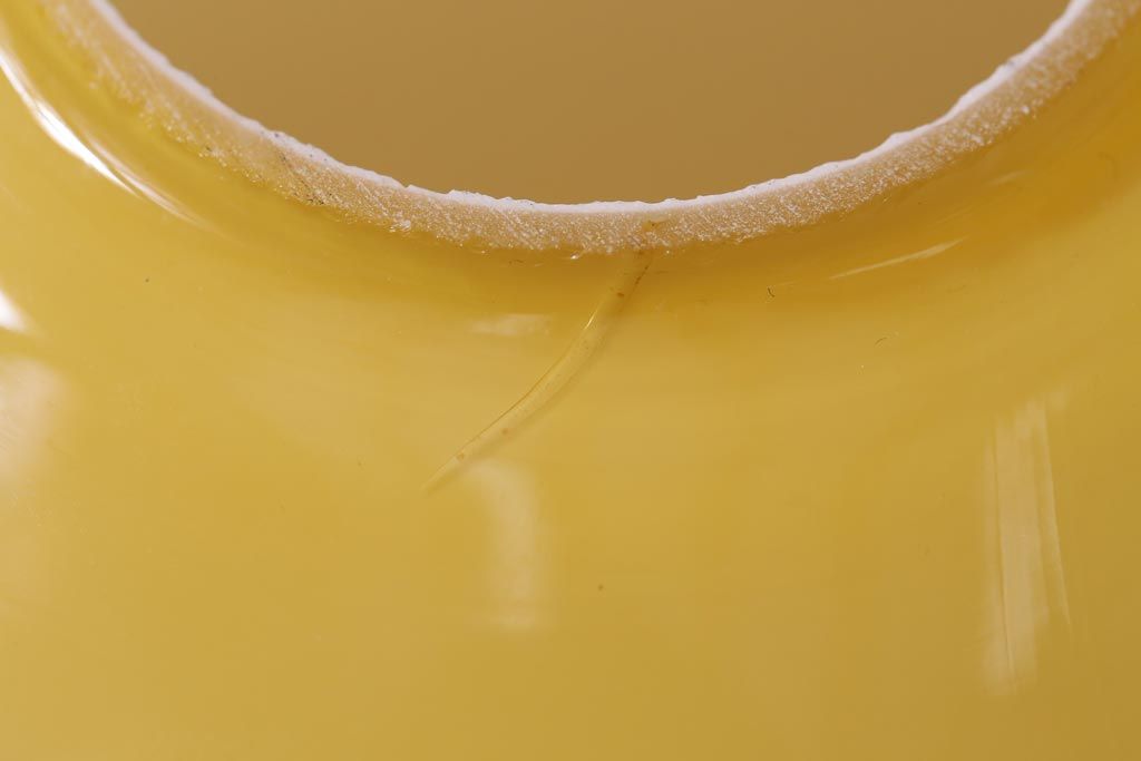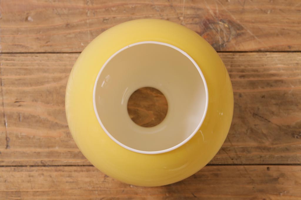 丸い形に淡いイエローのカラーが目を引くお品です。