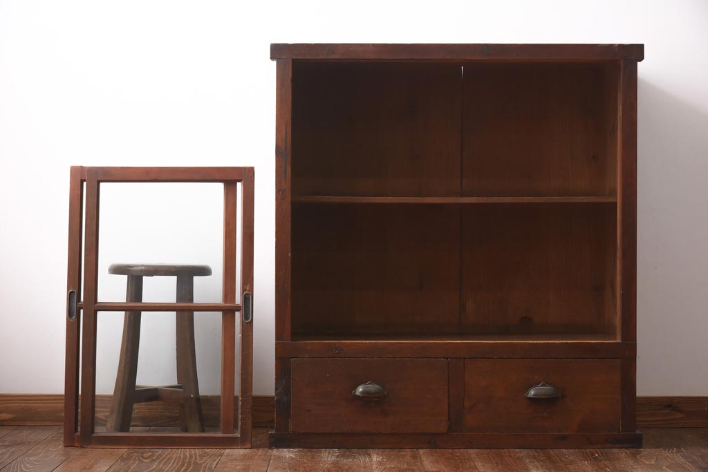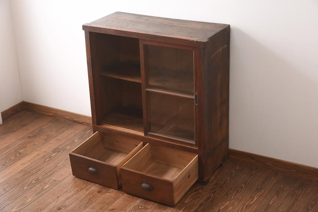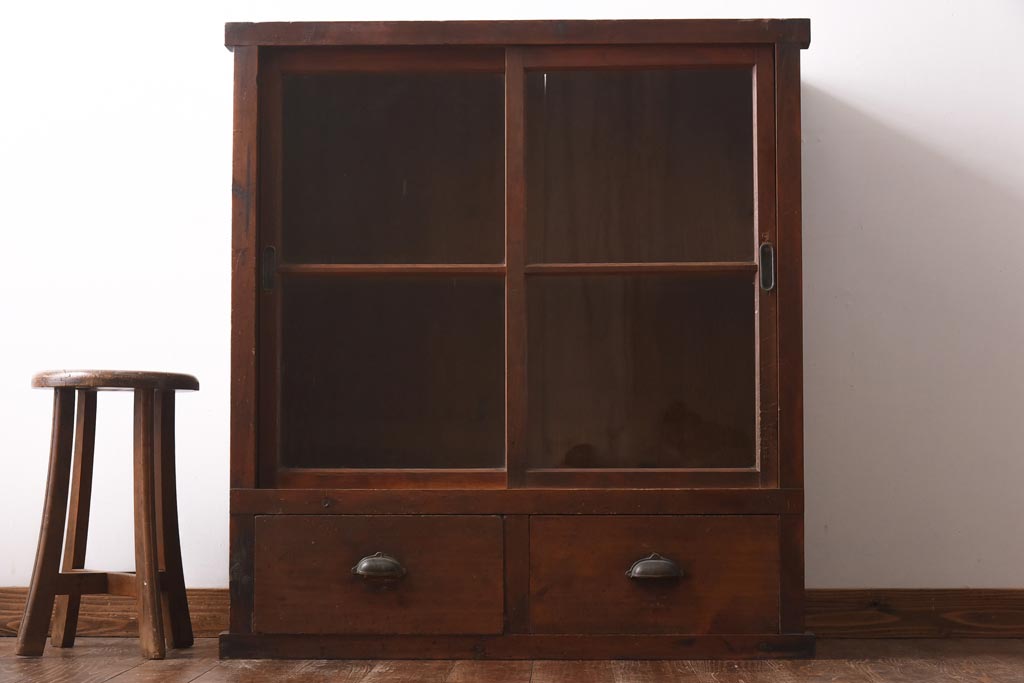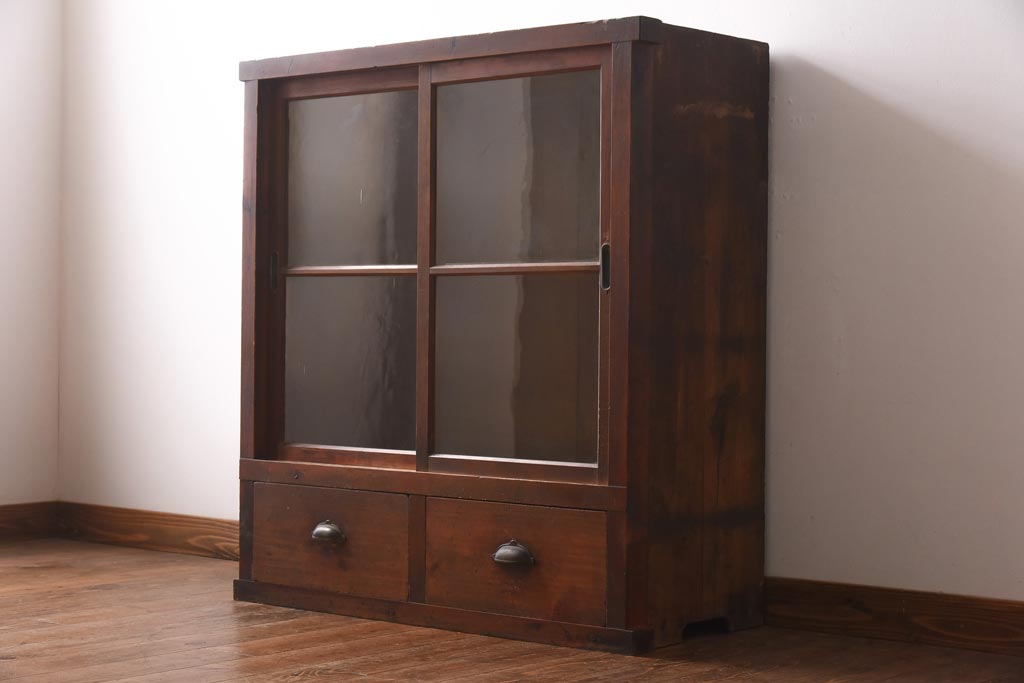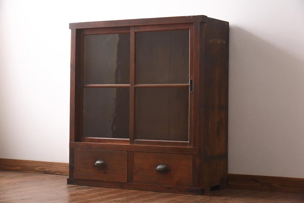キャビネット・戸棚 > レトロ家具 和製アンティーク ゆらゆらガラスがレトロな雰囲気を演出するガラス戸棚(収納棚、飾り棚)(R-038596)