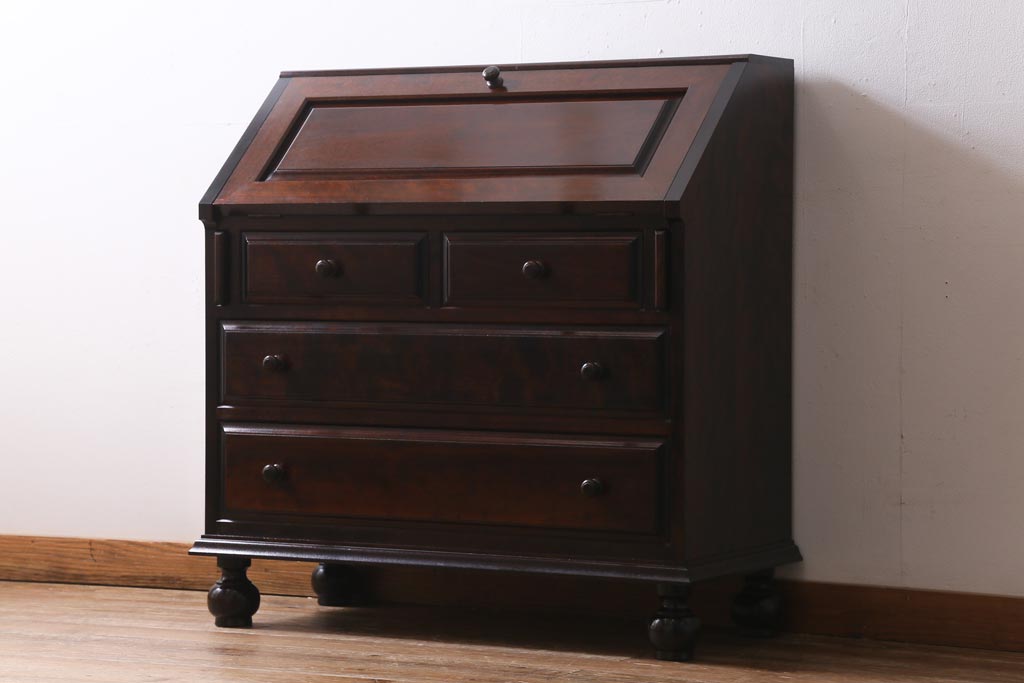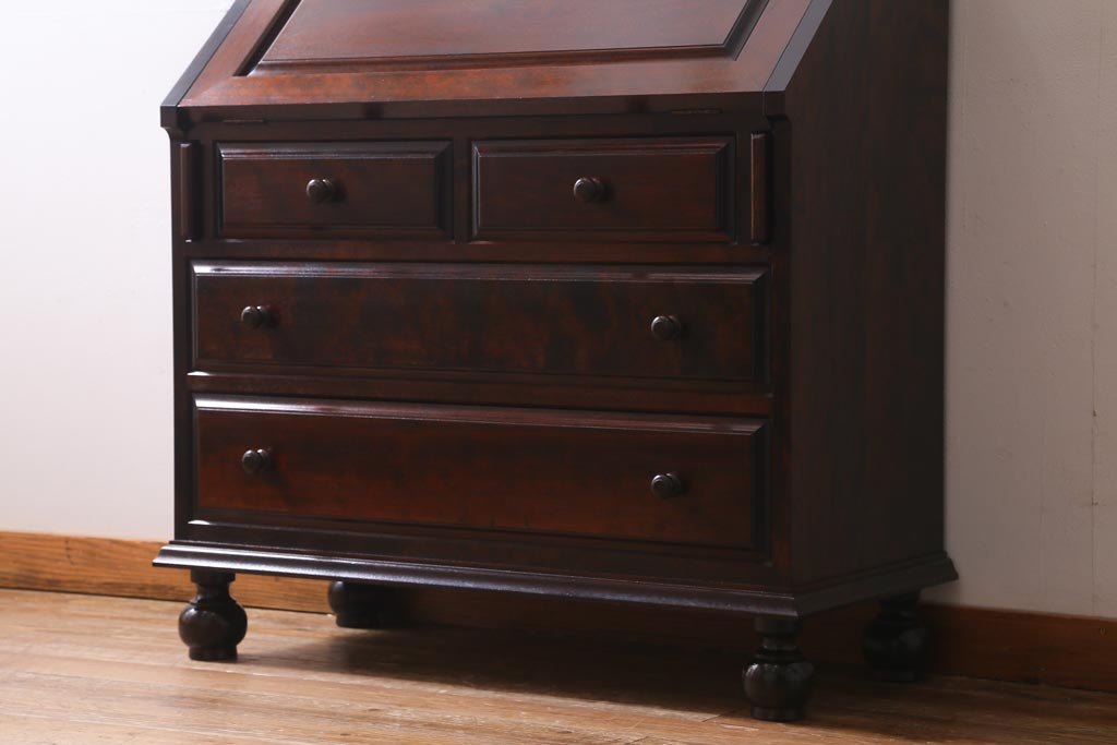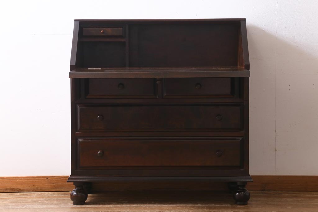 民芸家具 > 中古 松本民芸家具 H型 ボールフットが特徴的なライティングビューロー(簿記机、在宅ワーク、在宅用デスク)(R-038641)