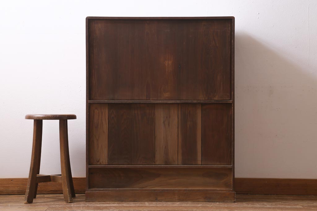 アンティーク家具 前面タモ玉杢材 ガラス引き戸のデザインがお洒落な茶箪笥(茶棚、戸棚、収納棚)(R-038705)です。