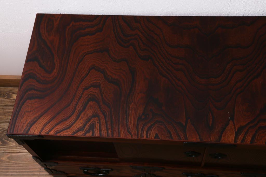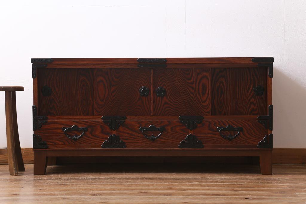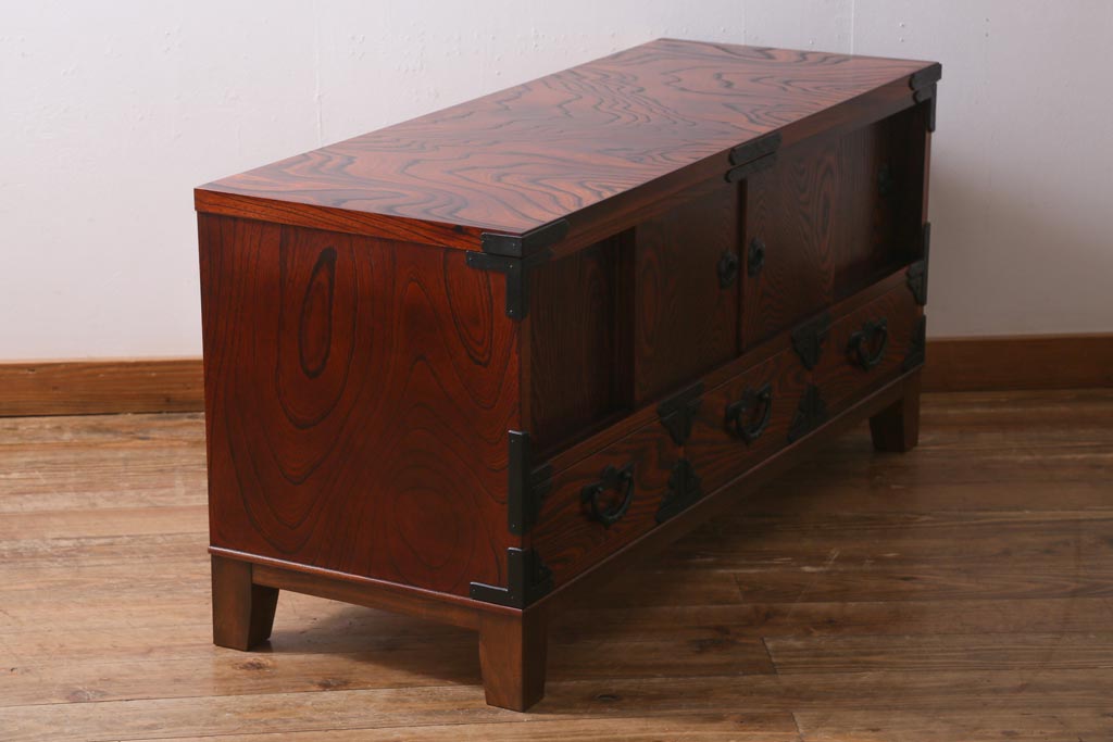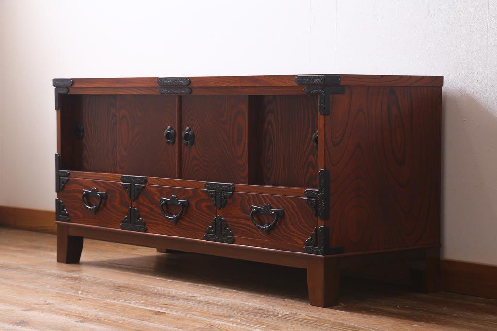 中古 民芸家具 岩谷堂箪笥 脚付きリメイク 重厚さの中にも華がある上品なローボード(テレビボード、サイドボード、戸棚)(R-038702)