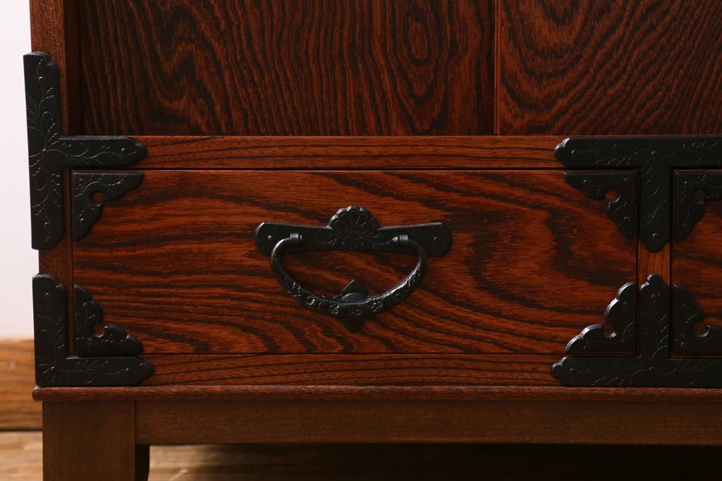 キャビネット・戸棚> サイドボード > 中古 民芸家具 岩谷堂箪笥 脚付きリメイク 重厚さの中にも華がある上品なローボード(テレビボード、サイドボード、戸棚)(R-038702)