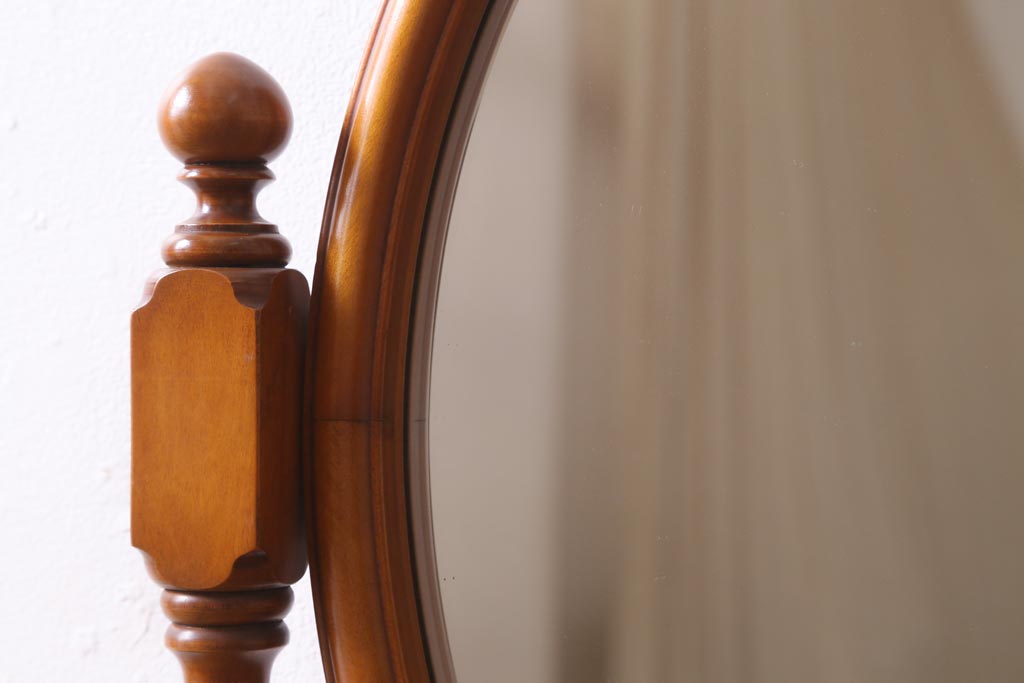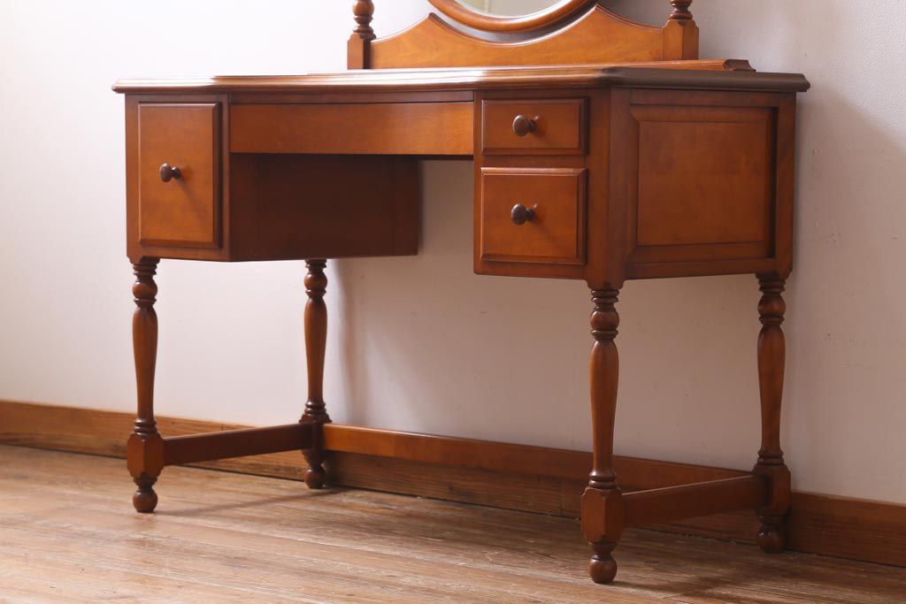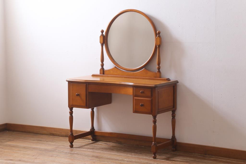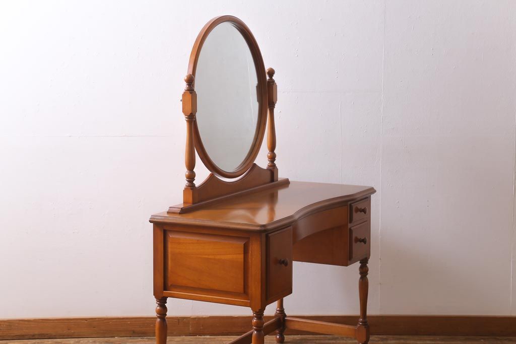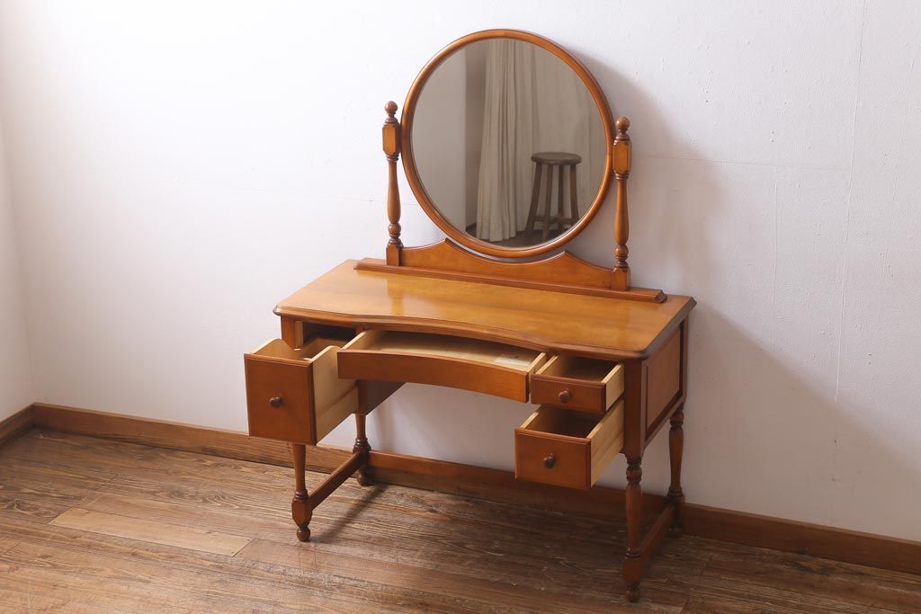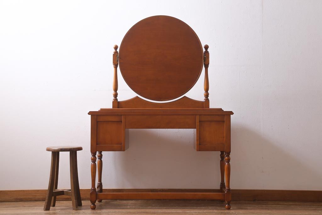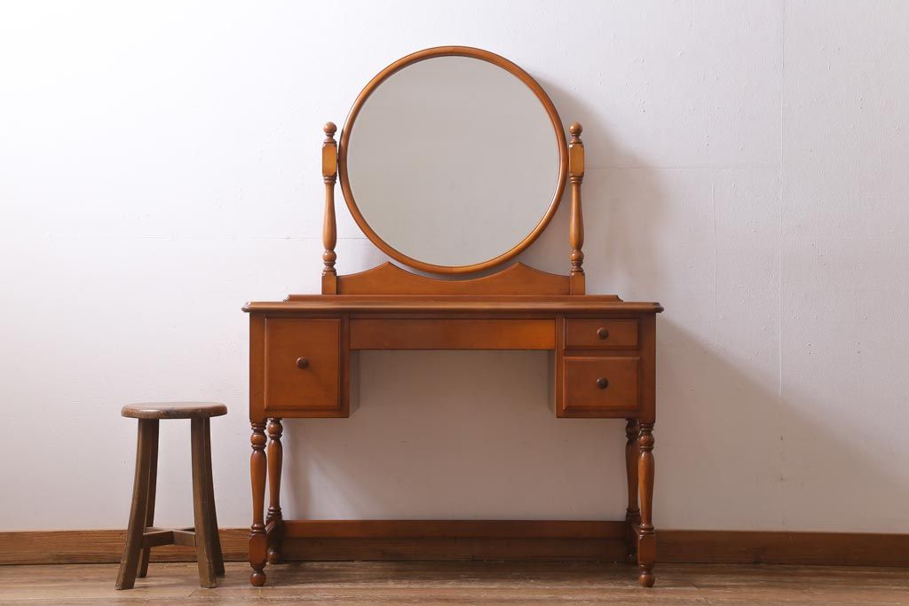 中古 横浜ダニエル(daniel) A-402 ラウンド型の鏡が印象的な上品な佇まいのドレッサー(鏡台)(R-038643)