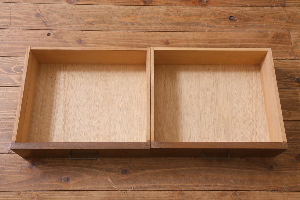 角ばったデザインの取っ手が付いた引き出しも2杯あり、