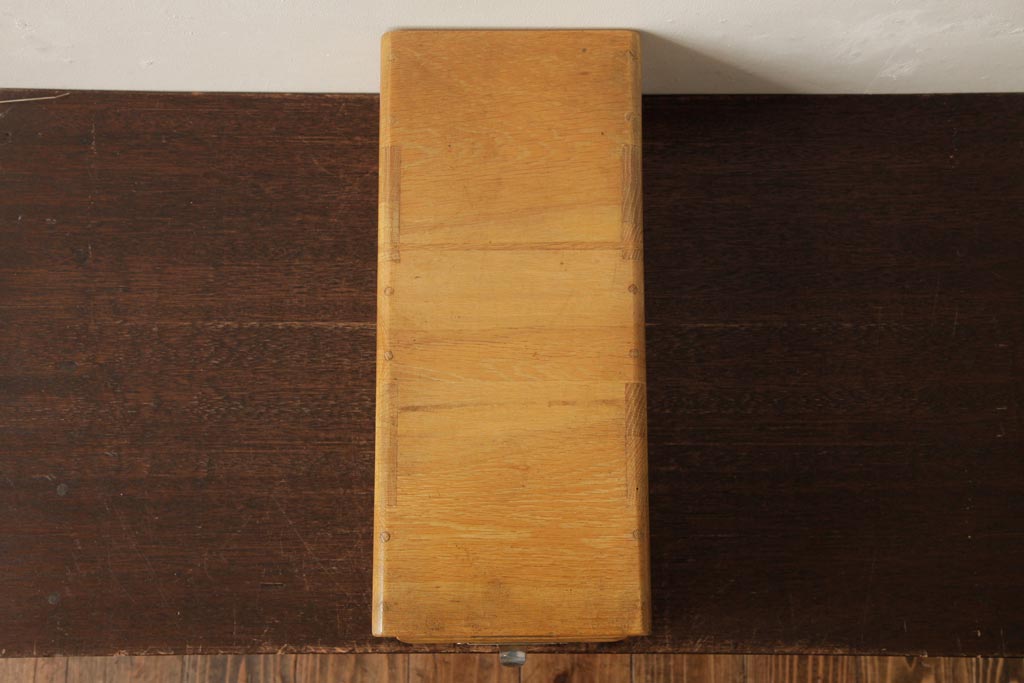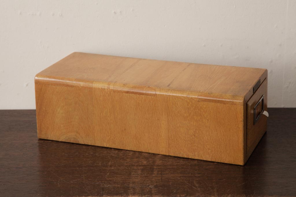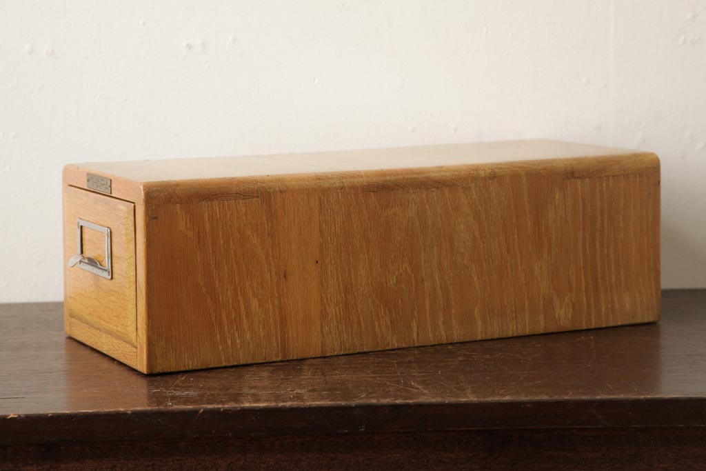 レトロ家具 昭和レトロ ナラ材 KIHARA ネームプレート付きの小さなカードケース(小引き出し、図書館、図書室)(R-038694)