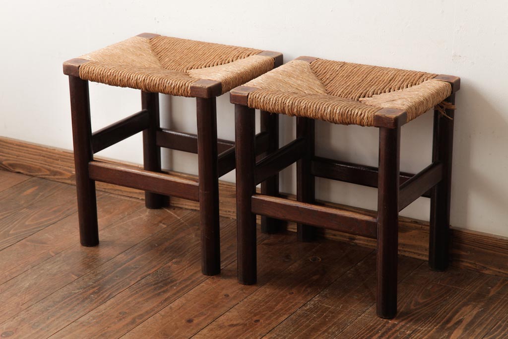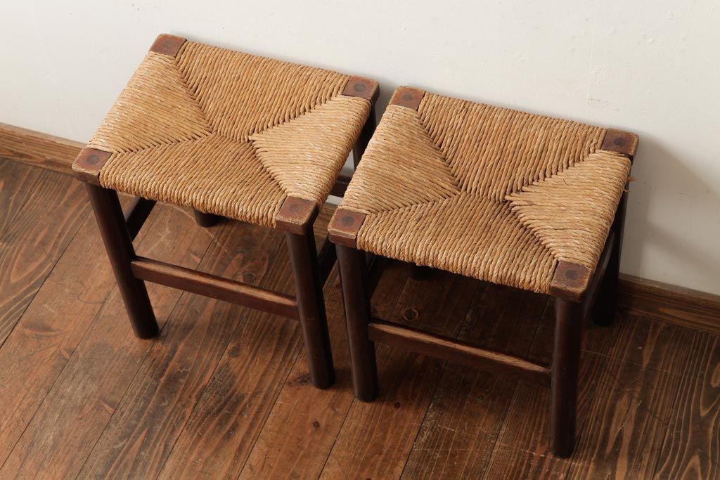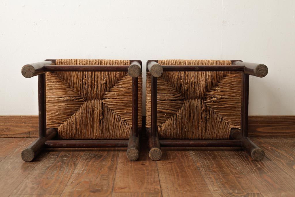 民芸家具 > ビンテージ 松本民芸家具 初期モデル ラッシスツール2脚セット(チェア、椅子)(R-038797)