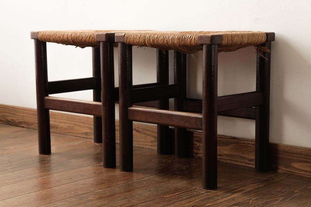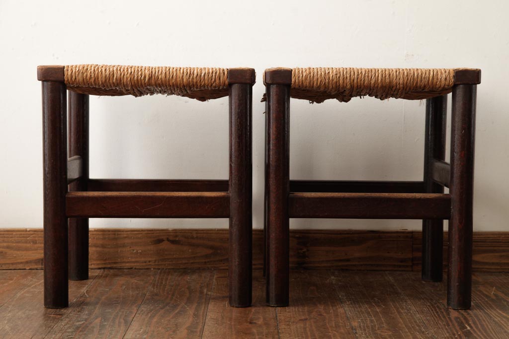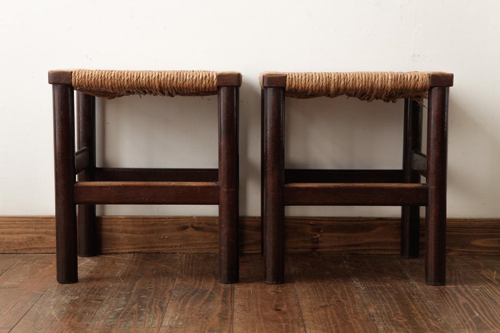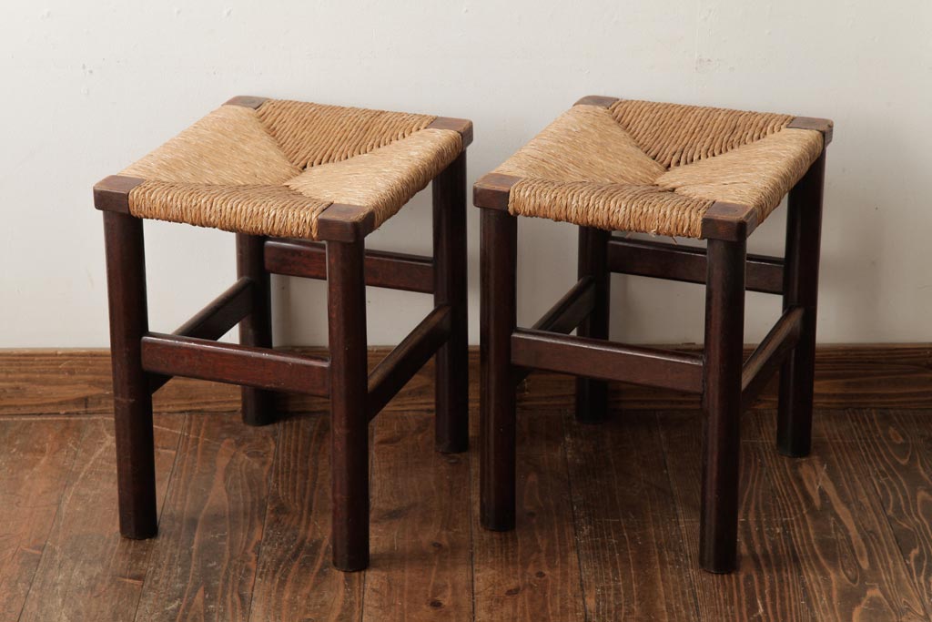 椅子・ベンチ> スツール > ビンテージ 松本民芸家具 初期モデル ラッシスツール2脚セット(チェア、椅子)(R-038797)