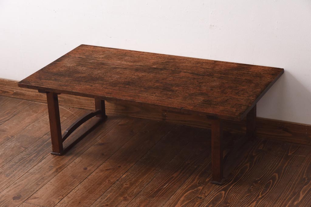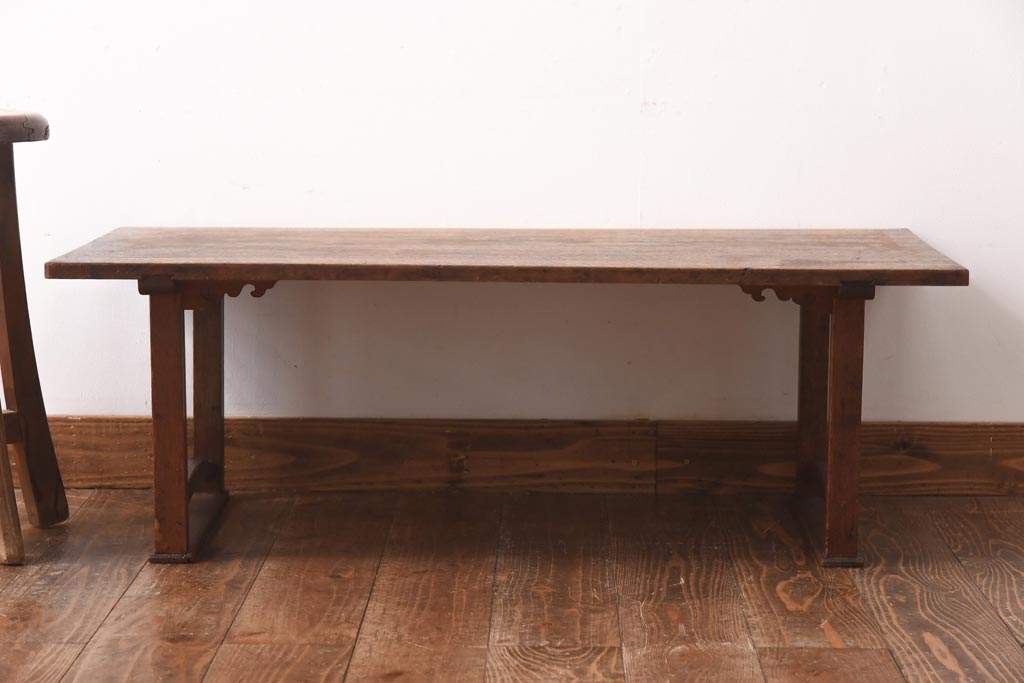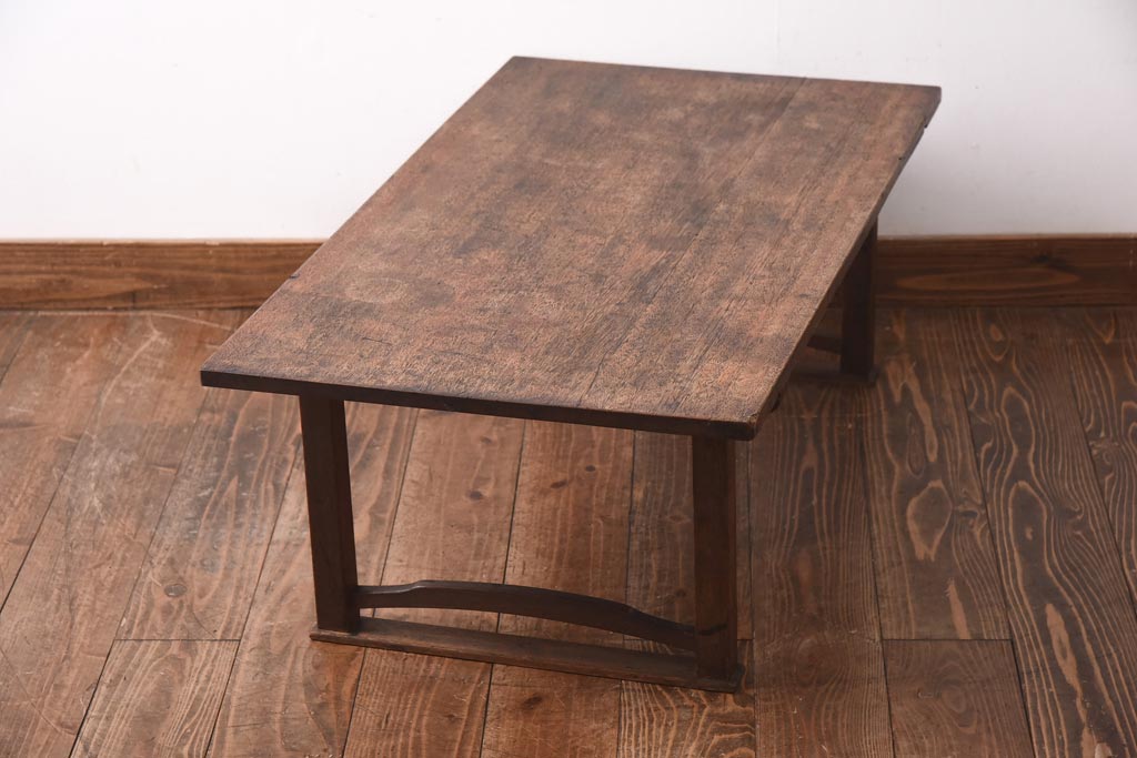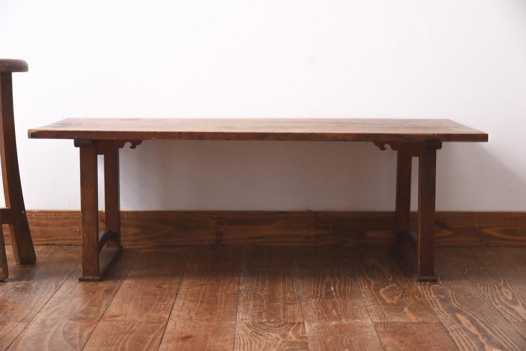 アンティーク家具 昭和初期 脚のデザインが粋な文机(座机、ローテーブル)(R-038874)
