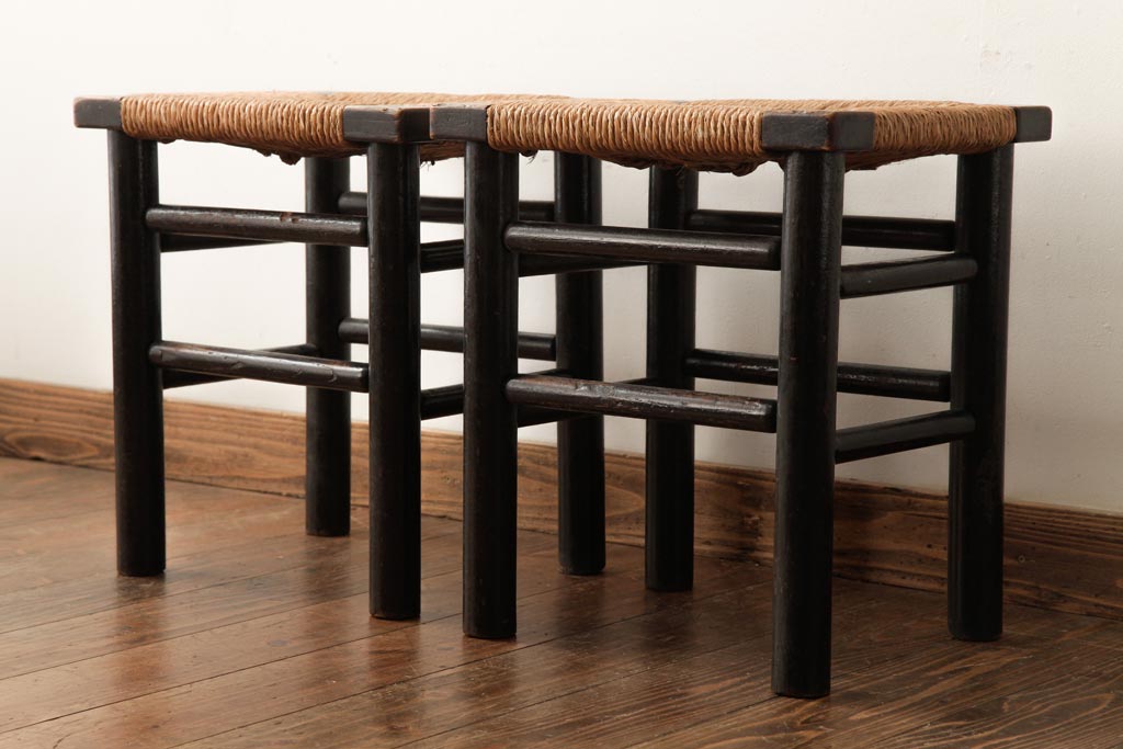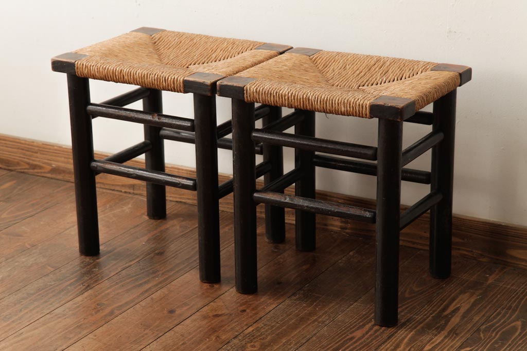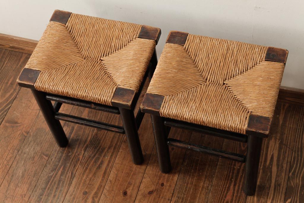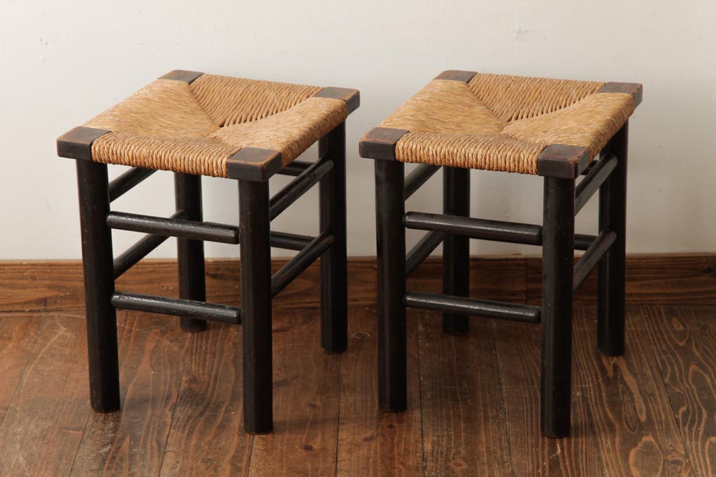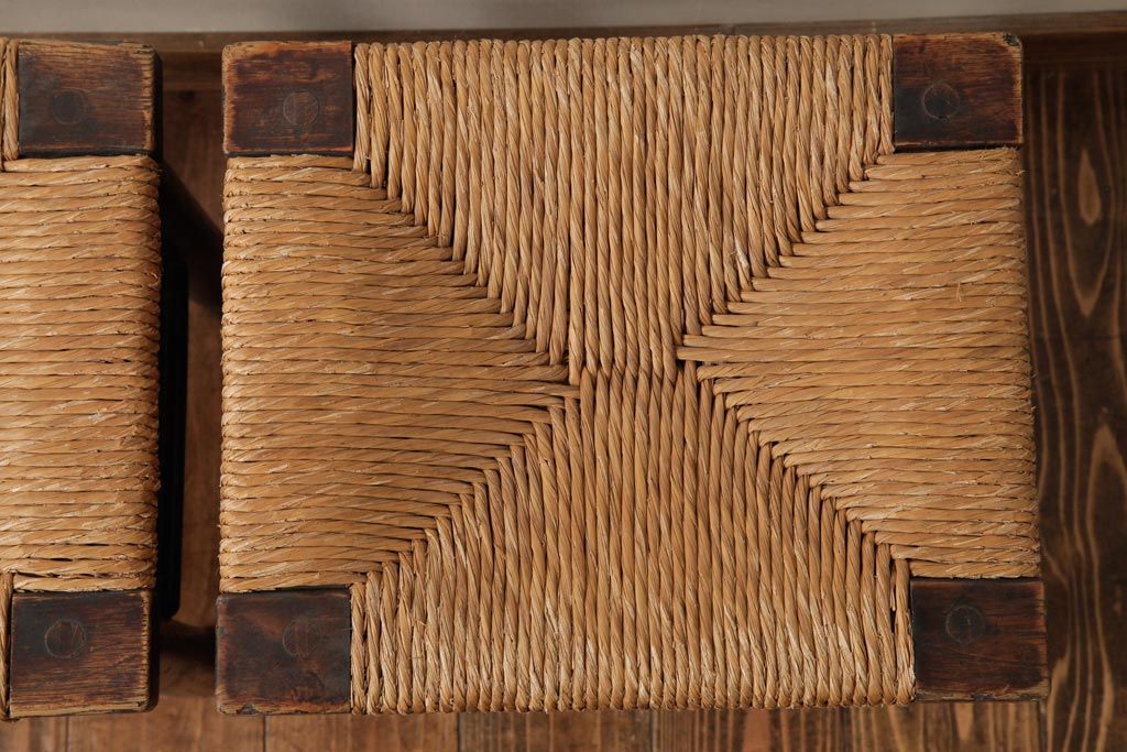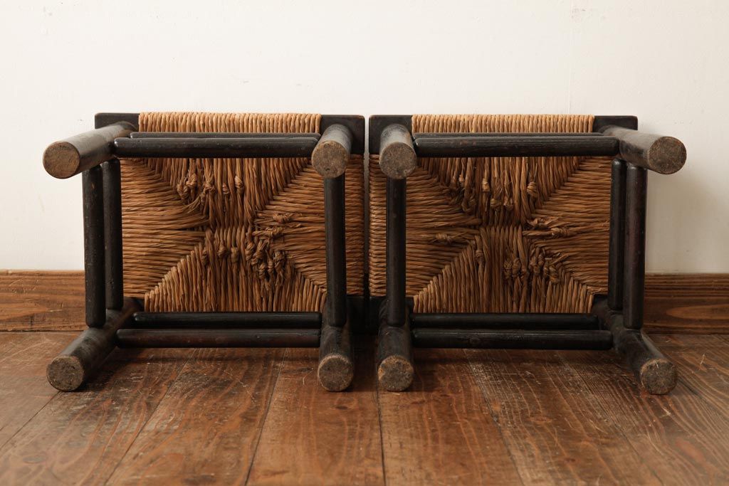 ビンテージ 松本民芸家具 ラッシスツール2脚セット(チェア、椅子)(R-038804)です。