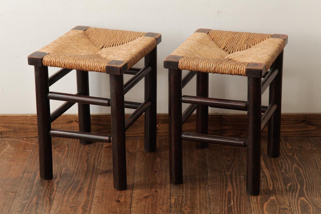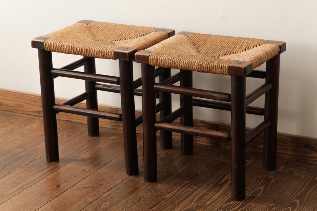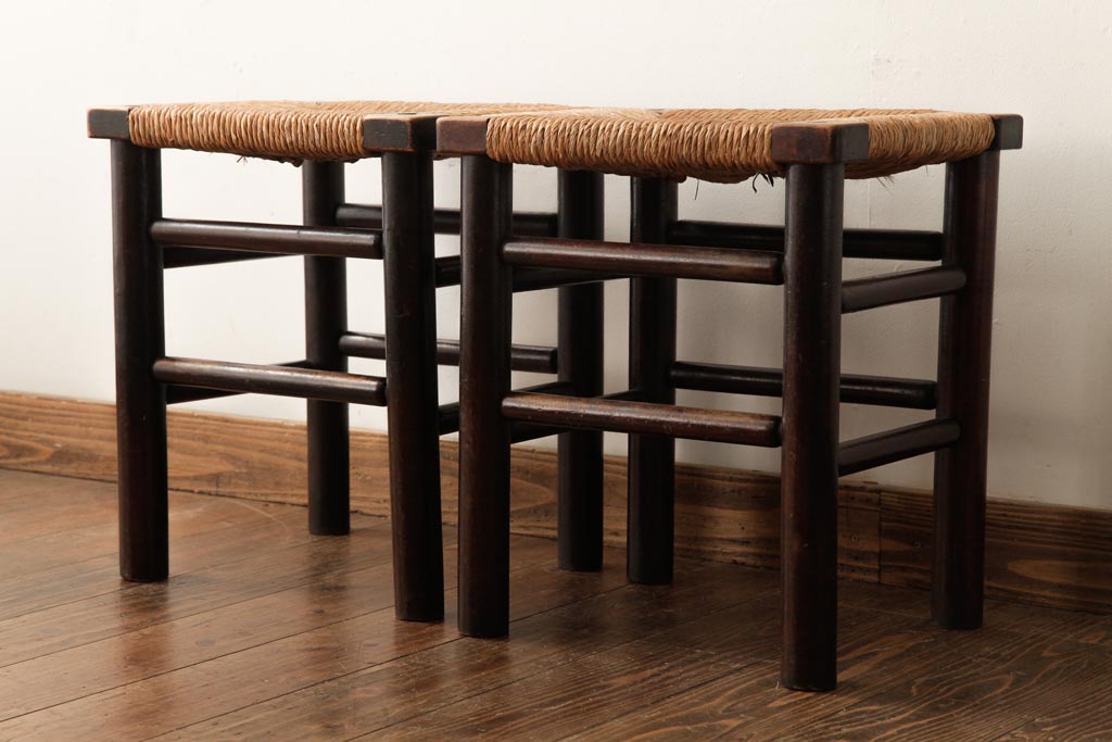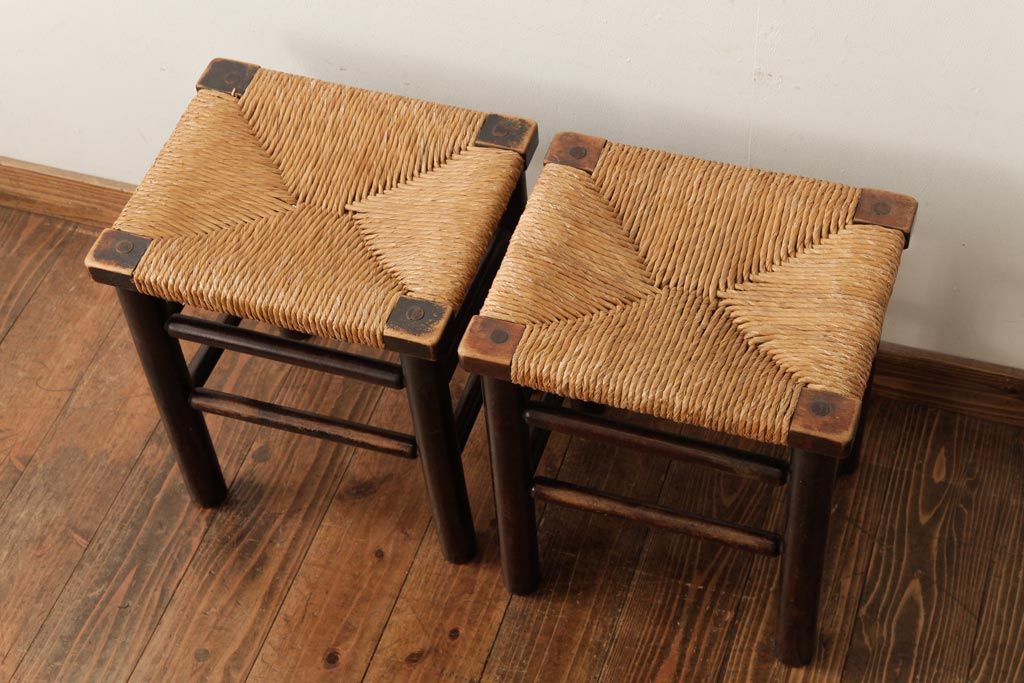 ビンテージ 松本民芸家具 ラッシスツール2脚セット(チェア、椅子)(R-038802)です。
