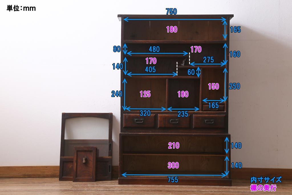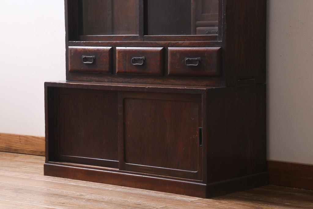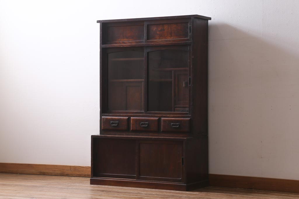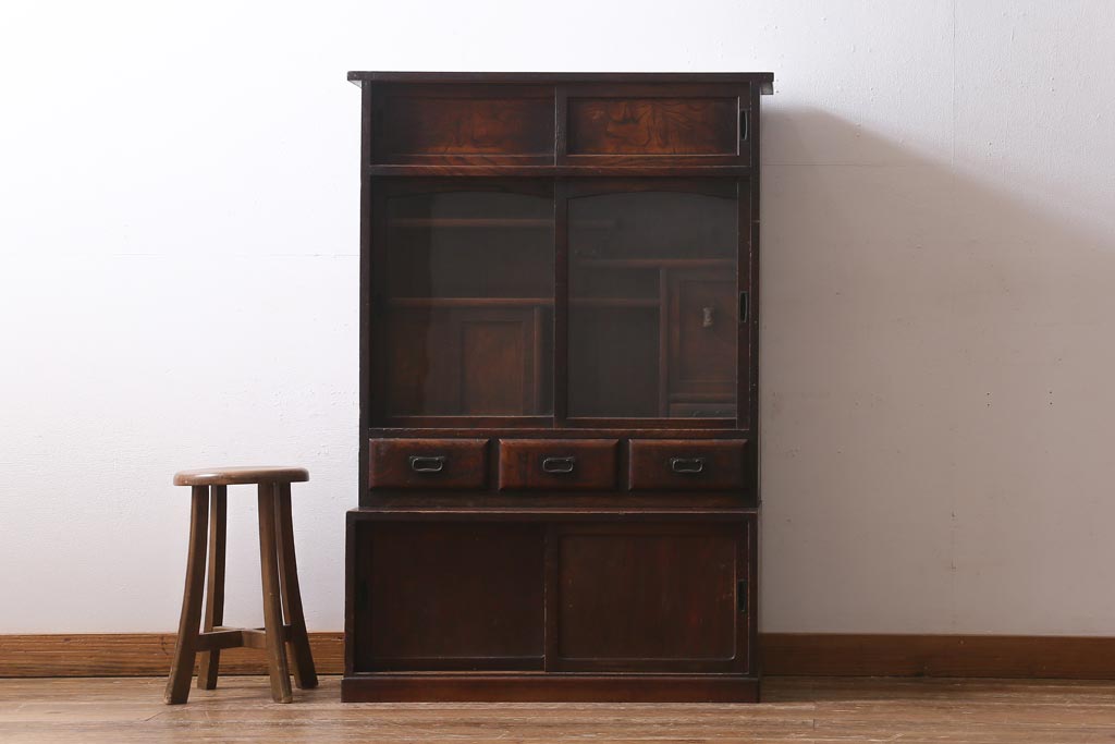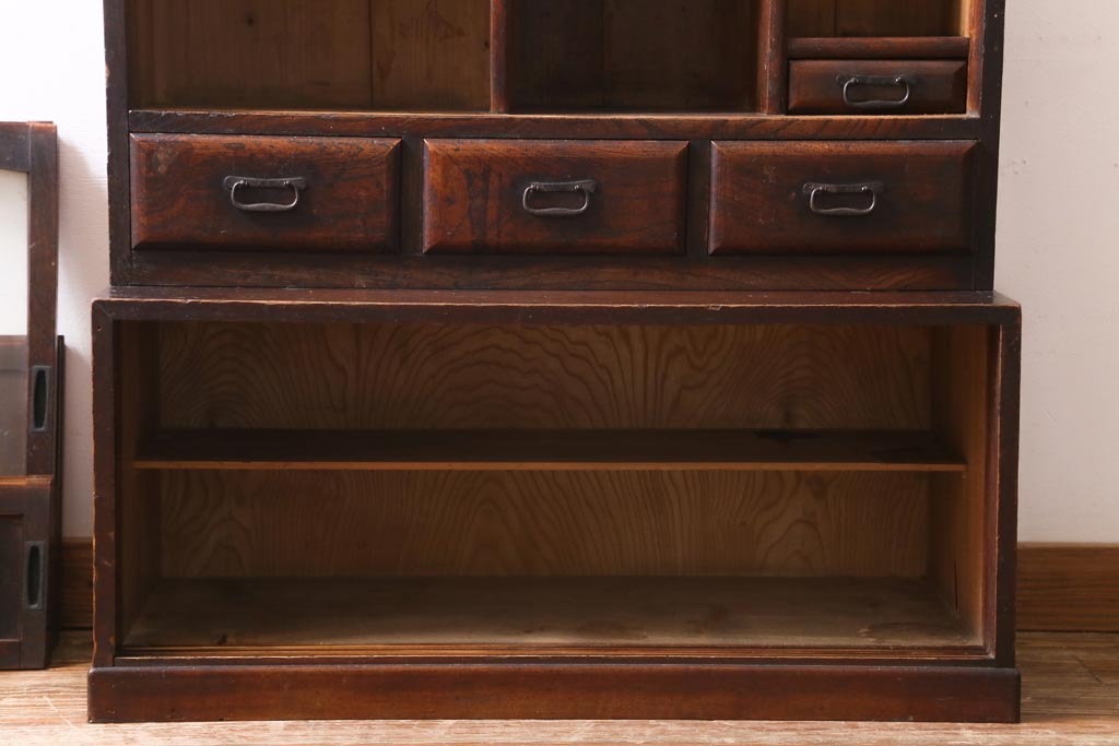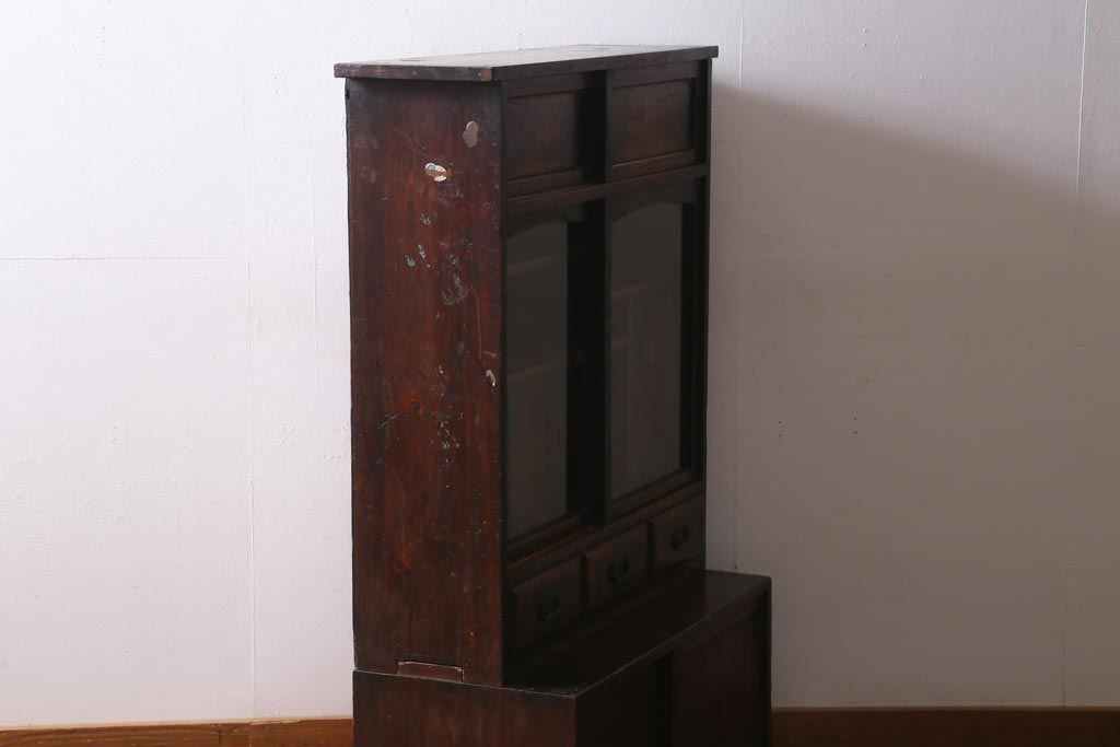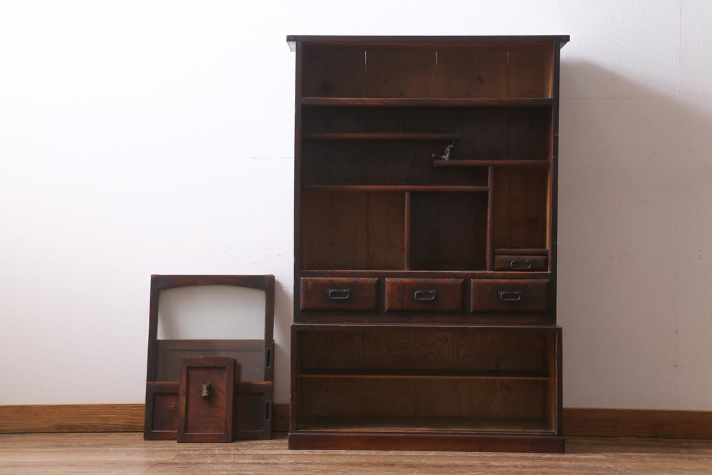 アンティーク家具 和製アンティーク 大正昭和初期 倹飩式 和の風情感じる重ね茶箪笥(茶棚、飾り棚)(R-038716)