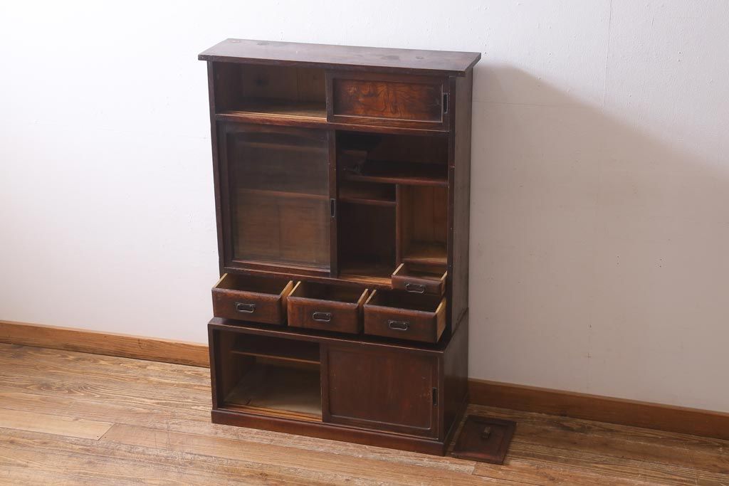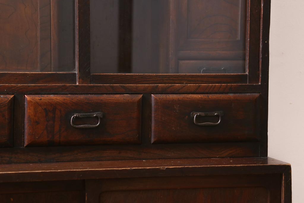 和箪笥> 茶箪笥・茶棚 > アンティーク家具 和製アンティーク 大正昭和初期 倹飩式 和の風情感じる重ね茶箪笥(茶棚、飾り棚)(R-038716)