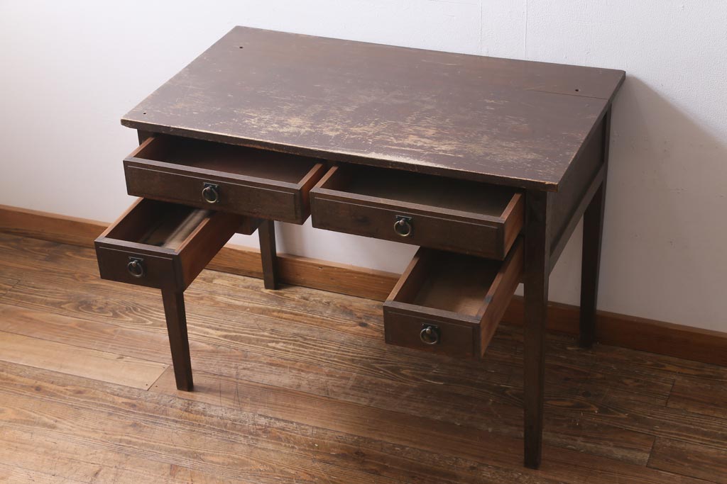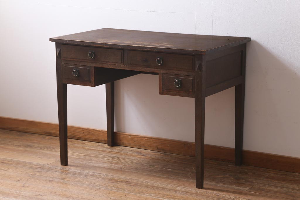 アンティーク家具 和製アンティーク 昭和初期 ナラ材 大正ロマン 洋館の雰囲気を醸し出す平机(デスク、ワークデスク、在宅ワーク、在宅用)(R-038703)