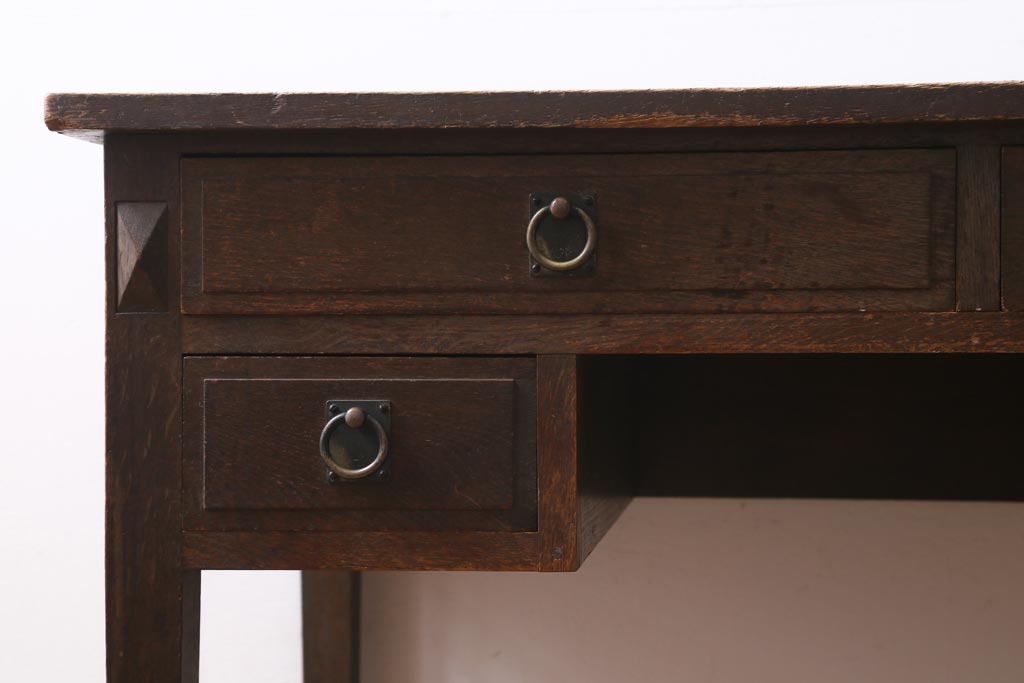 デスク> ワークデスク > アンティーク家具 和製アンティーク 昭和初期 ナラ材 大正ロマン 洋館の雰囲気を醸し出す平机(デスク、ワークデスク、在宅ワーク、在宅用)(R-038703)