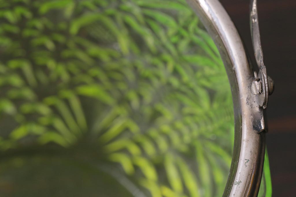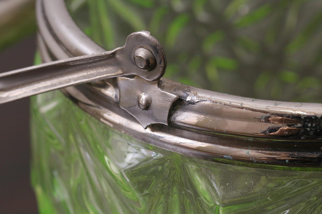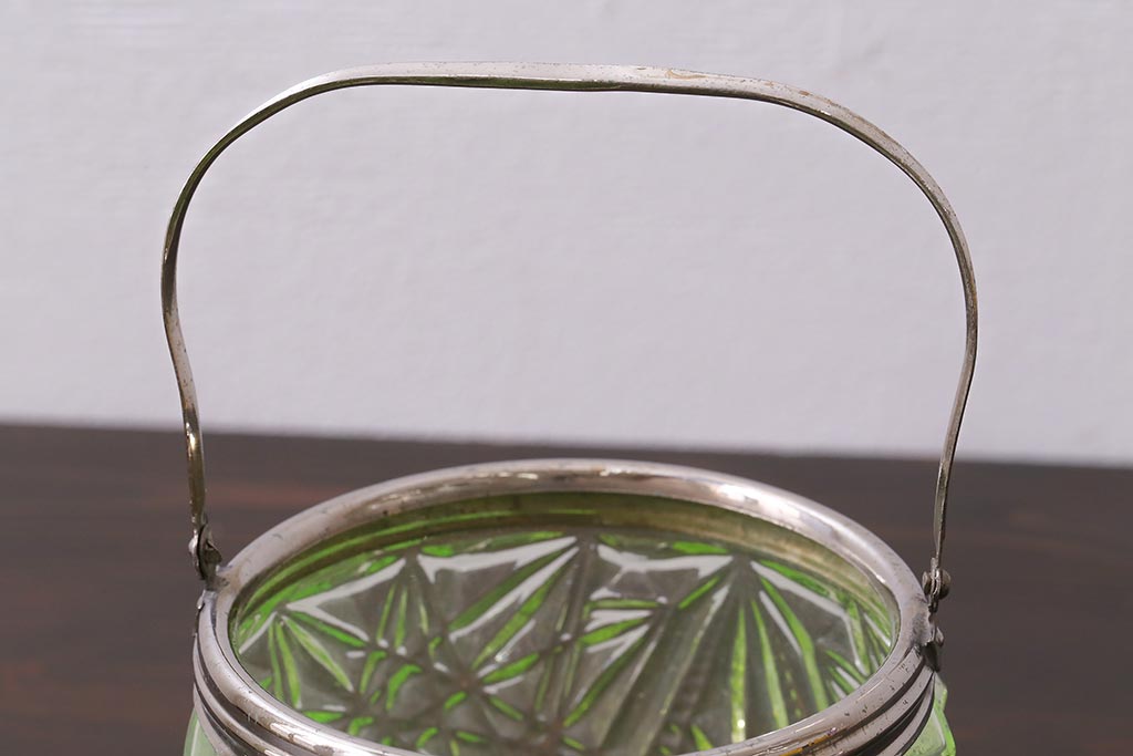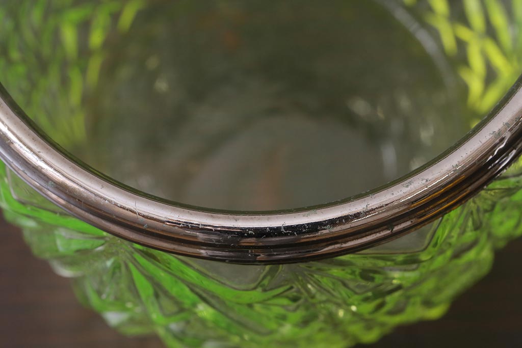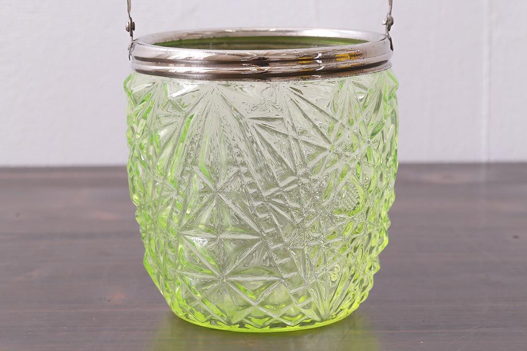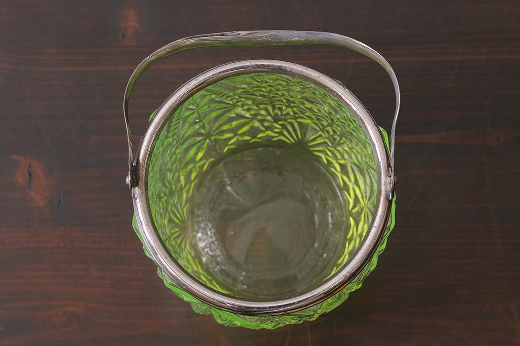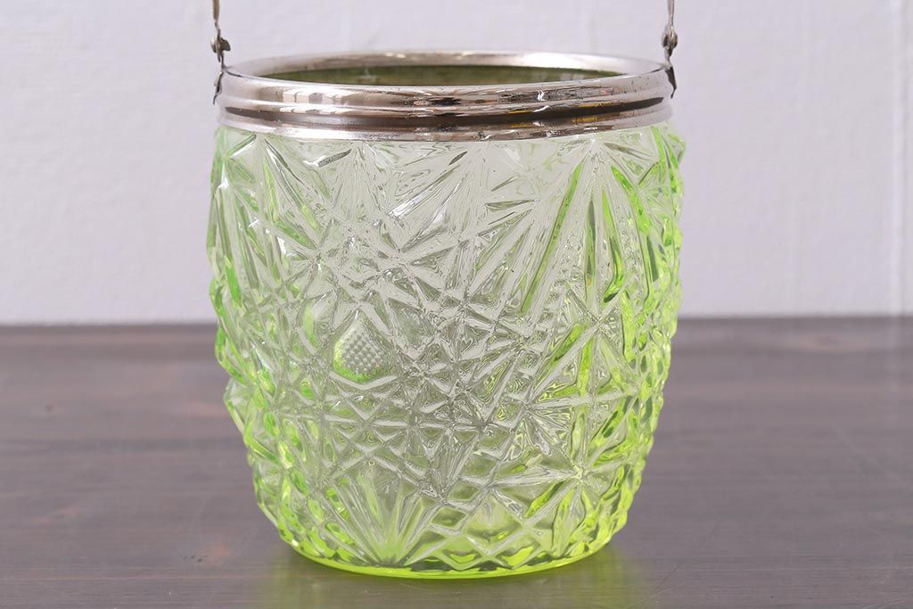 アンティーク雑貨 大正昭和初期 ウランガラス製のアイスペール(アイスバスケット、ワセリンガラス)(R-038051)