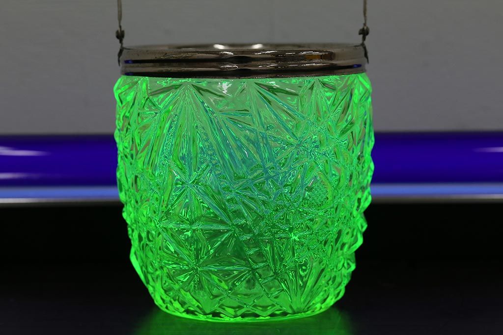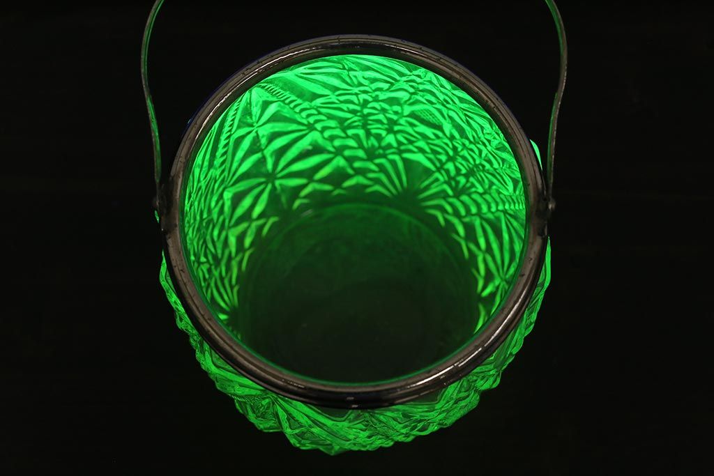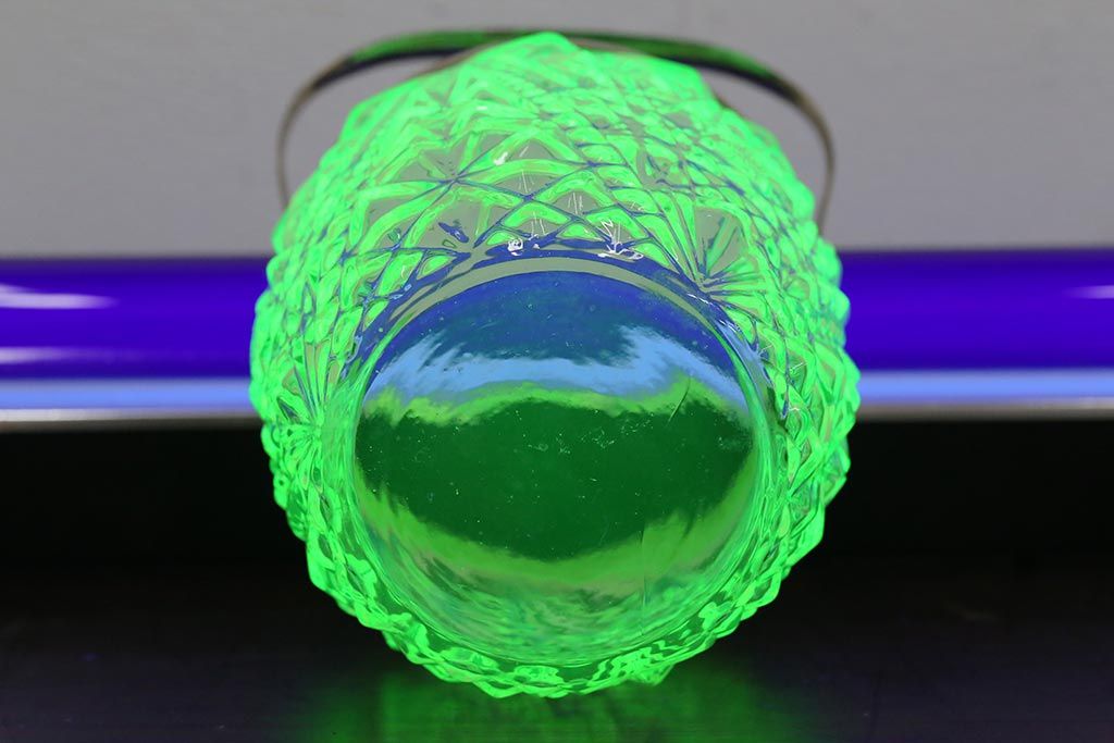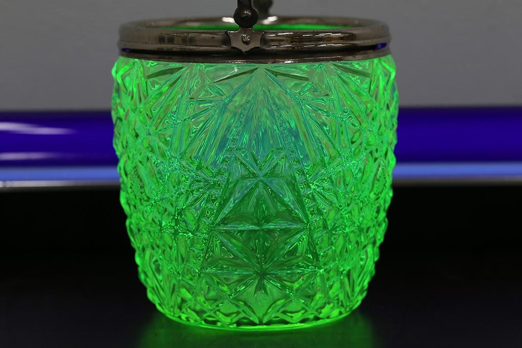 ラフジュ工房> 骨董・美術品> 骨董-ガラス食器 > アンティーク雑貨 大正昭和初期 ウランガラス製のアイスペール(アイスバスケット、ワセリンガラス)(R-038051)