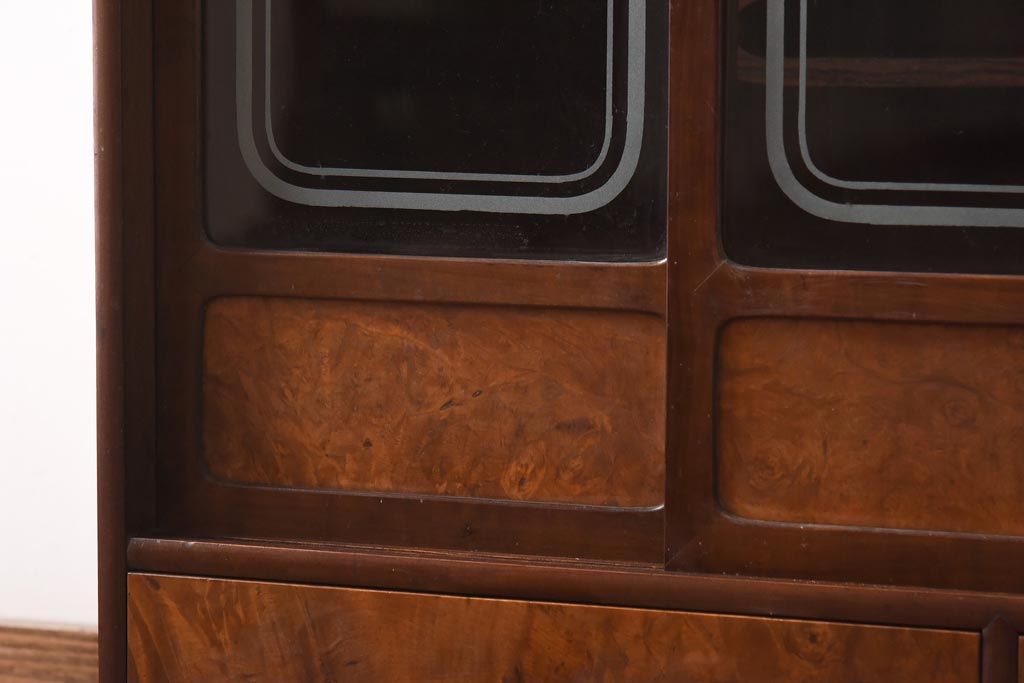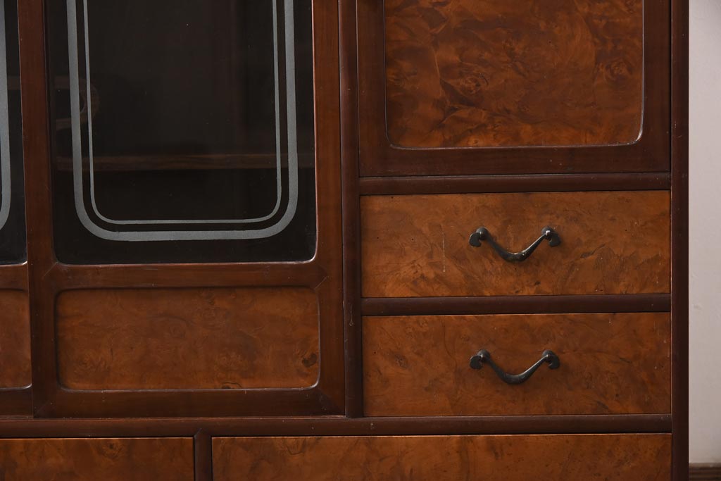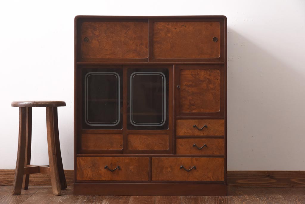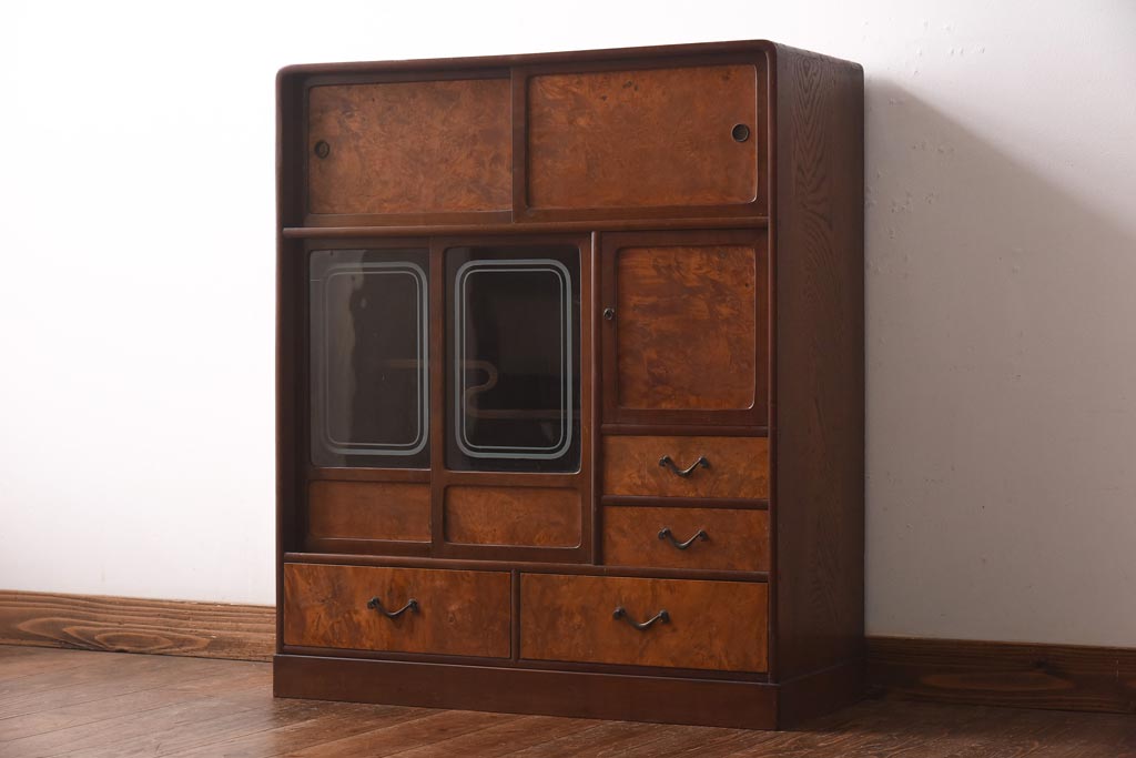 アンティーク家具 昭和初期 丸みのあるフォルムが親しみやすさ感じる茶箪笥(茶棚、戸棚、収納棚)(R-038775)