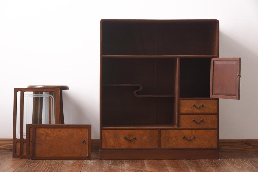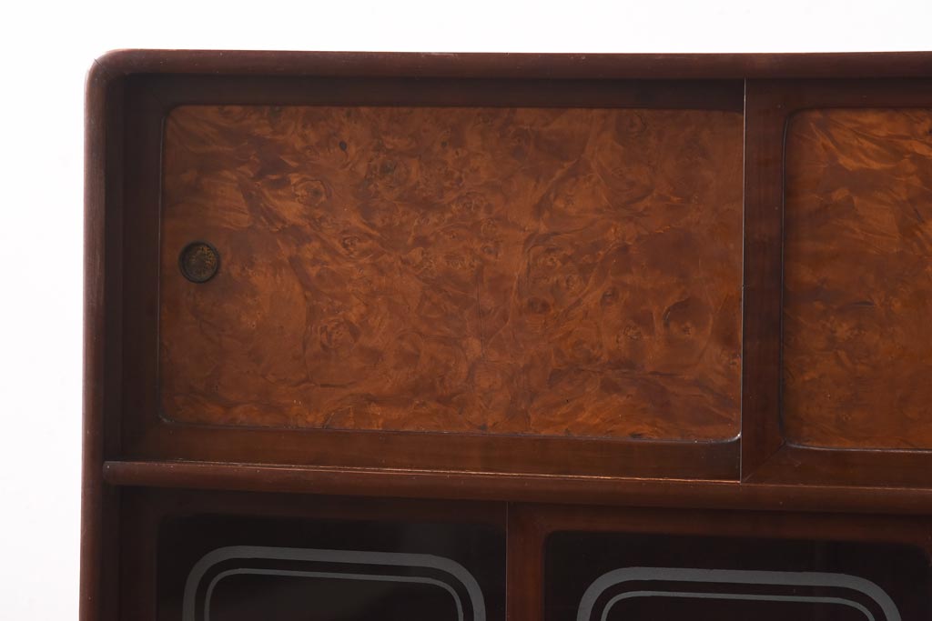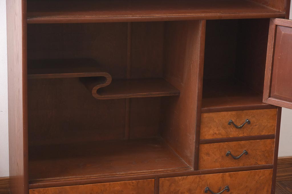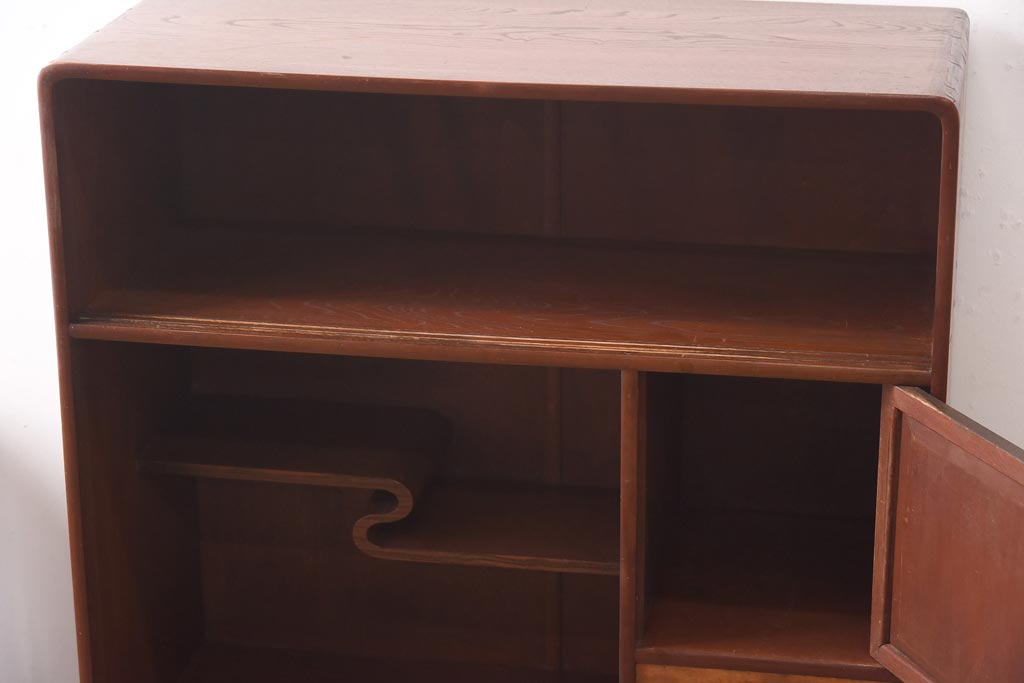 和箪笥> 茶箪笥・茶棚 > アンティーク家具 昭和初期 丸みのあるフォルムが親しみやすさ感じる茶箪笥(茶棚、戸棚、収納棚)(R-038775)