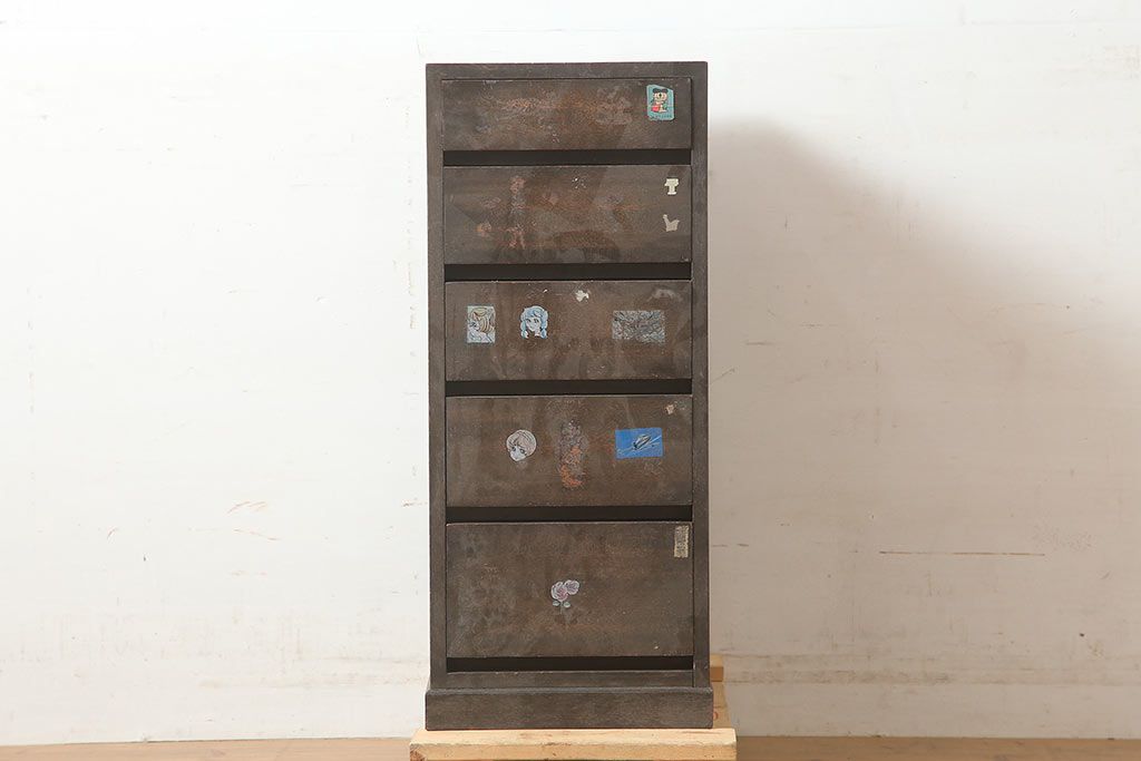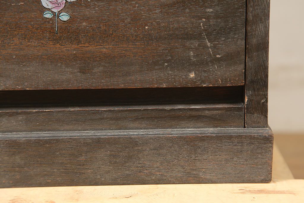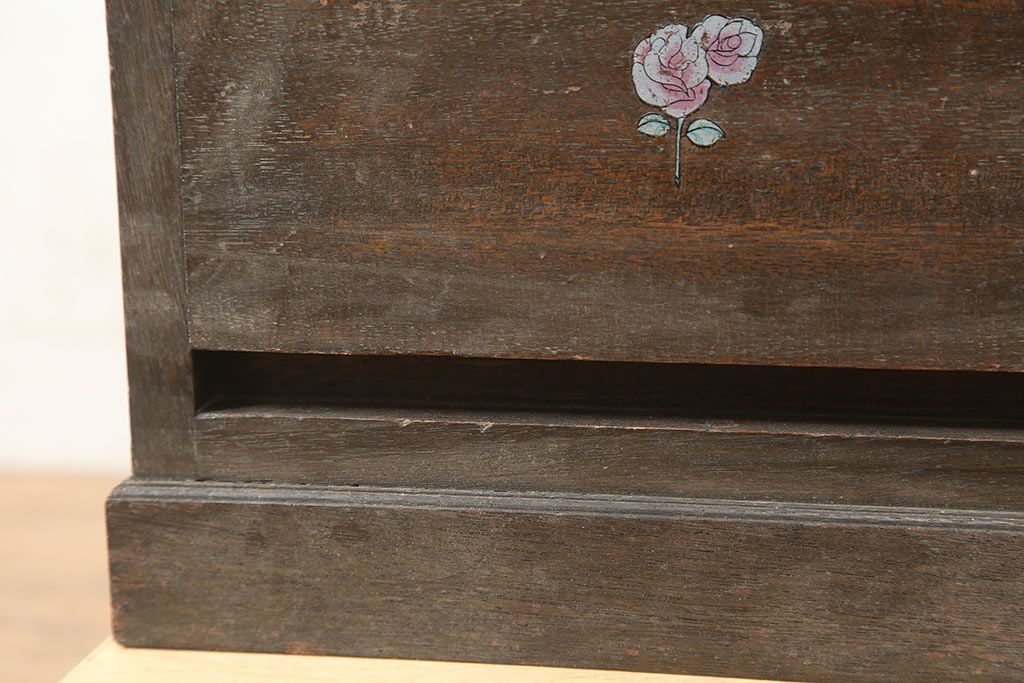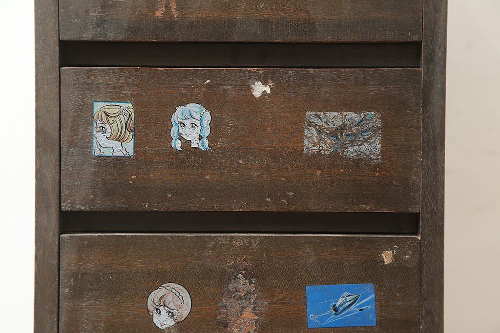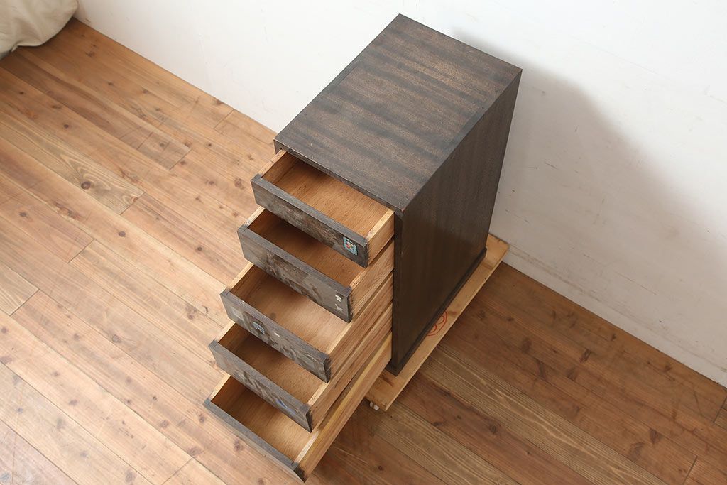 アンティーク家具 昭和中期 デッドスペースにもすっぽり収まる細身のサイドチェスト(袖机、脇机、引き出し)(R-038784)です。