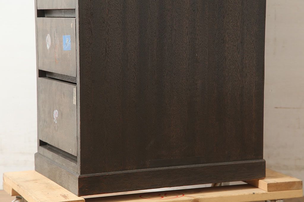 アンティーク家具 昭和中期 デッドスペースにもすっぽり収まる細身のサイドチェスト(袖机、脇机、引き出し)(R-038784)