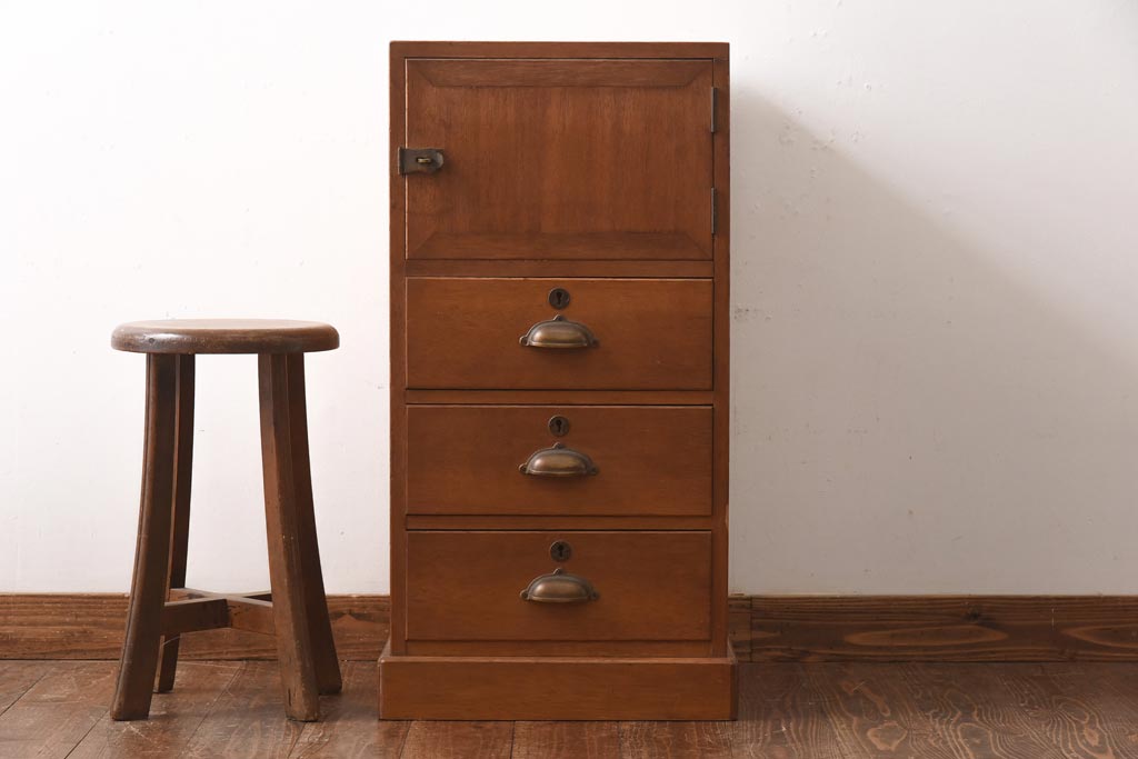 アンティーク家具 昭和レトロ ナチュラルや北欧スタイルともあわせやすいサイドチェスト(収納棚、キャビネット、引き出し)(R-038868)です。