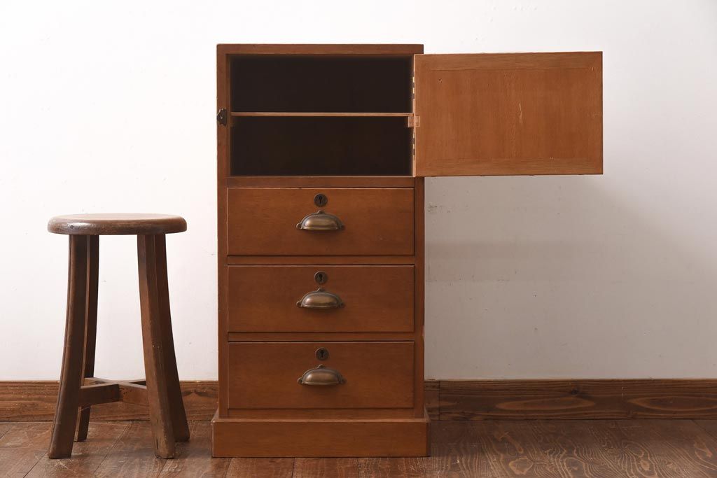 キャビネット・戸棚 > アンティーク家具 昭和レトロ ナチュラルや北欧スタイルともあわせやすいサイドチェスト(収納棚、キャビネット、引き出し)(R-038868)