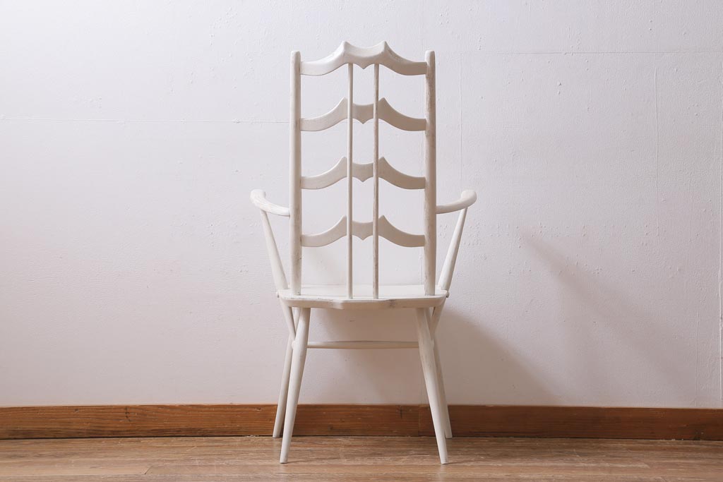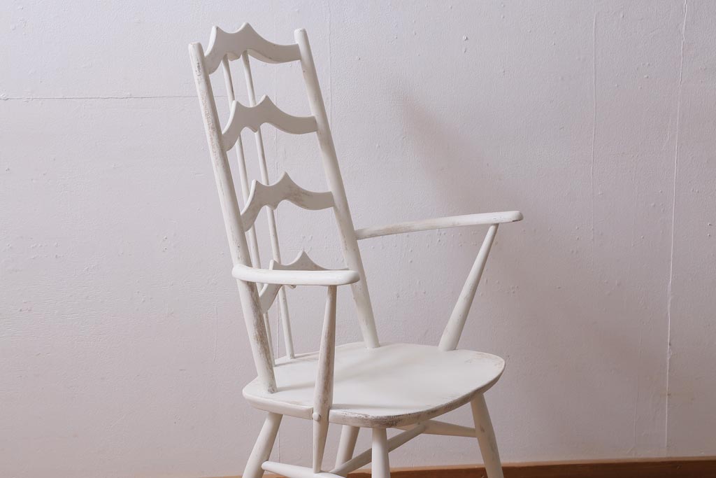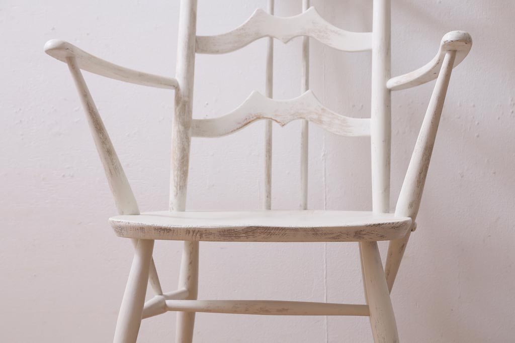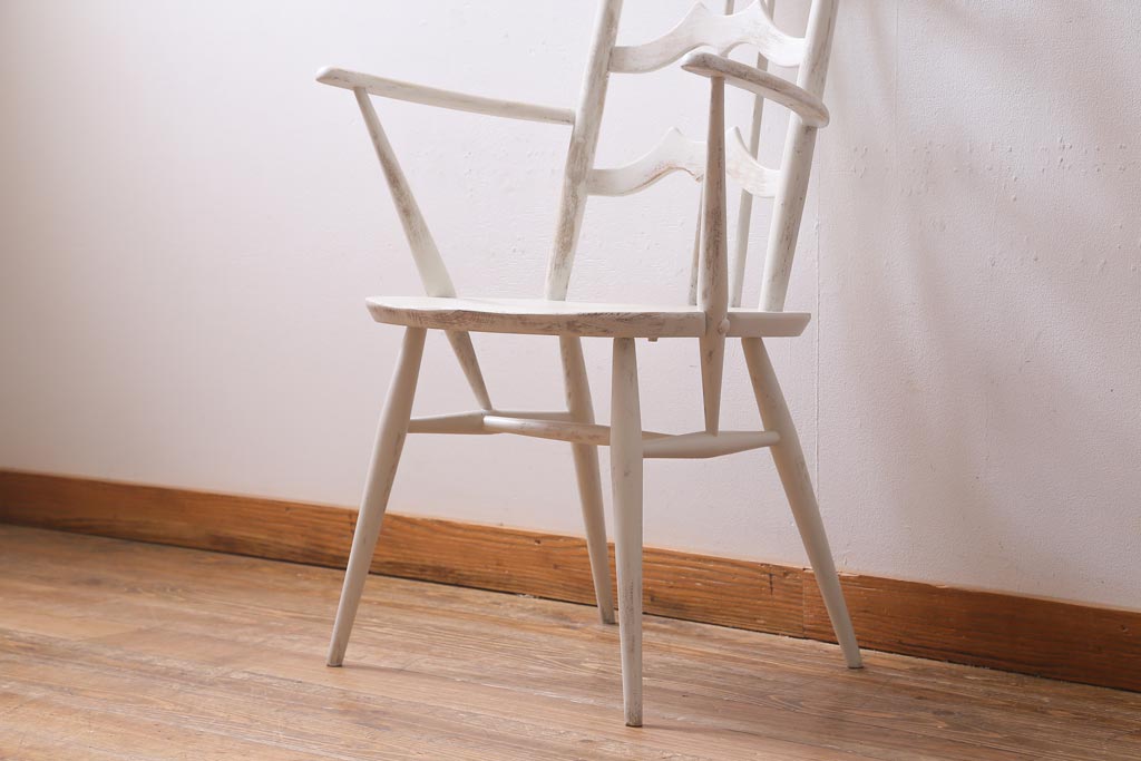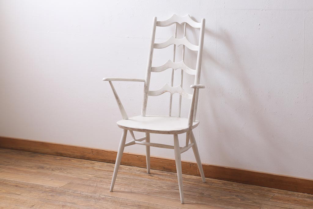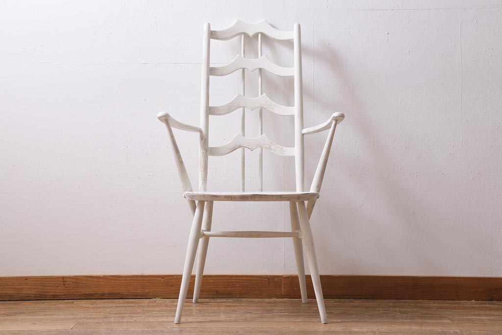 椅子・ベンチ> ダイニングチェア > ヴィンテージ家具 イギリスビンテージ ERCOL(アーコール) アンティークペイント 希少!洗練された佇まいのラダーバックアームチェア(ダイニングチェア、椅子)(R-038870)