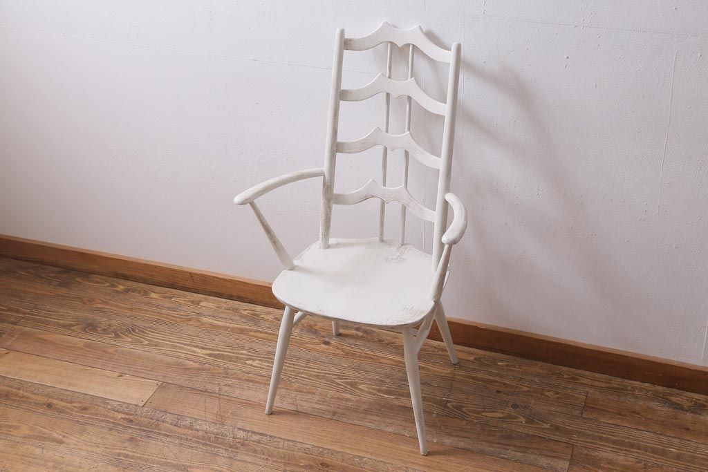 ヴィンテージ家具 イギリスビンテージ ERCOL(アーコール) アンティークペイント 希少!洗練された佇まいのラダーバックアームチェア(ダイニングチェア、椅子)(R-038870)