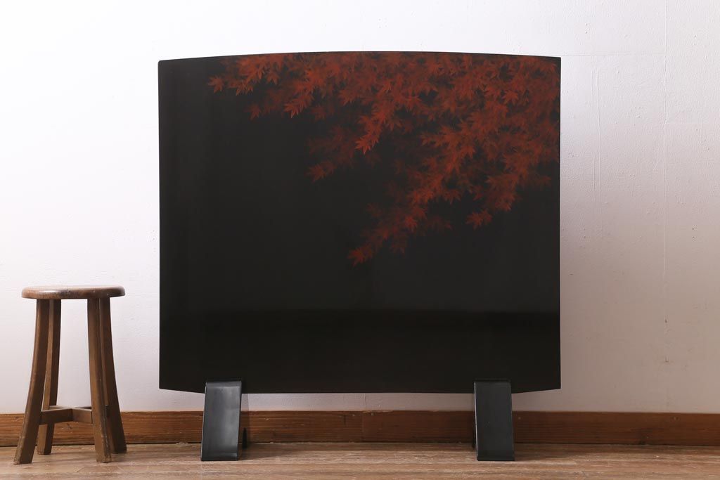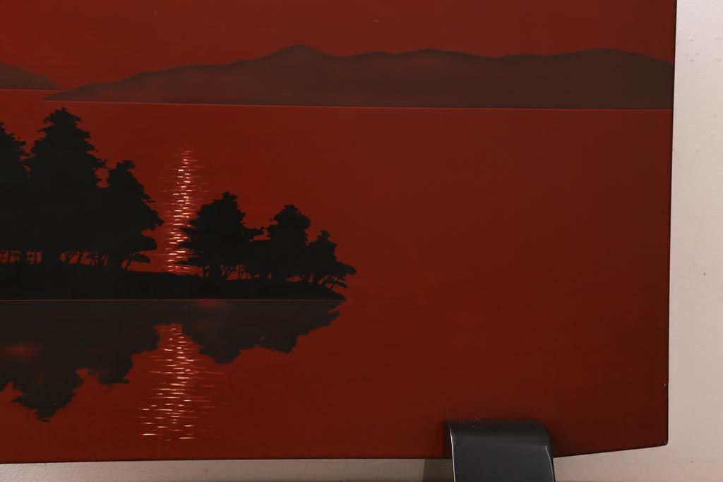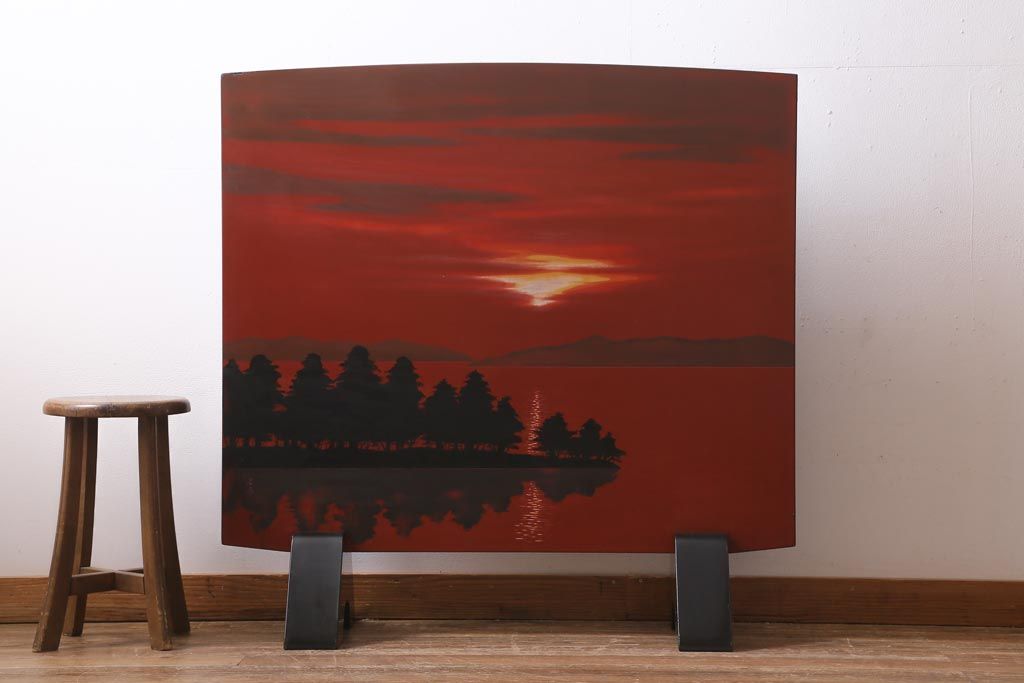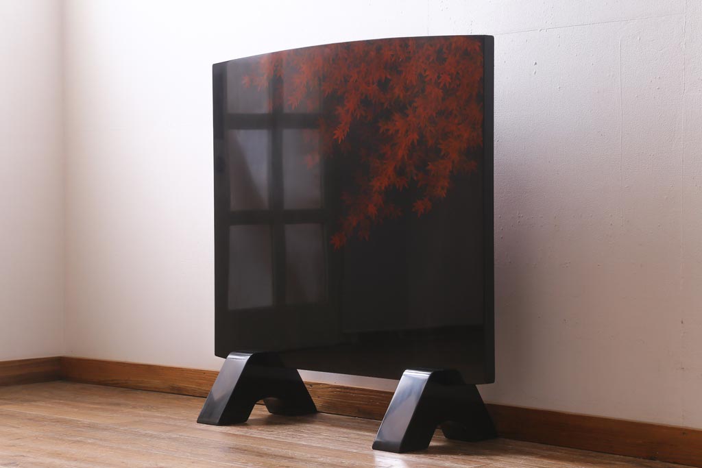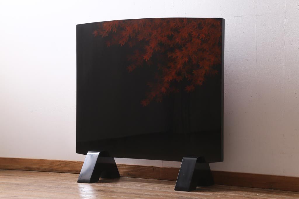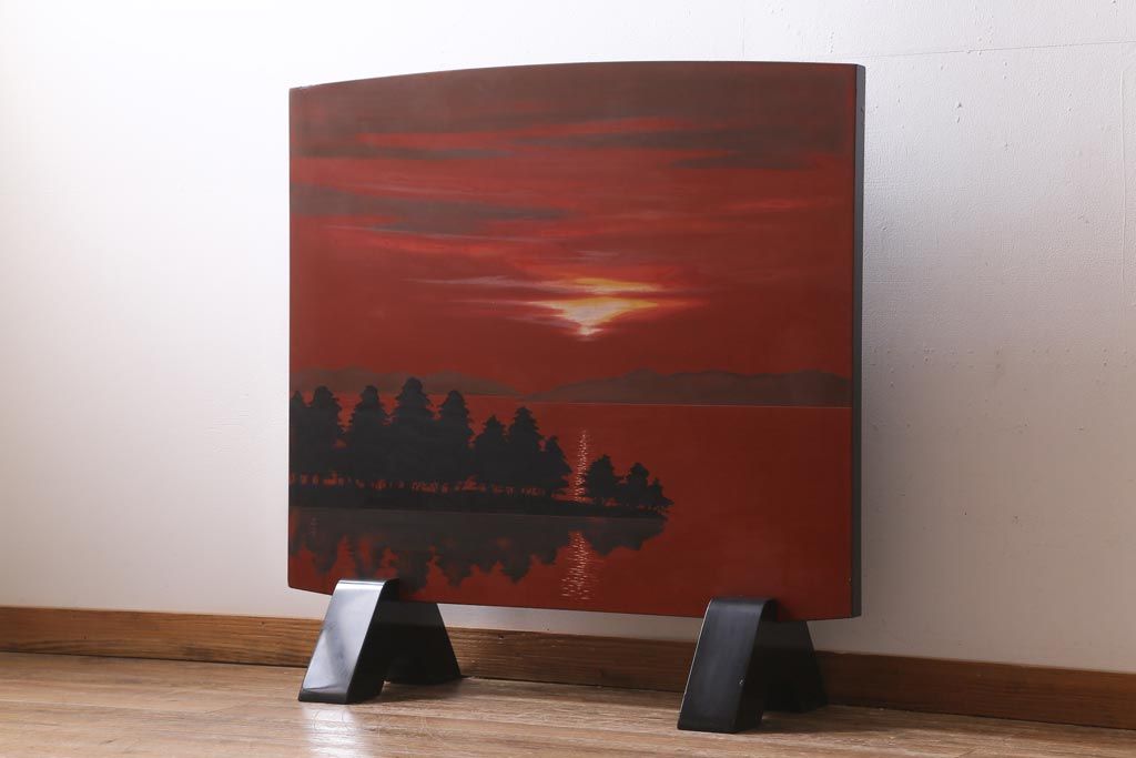 中古 漆塗 広堂作 夕焼紅葉図 朱と黒のコントラストが印象的なつい立て(衝立、パーテーション)(R-038912)