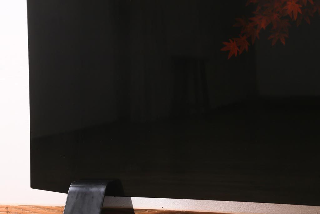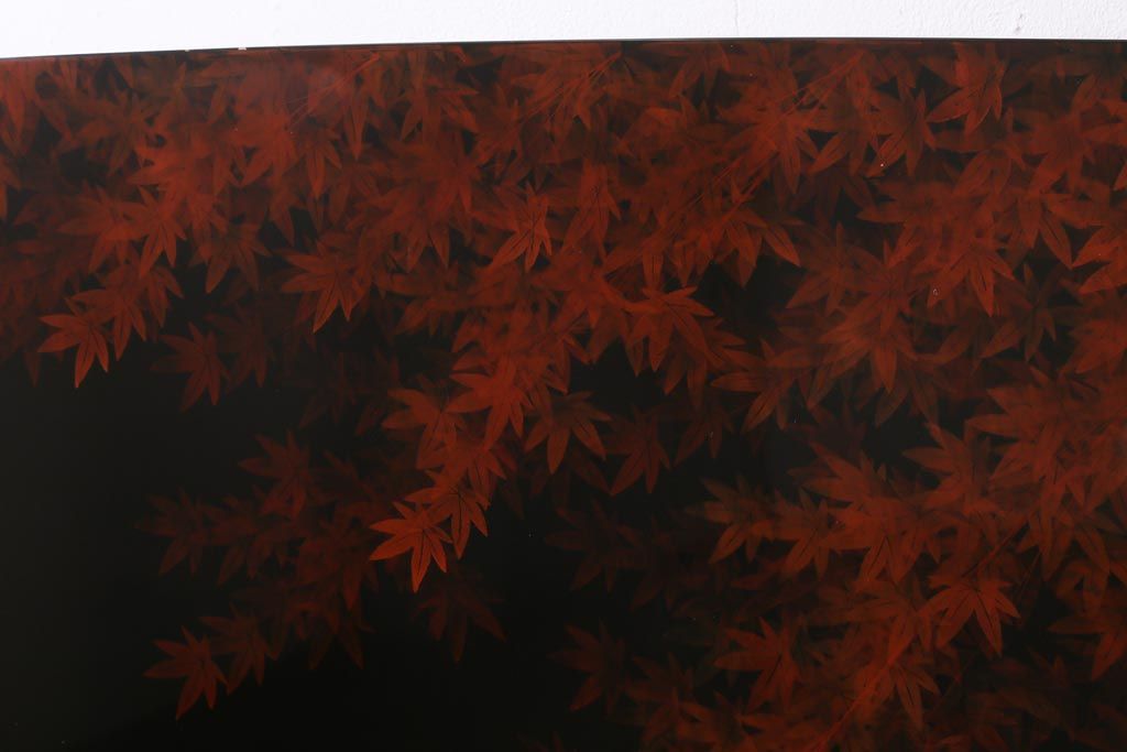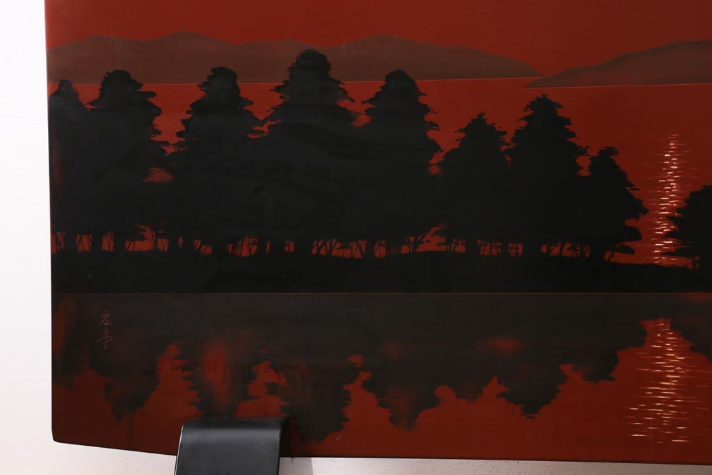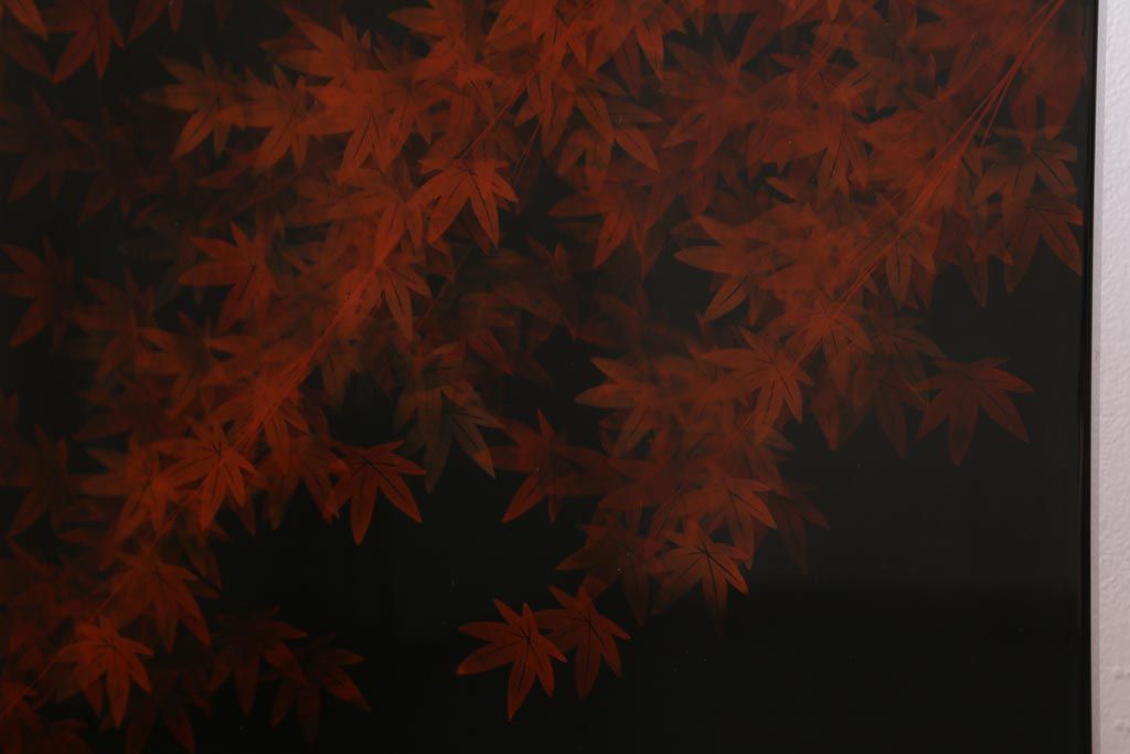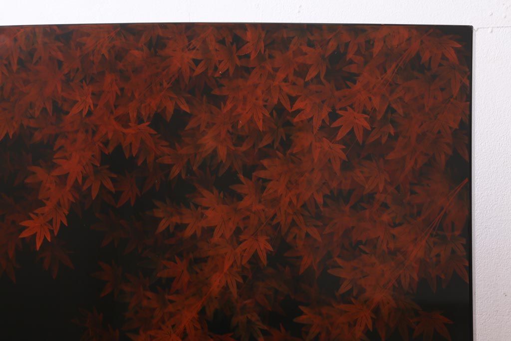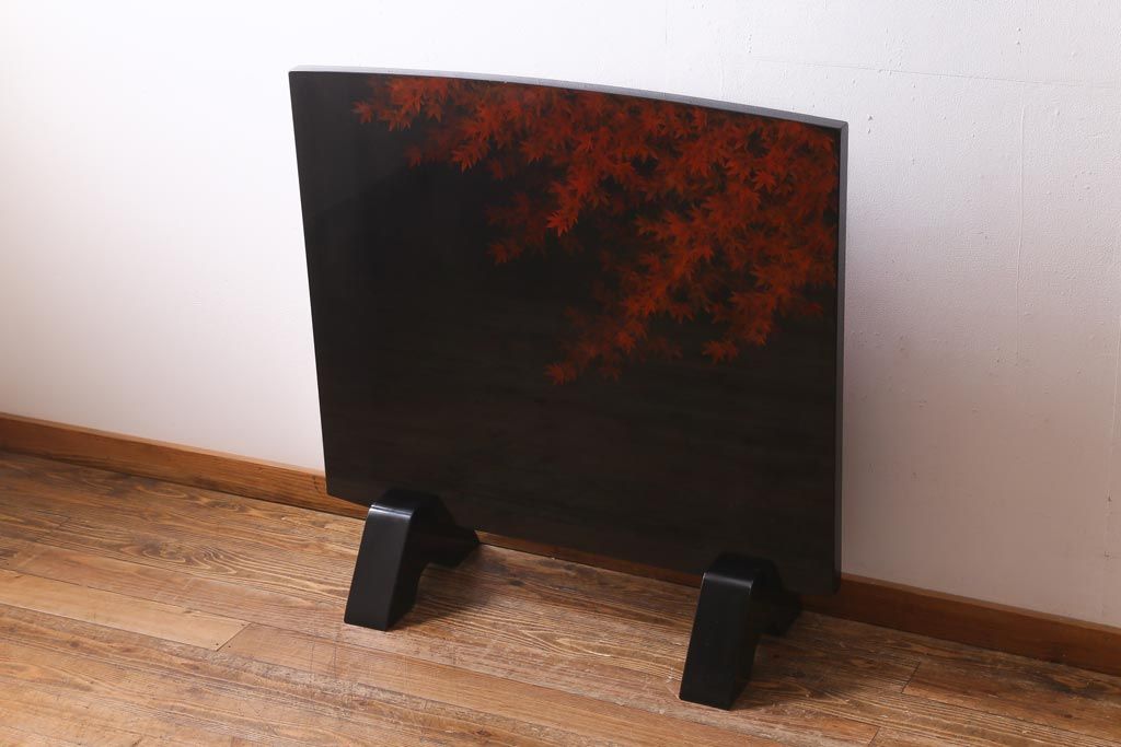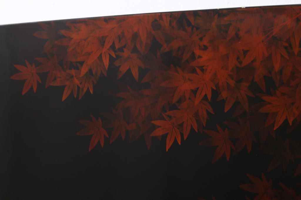 中古 漆塗 広堂作 夕焼紅葉図 朱と黒のコントラストが印象的なつい立て(衝立、パーテーション)(R-038912)