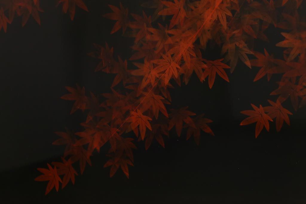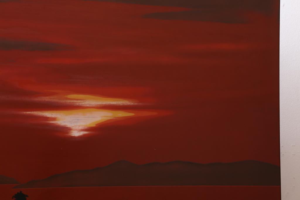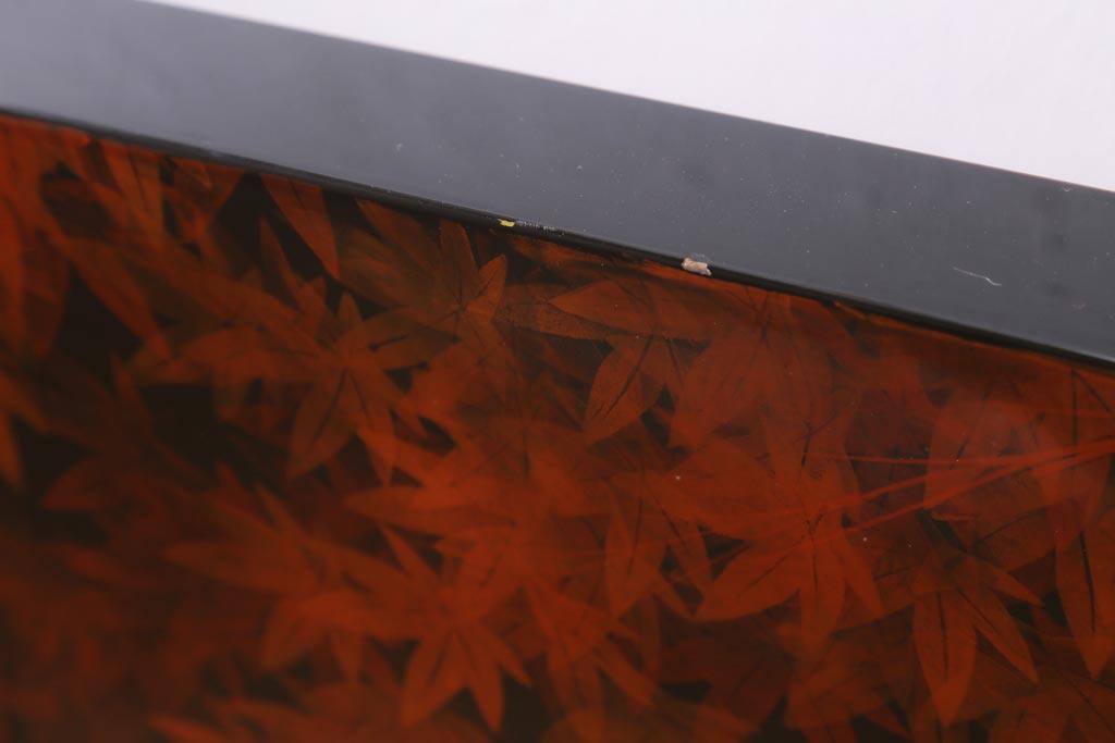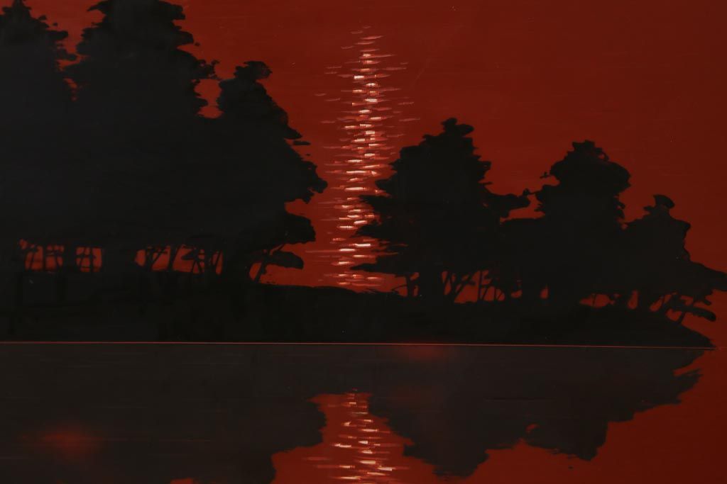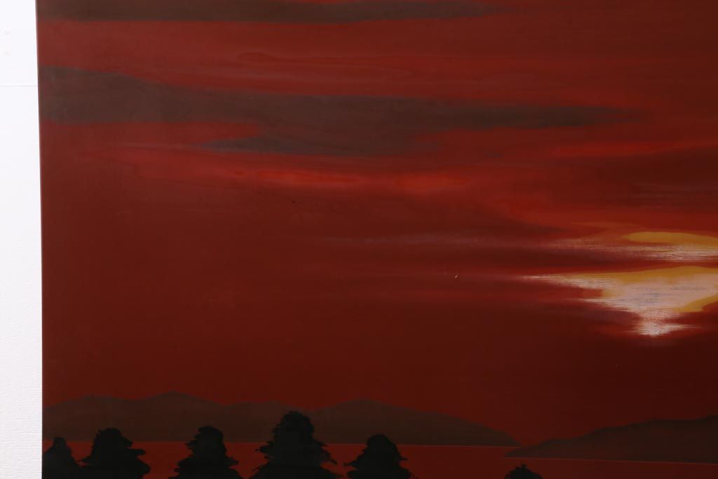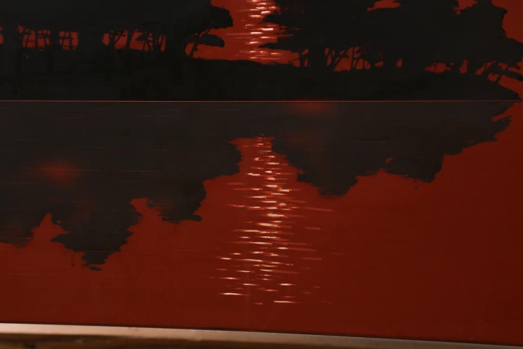 中古 漆塗 広堂作 夕焼紅葉図 朱と黒のコントラストが印象的なつい立て(衝立、パーテーション)(R-038912)