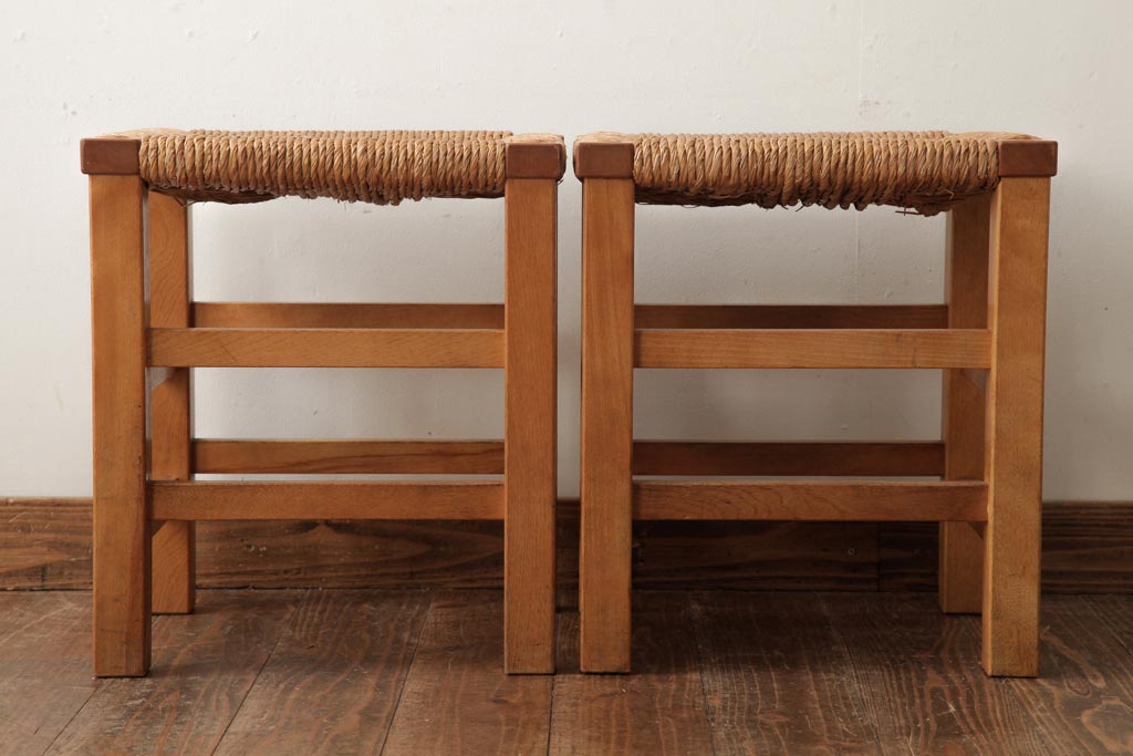 椅子・ベンチ> スツール > ビンテージ家具 松本民芸家具 初期モデル ラッシスツール2脚セット(チェア、椅子)(R-038902)