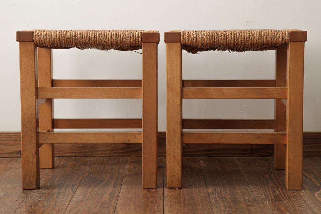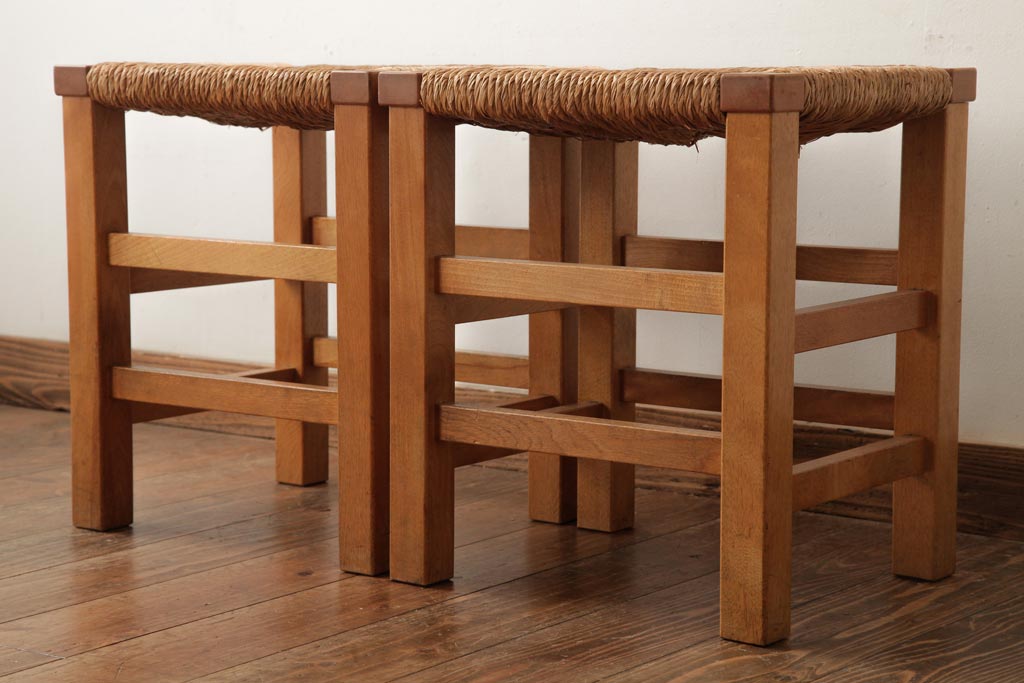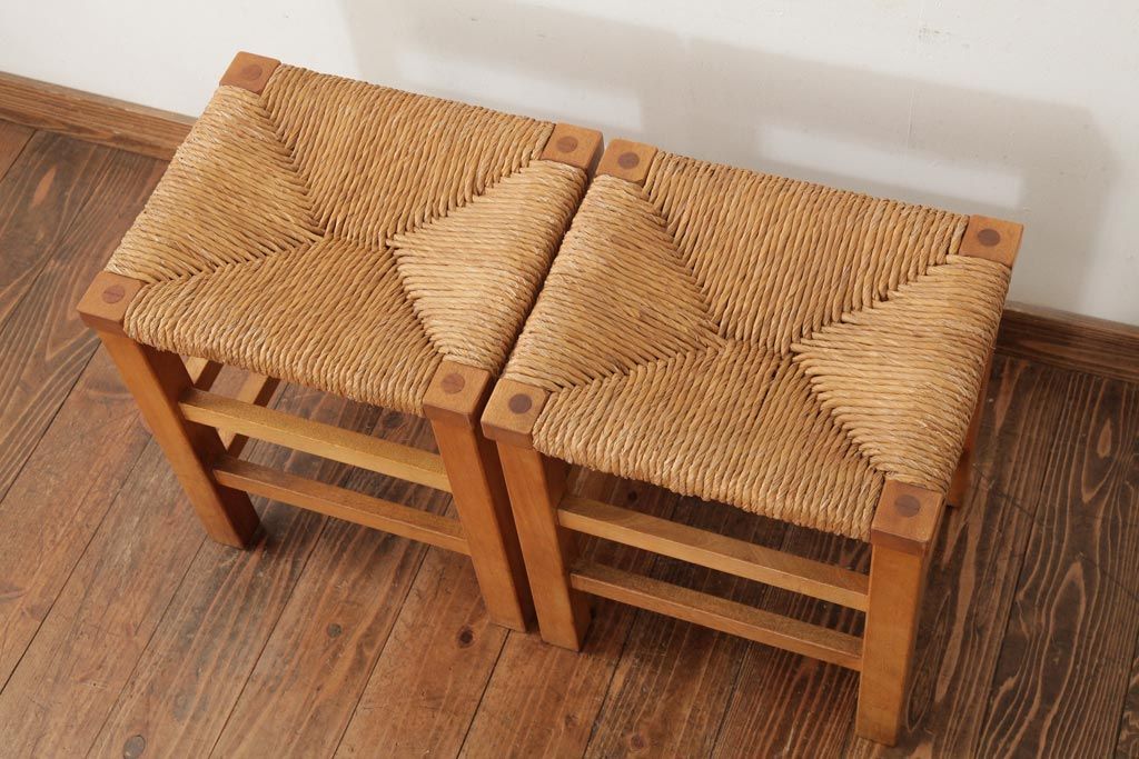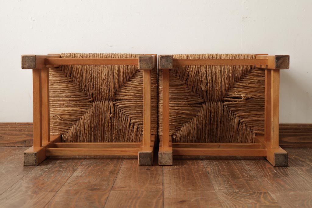 民芸家具 > ビンテージ家具 松本民芸家具 初期モデル ラッシスツール2脚セット(チェア、椅子)(R-038902)