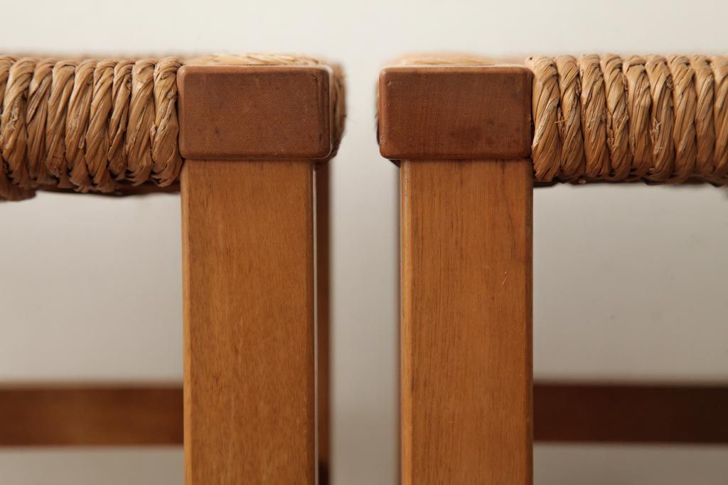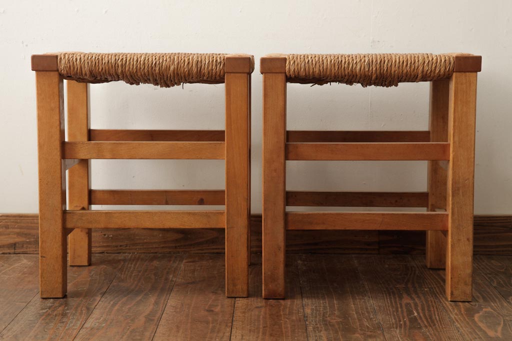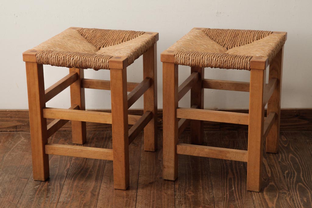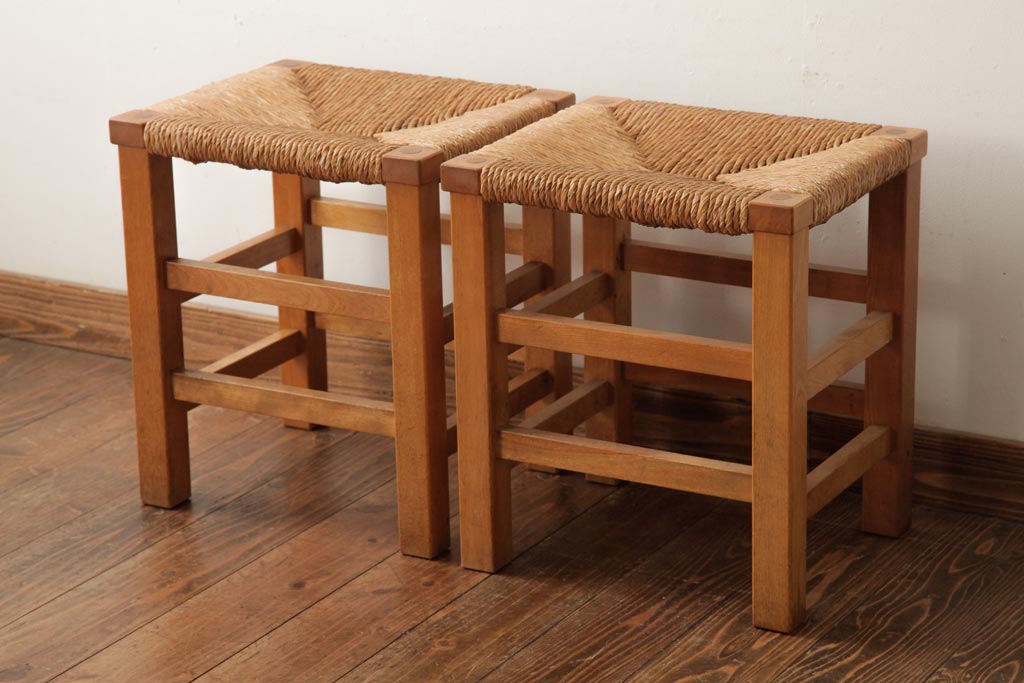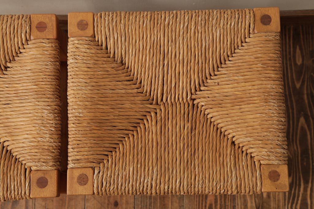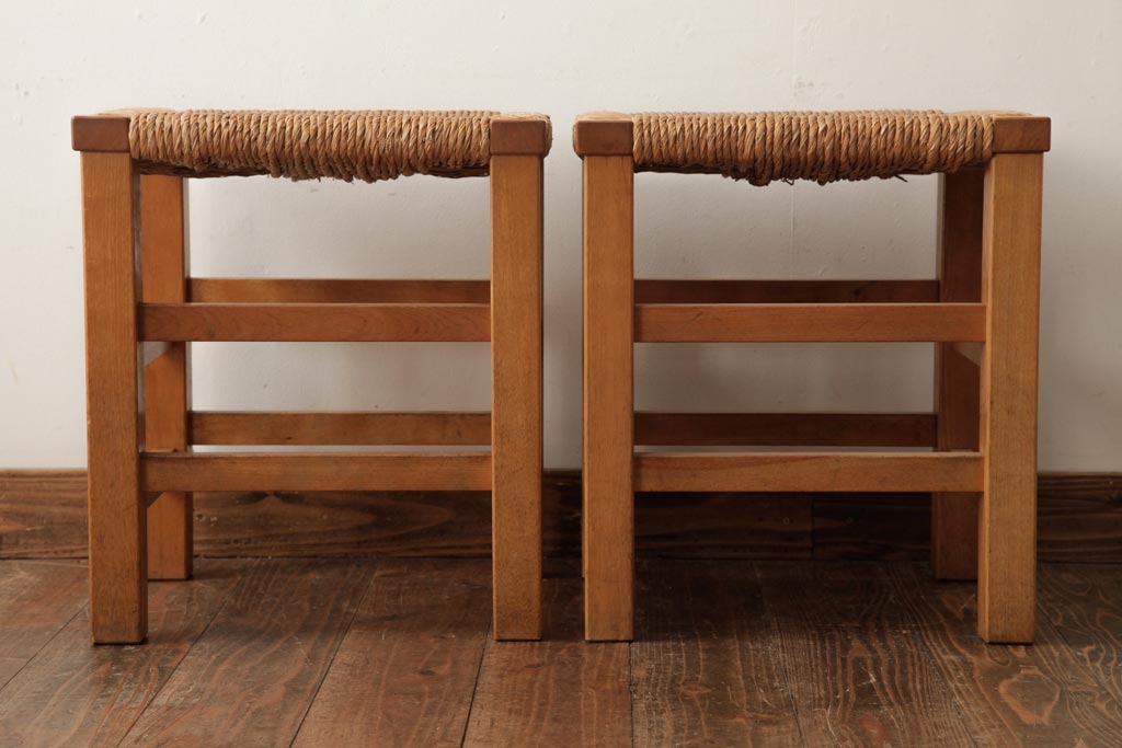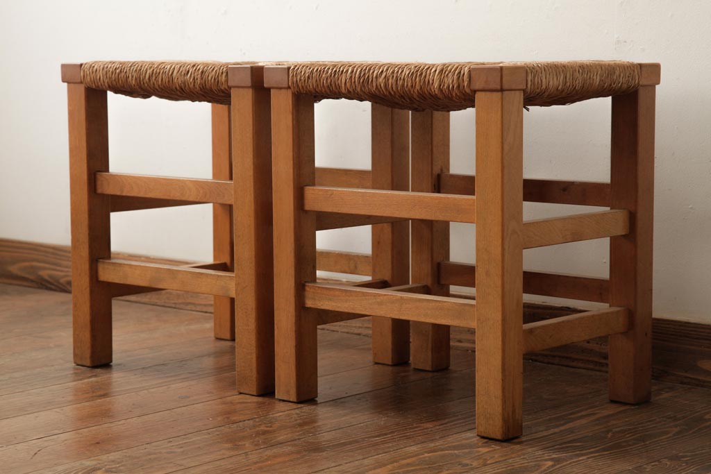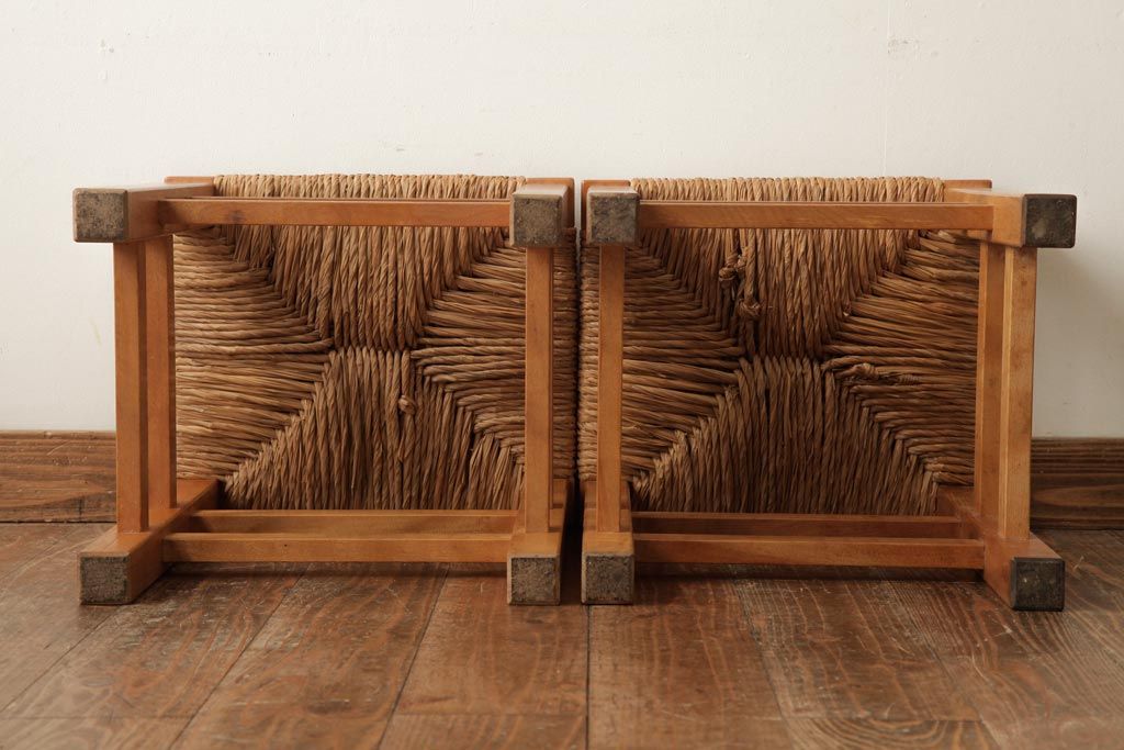 民芸家具 > ビンテージ家具 松本民芸家具 初期モデル ラッシスツール2脚セット(チェア、椅子)(R-038896)