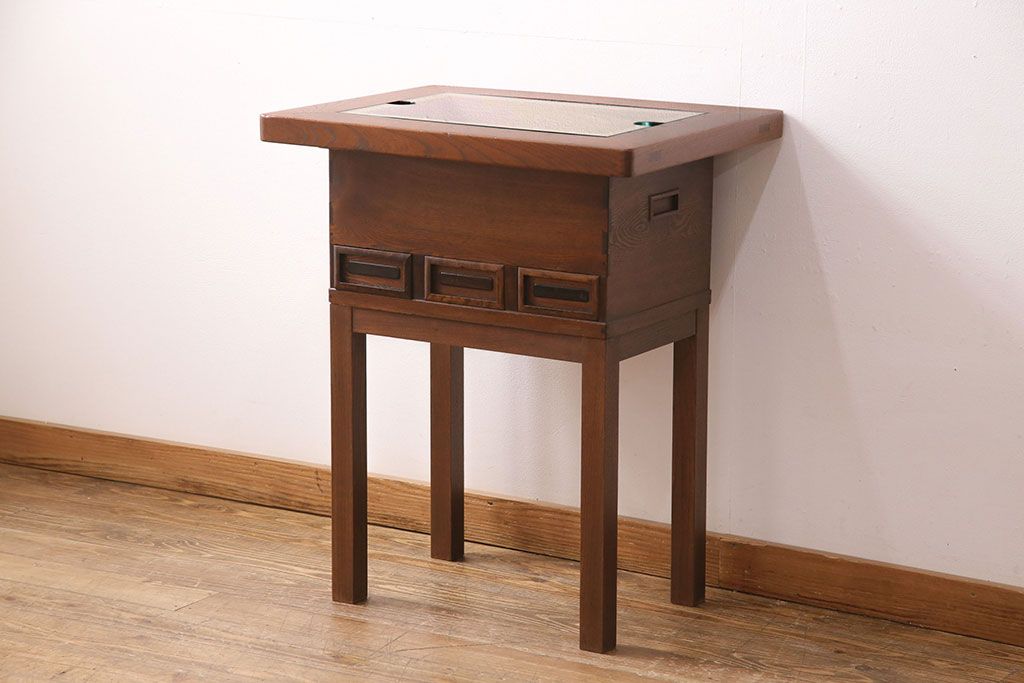 火鉢> 木製火鉢 > アンティーク雑貨 銅壺(銅壷)付き! 総欅(ケヤキ)材 関西火鉢(木製火鉢、囲炉裏)(R-038860)