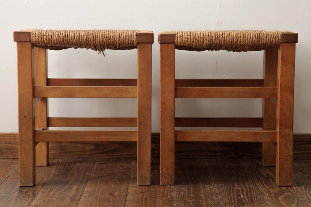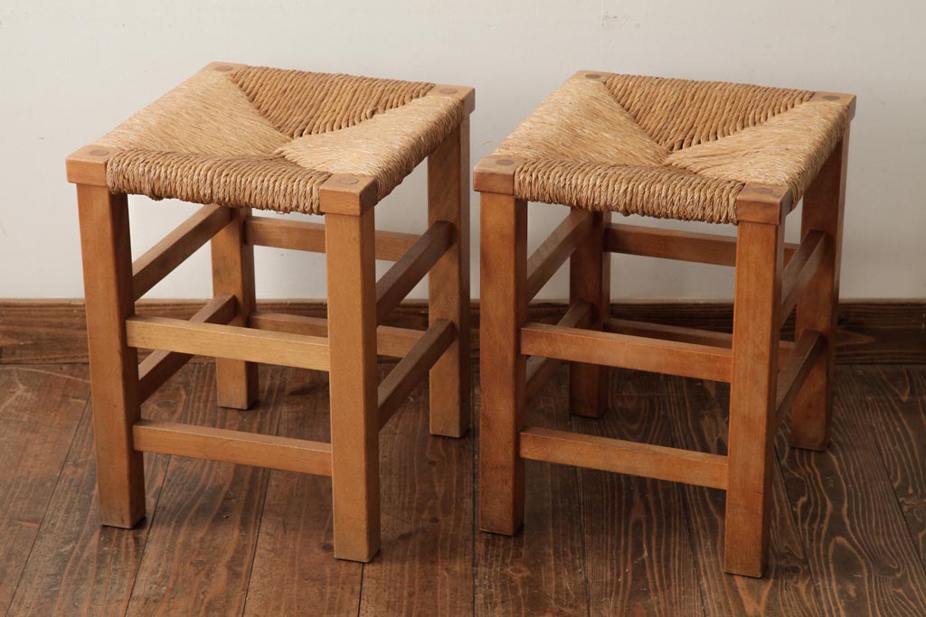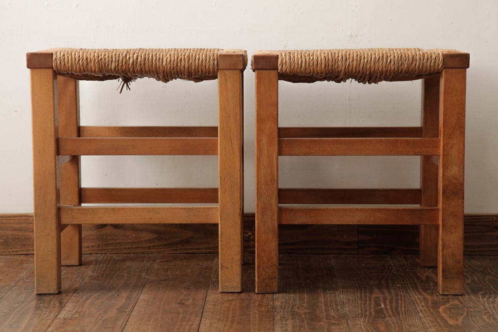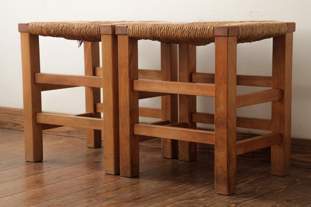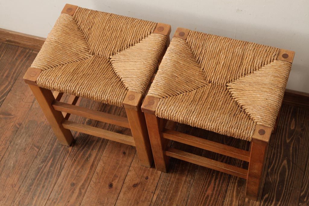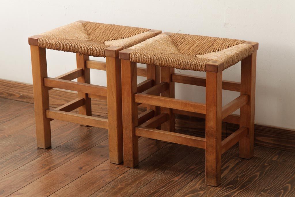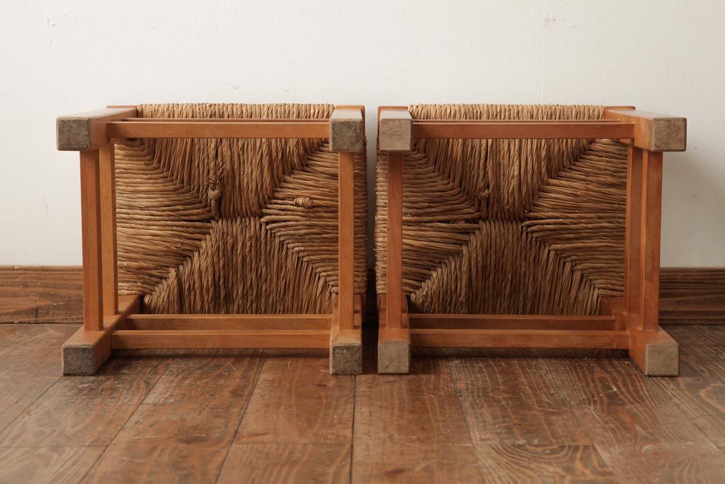 民芸家具 > ビンテージ家具 松本民芸家具 初期モデル ラッシスツール2脚セット(チェア、椅子)(R-038898)