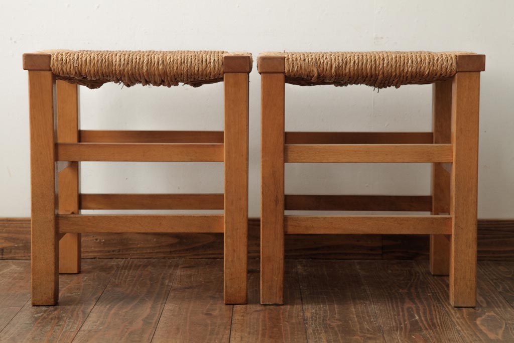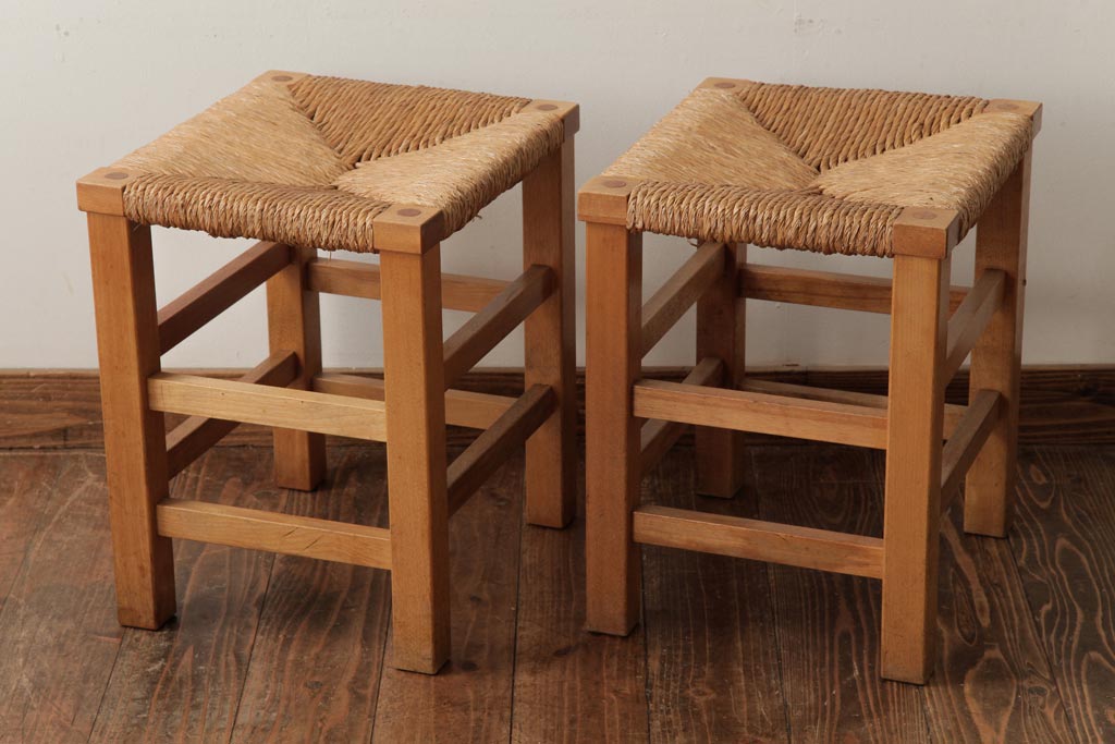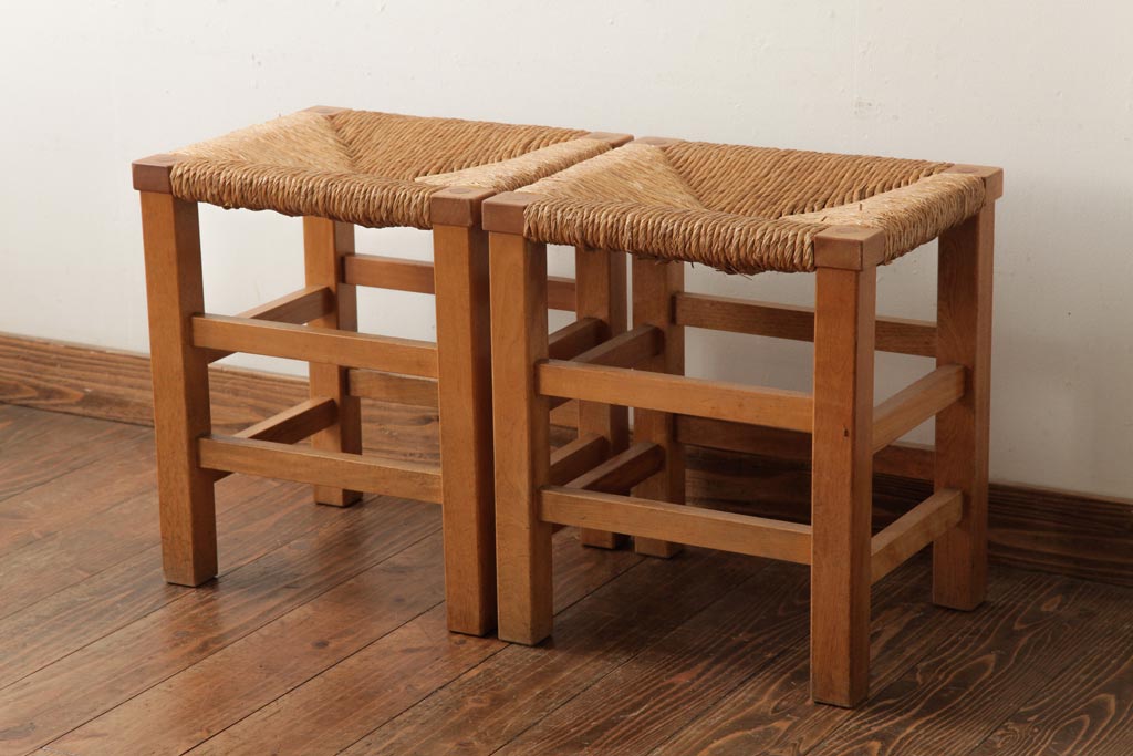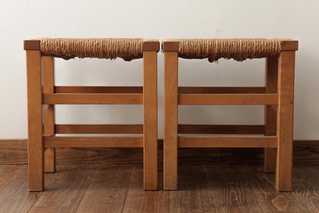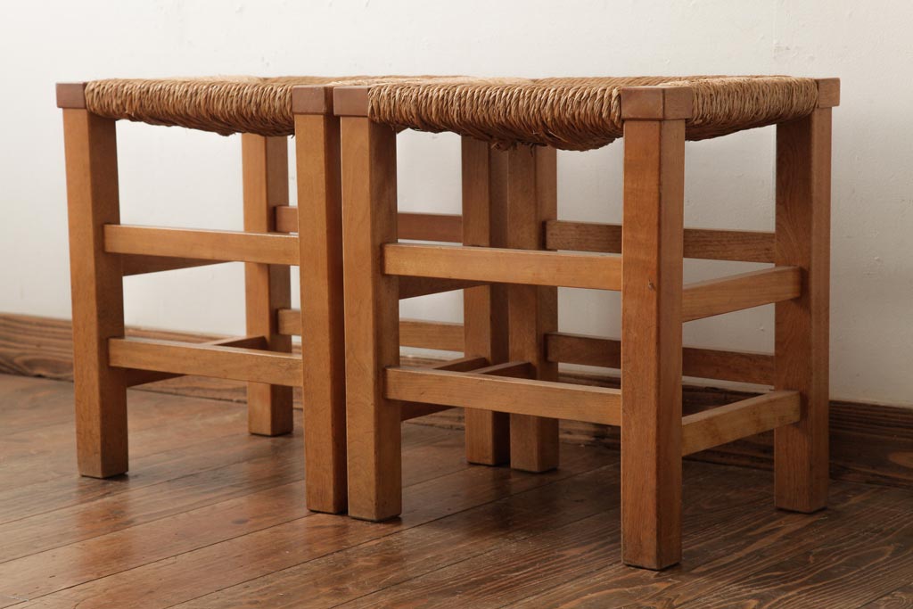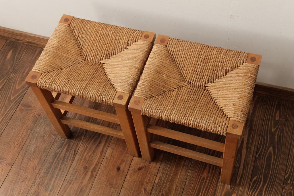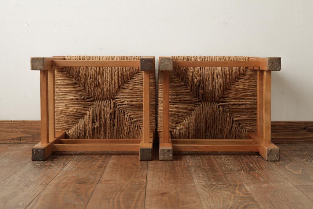 民芸家具 > ビンテージ家具 松本民芸家具 初期モデル ラッシスツール2脚セット(チェア、椅子)(R-038899)