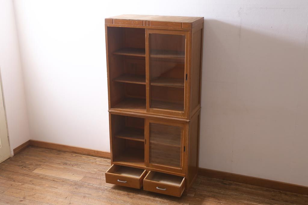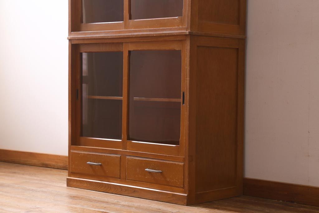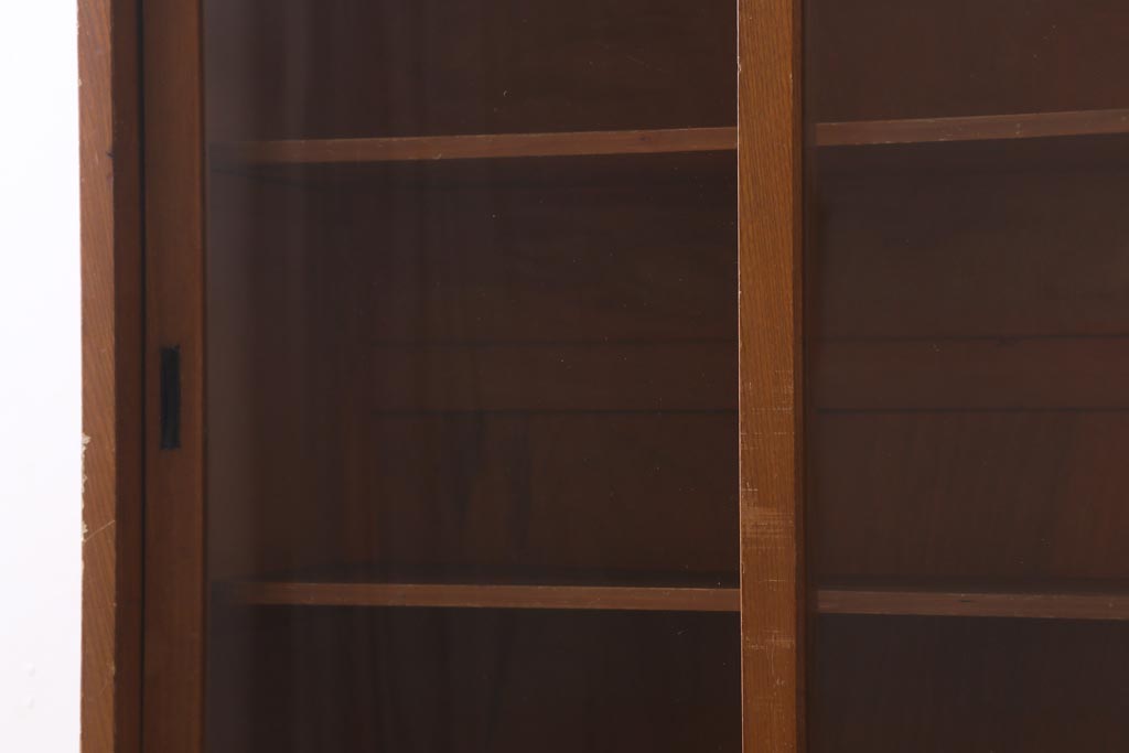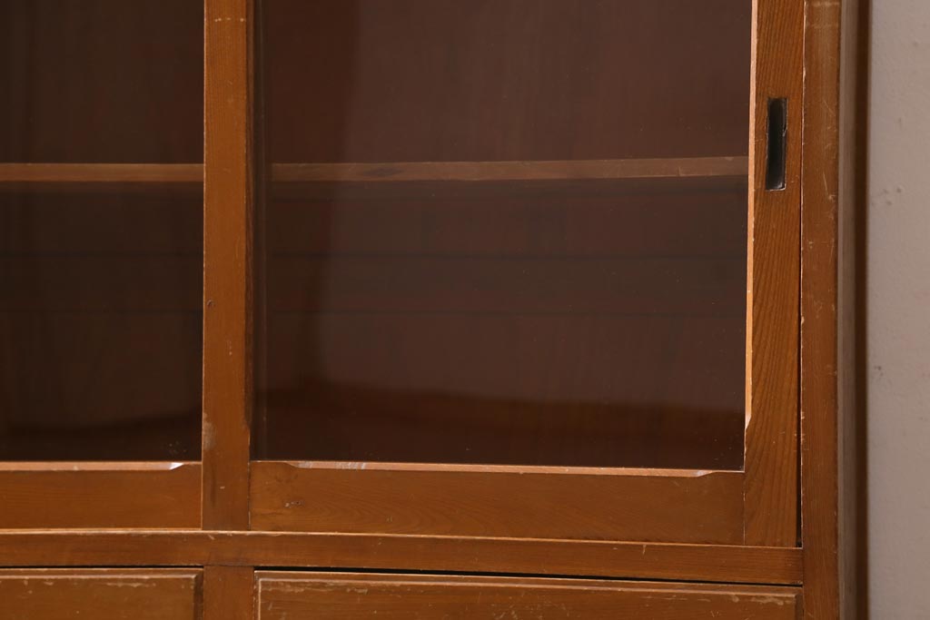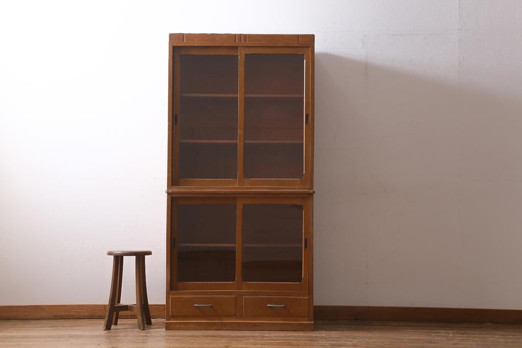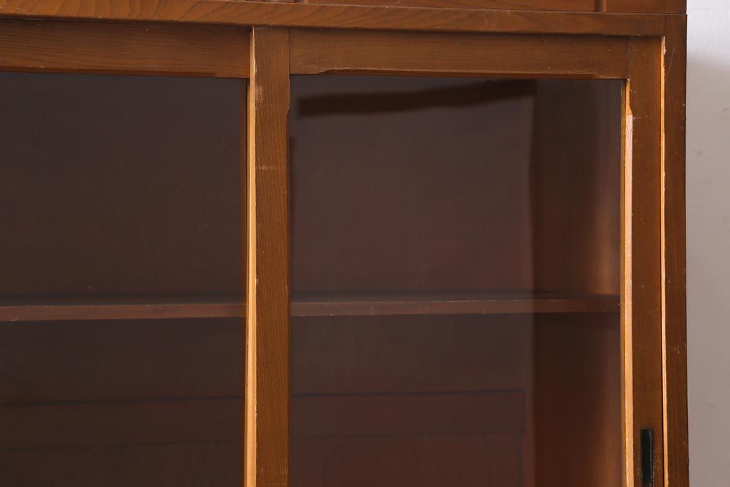 アンティーク家具 昭和レトロ家具 懐かしさ感じる重ねガラス戸棚(キャビネット、収納棚)(R-038881)