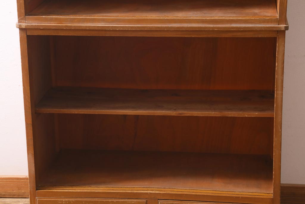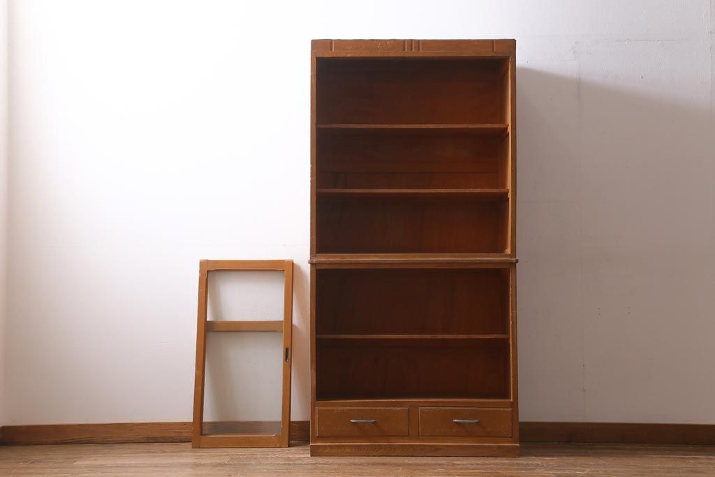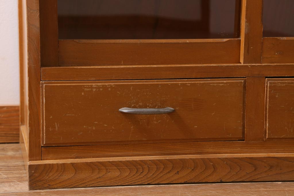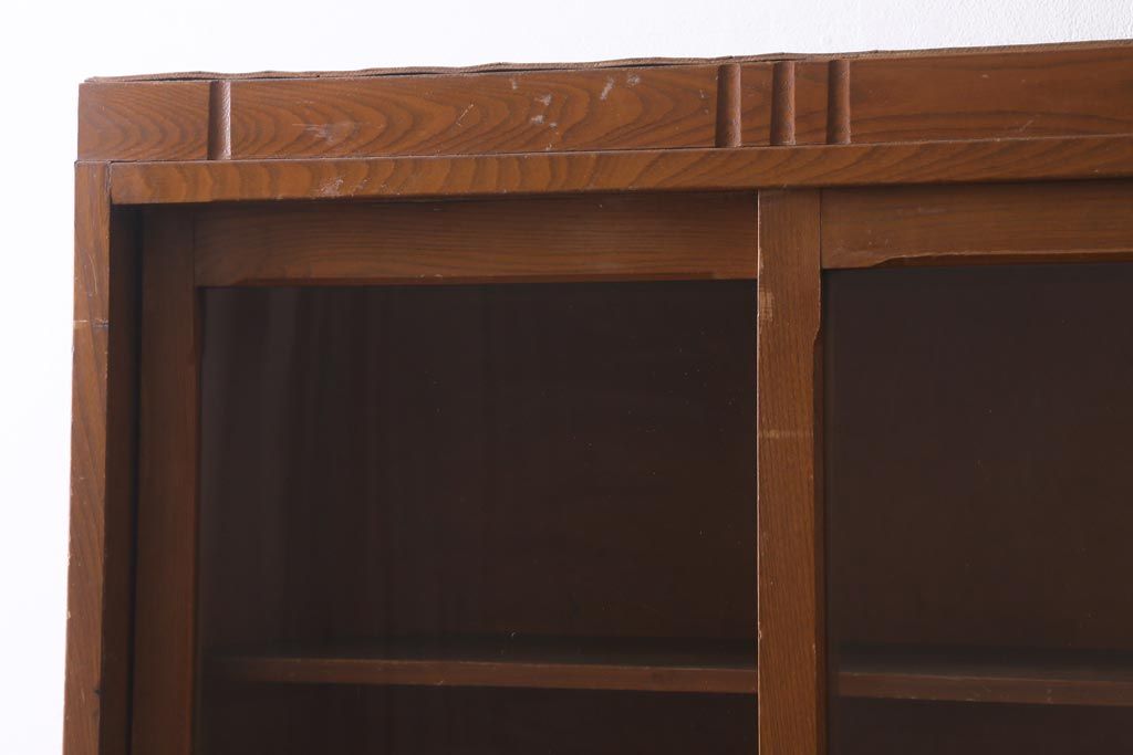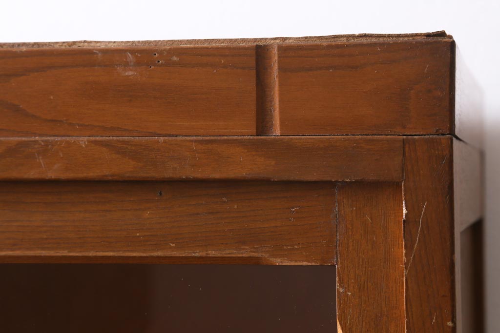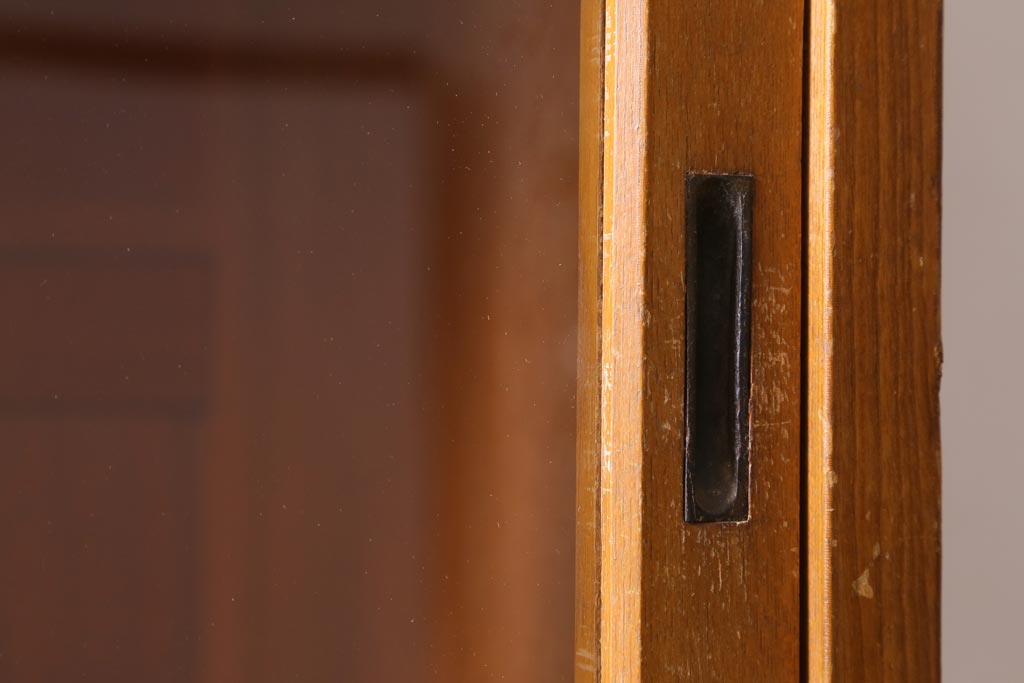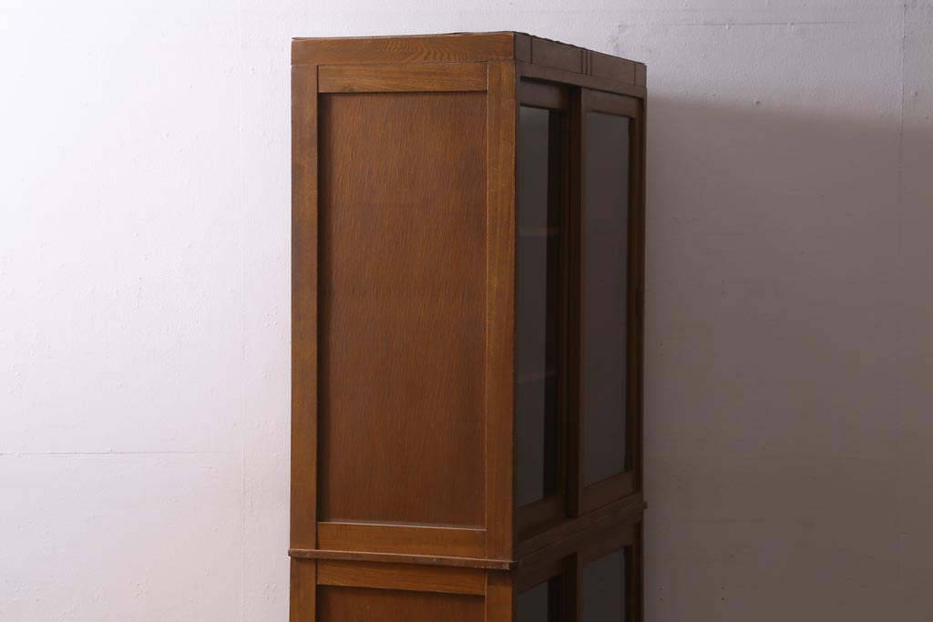 アンティーク家具 昭和レトロ家具 懐かしさ感じる重ねガラス戸棚(キャビネット、収納棚)(R-038881)