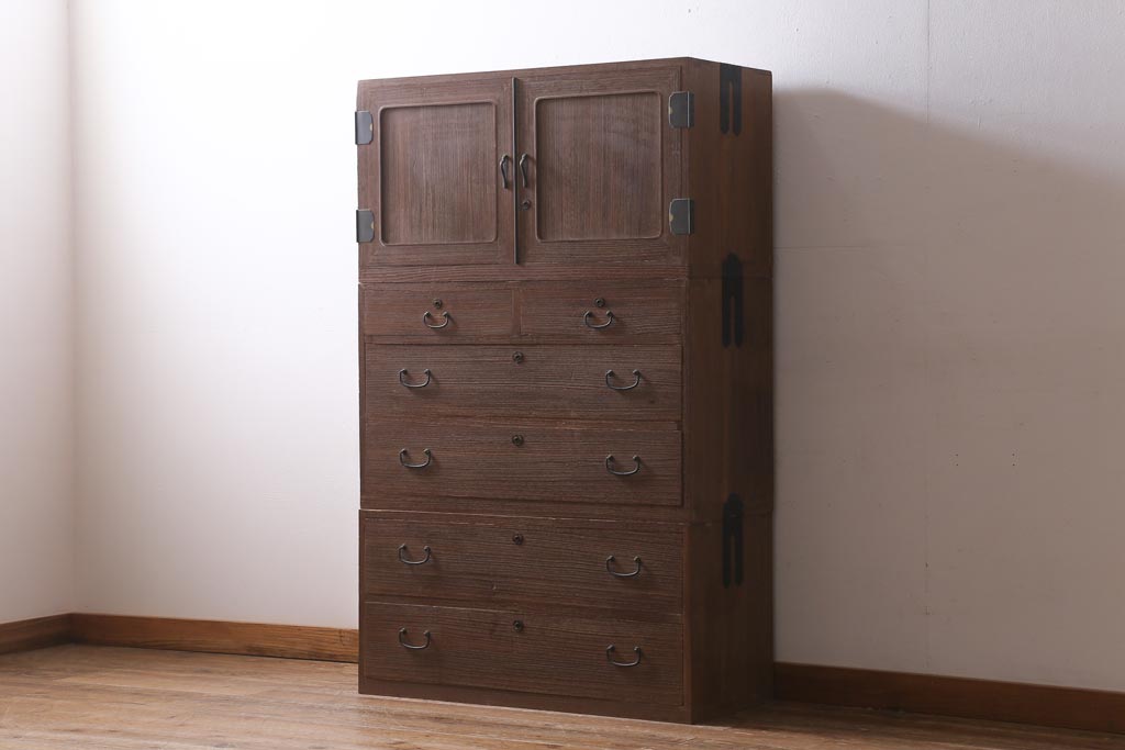 和箪笥> 衣装箪笥 > アンティーク家具 レトロな和の雰囲気漂う重ねタンス(和タンス、衣装箪笥)(R-038882)