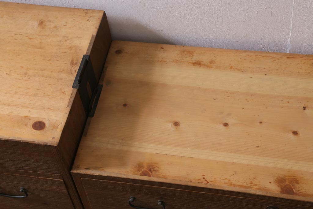 素朴な木味が魅力的な昭和中期の重ねタンスです。