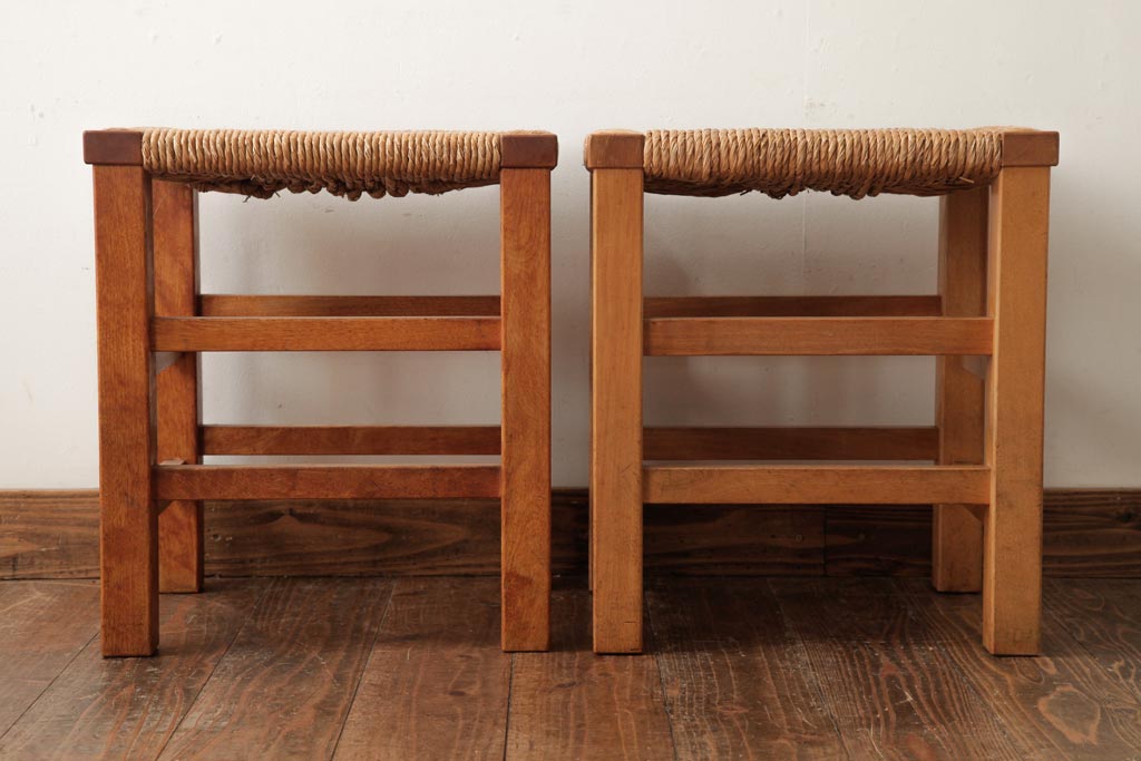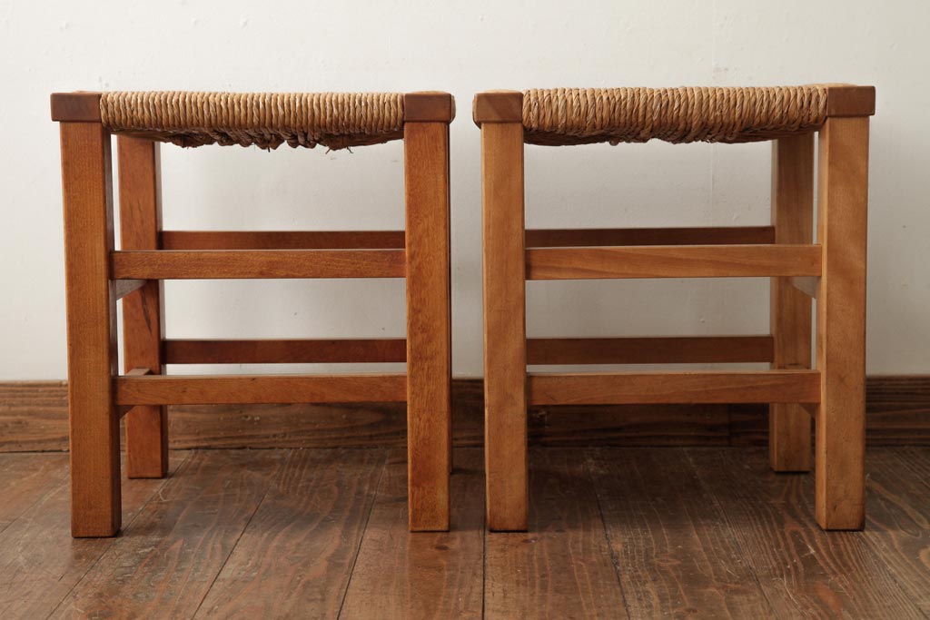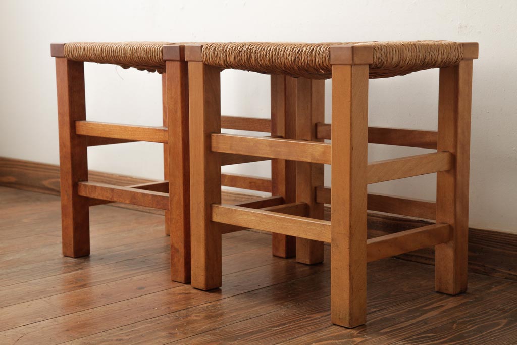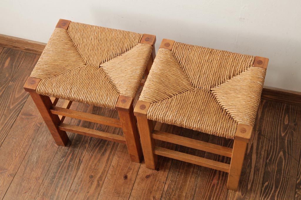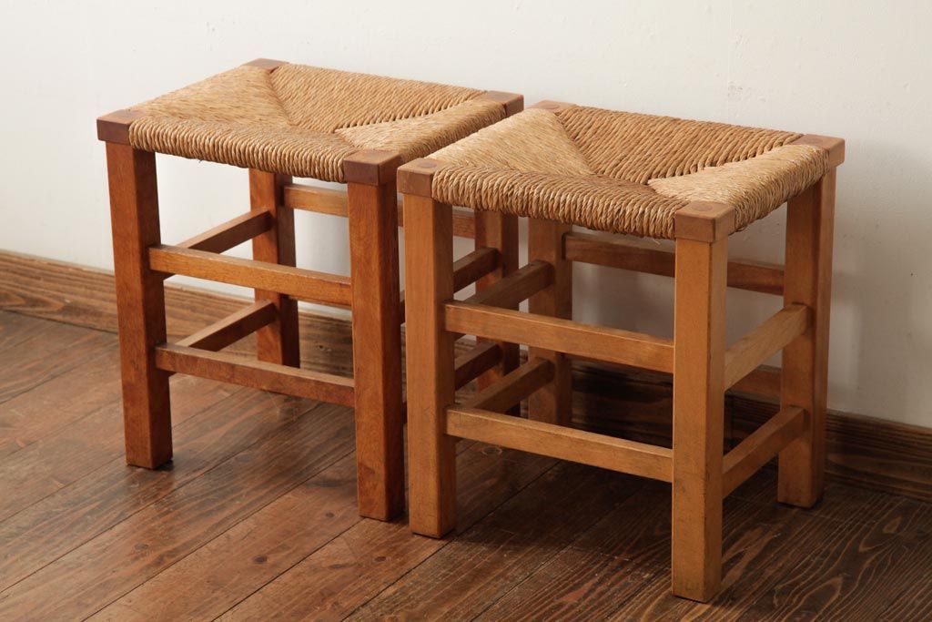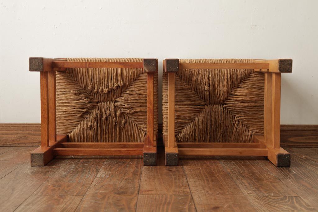 民芸家具 > ビンテージ家具 松本民芸家具 初期モデル ラッシスツール2脚セット(チェア、椅子)(R-038894)