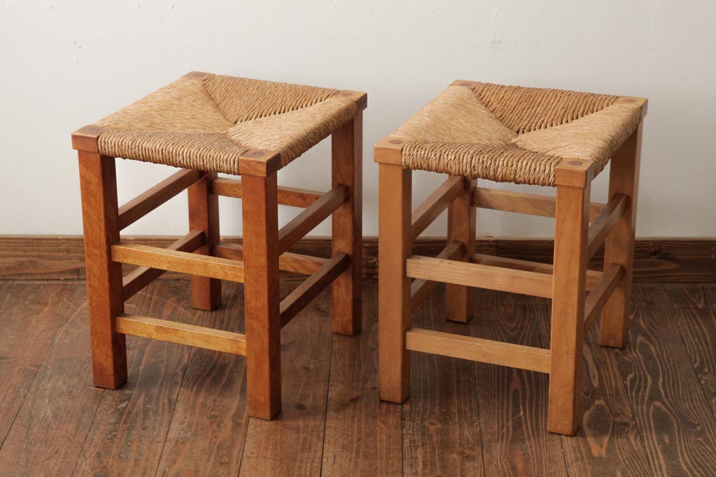 椅子・ベンチ> スツール > ビンテージ家具 松本民芸家具 初期モデル ラッシスツール2脚セット(チェア、椅子)(R-038894)