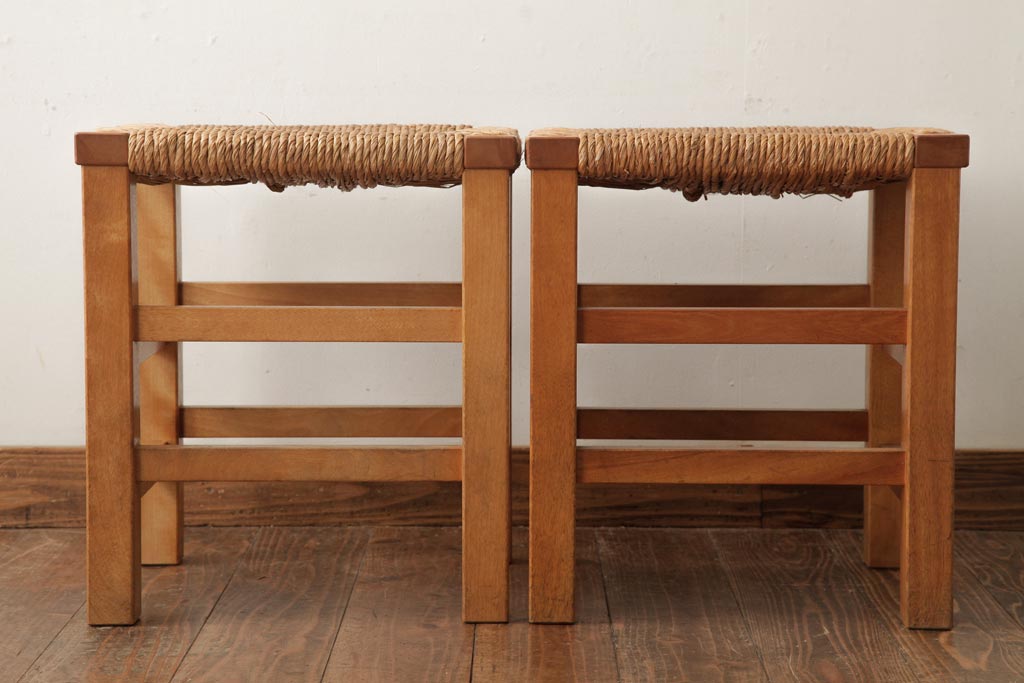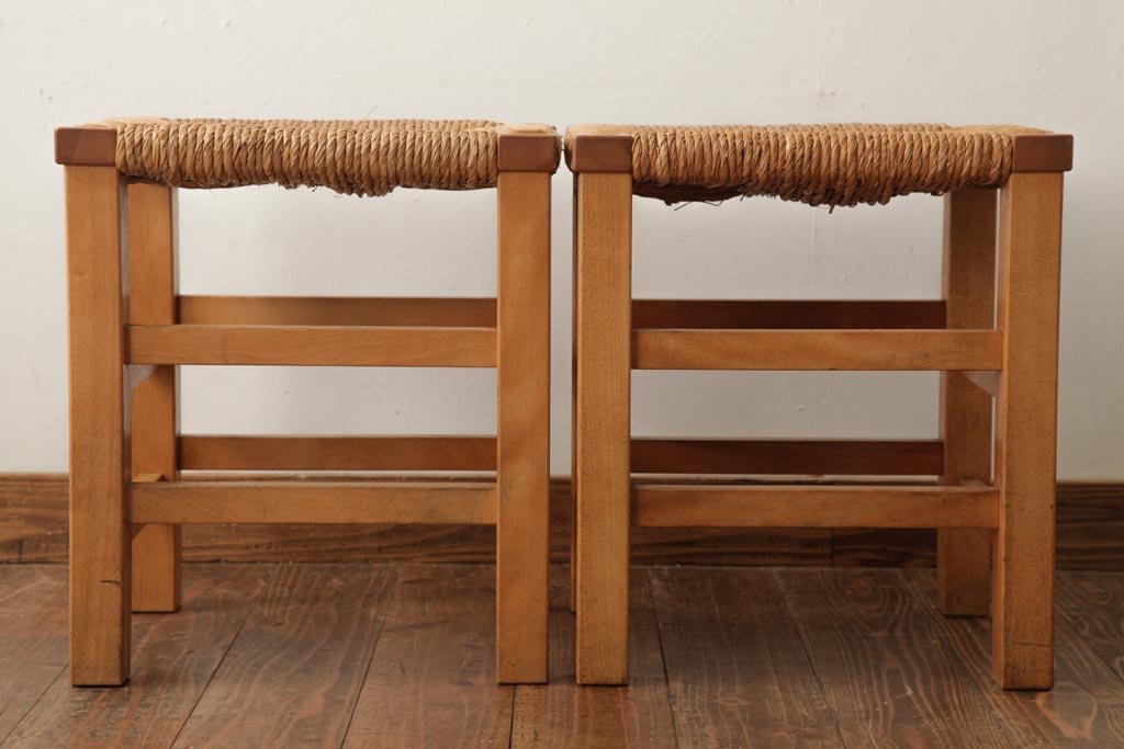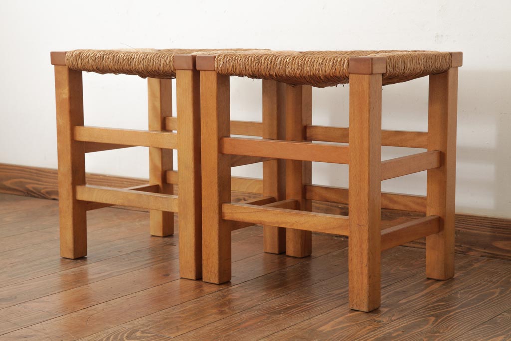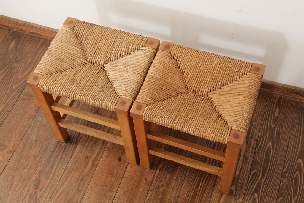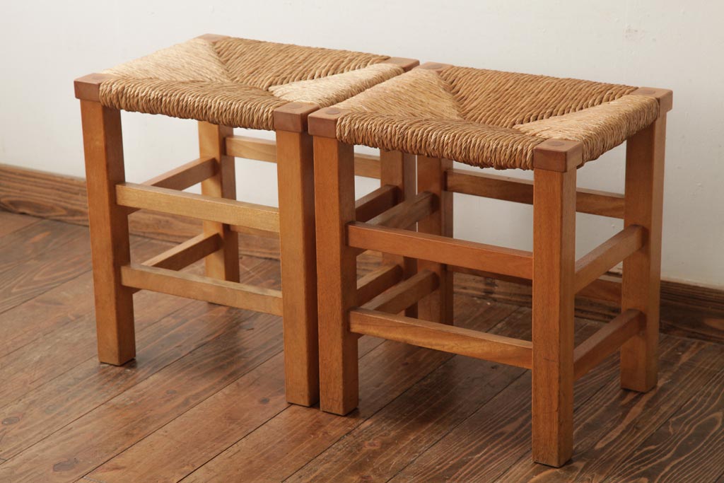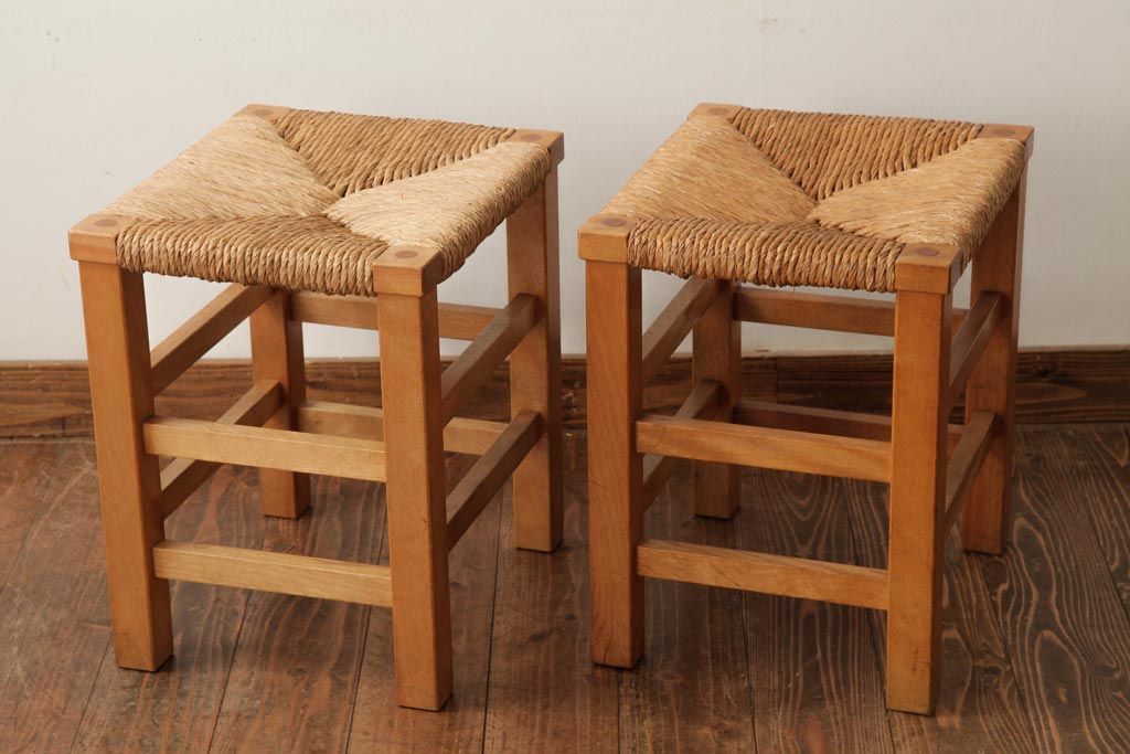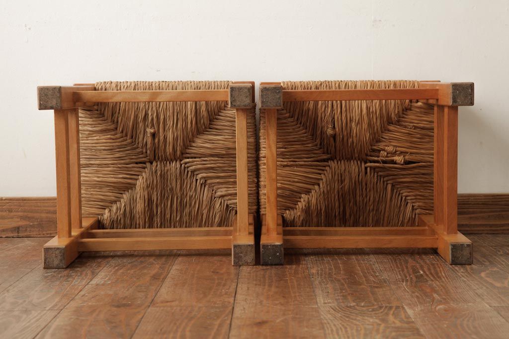 民芸家具 > ビンテージ家具 松本民芸家具 初期モデル ラッシスツール2脚セット(チェア、椅子)(R-038906)