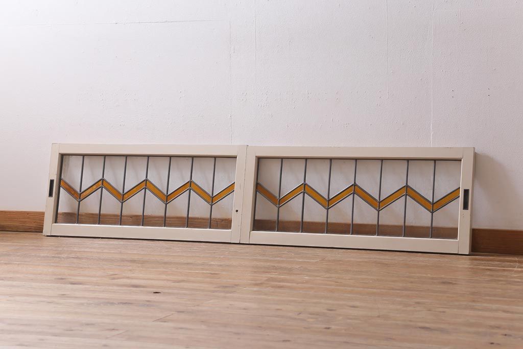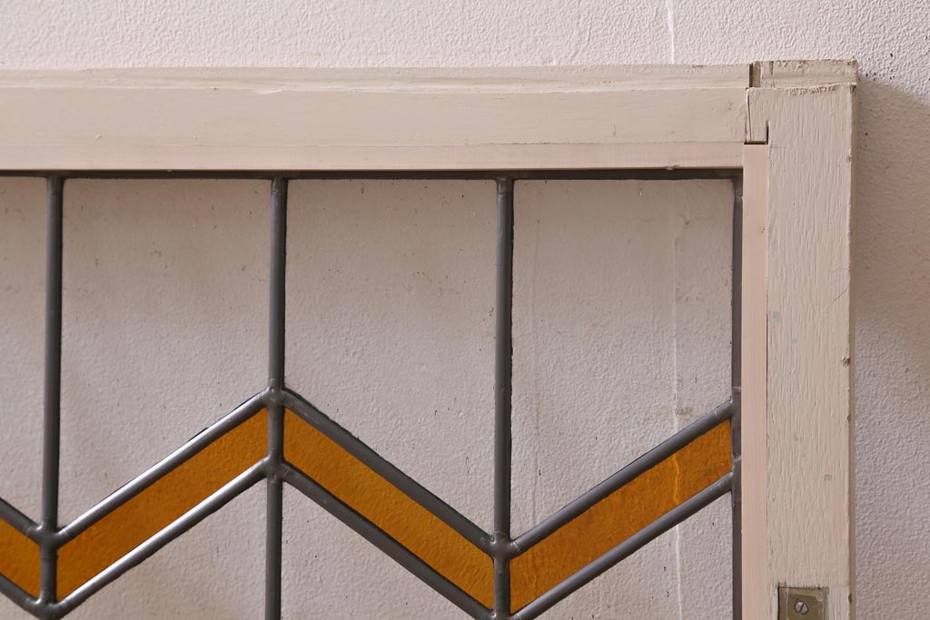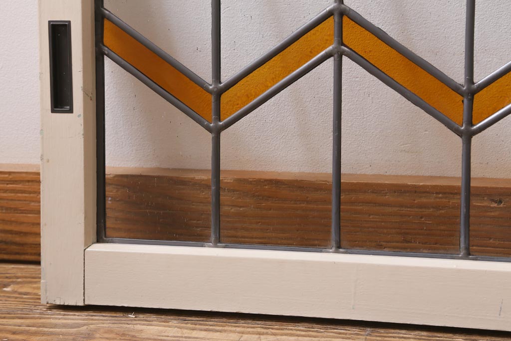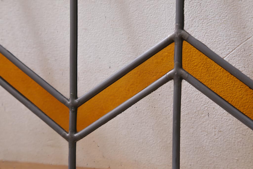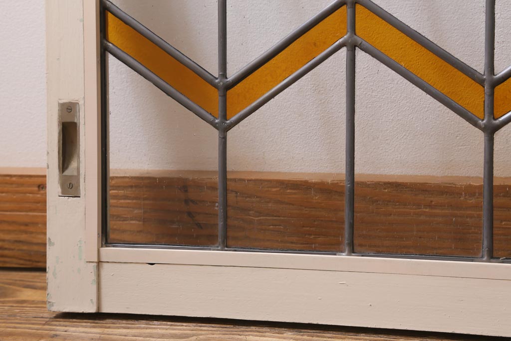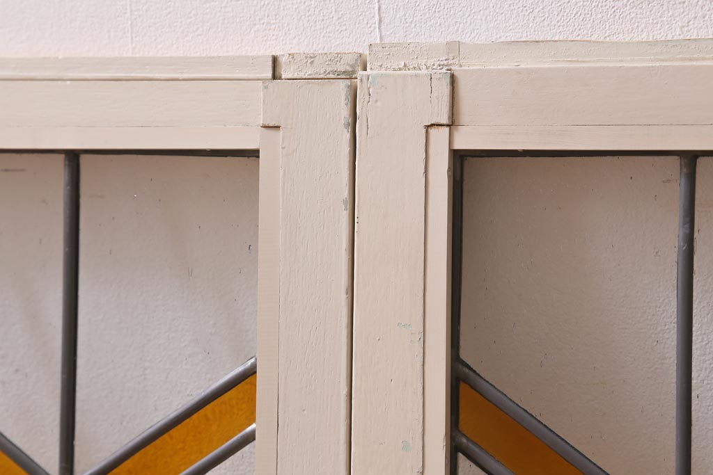 ラフジュ工房> ステンドグラス > アンティーク建具 古建具リメイク オリジナルペイント 黄色のジグザク模様が目を引くガラス戸2枚セット(窓、建具)(R-038889)