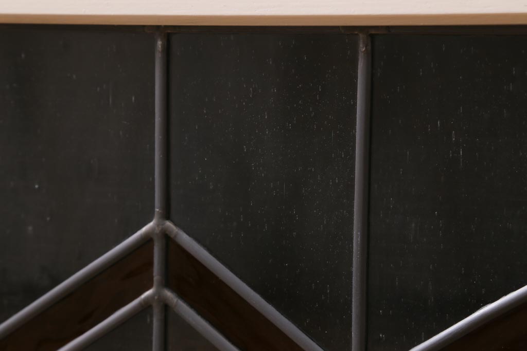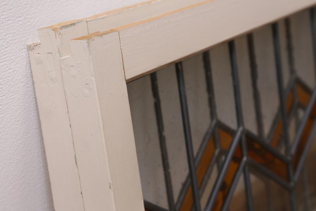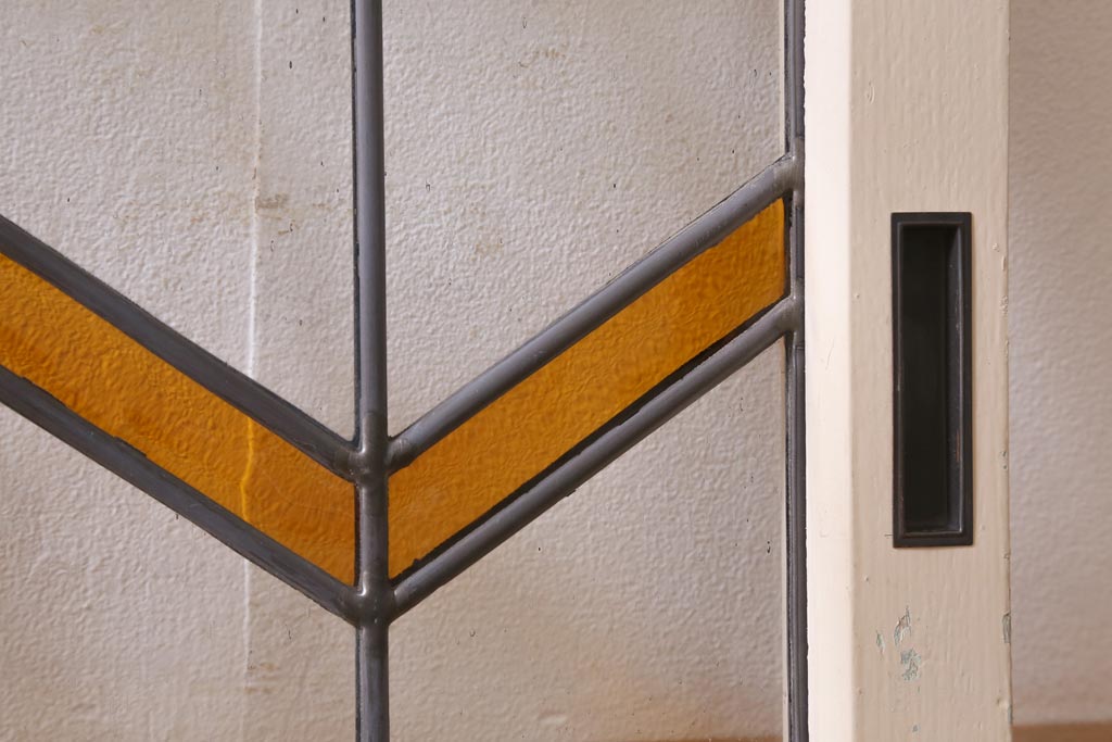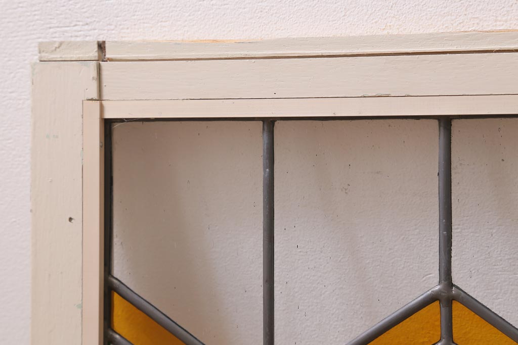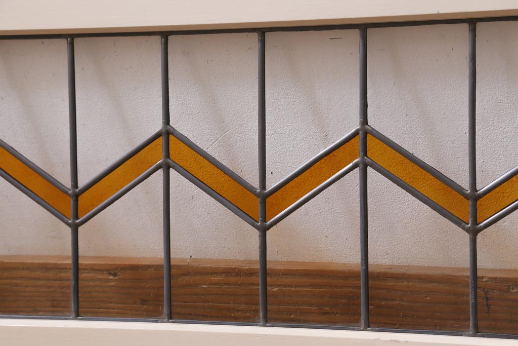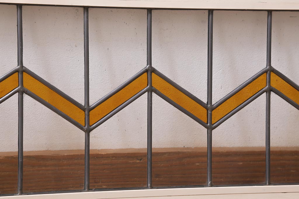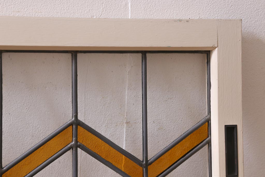ラフジュ工房> ステンドグラス > アンティーク建具 古建具リメイク オリジナルペイント 黄色のジグザク模様が目を引くガラス戸2枚セット(窓、建具)(R-038889)