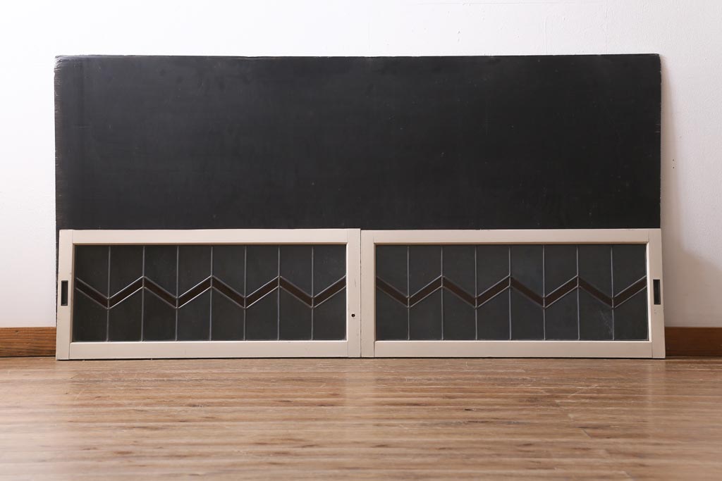 アンティーク建具 古建具リメイク オリジナルペイント 黄色のジグザク模様が目を引くガラス戸2枚セット(窓、建具)(R-038889)