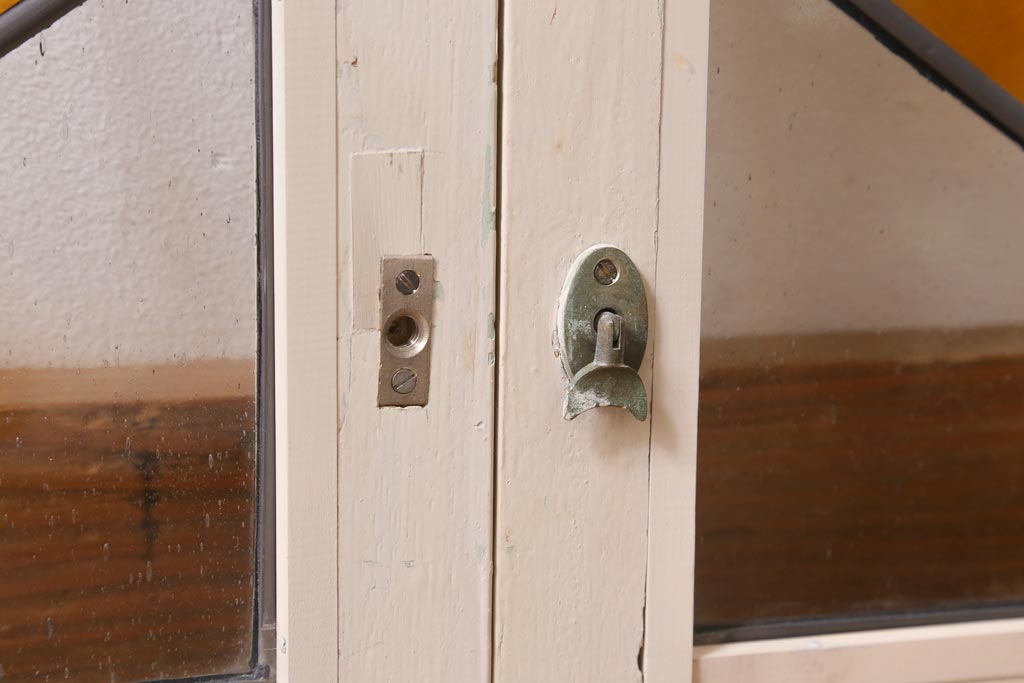 ラフジュ工房> ドア・建具> 窓 > アンティーク建具 古建具リメイク オリジナルペイント 黄色のジグザク模様が目を引くガラス戸2枚セット(窓、建具)(R-038889)