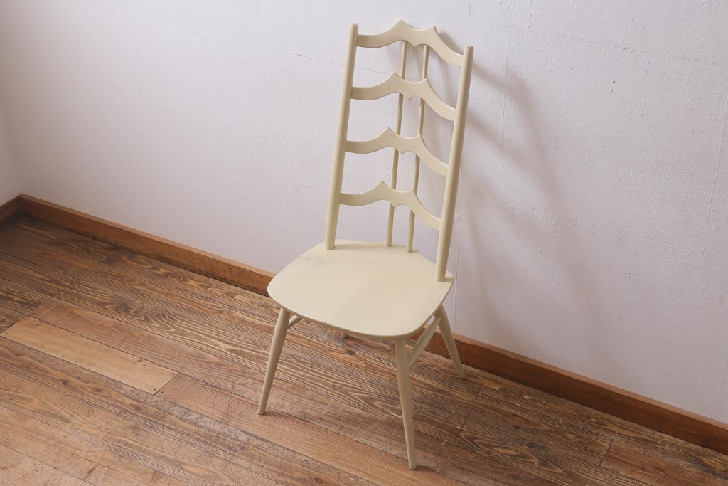 椅子・ベンチ> ダイニングチェア > ヴィンテージ家具 イギリスビンテージ ERCOL(アーコール) アンティークペイント 希少!洗練された佇まいのラダーバックチェア(ダイニングチェア、椅子)(R-038910)