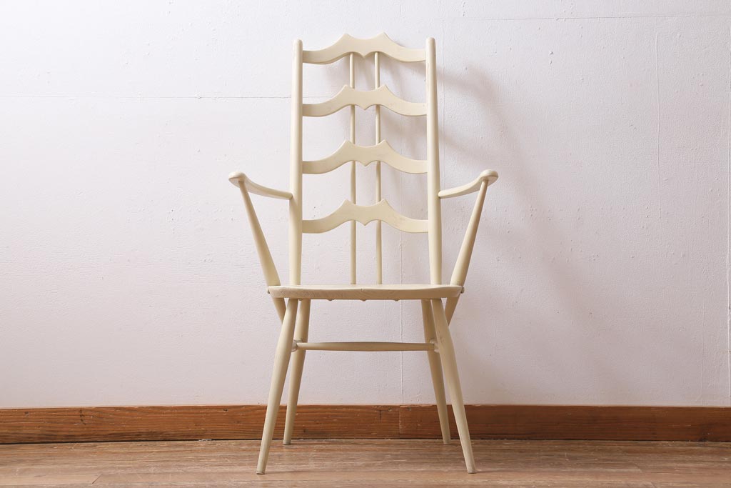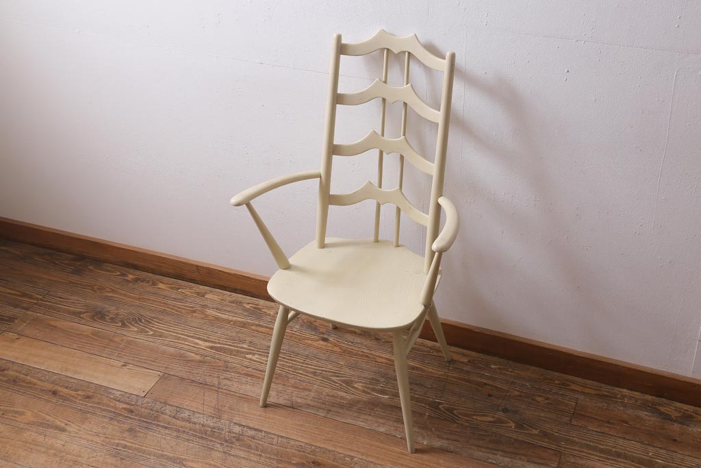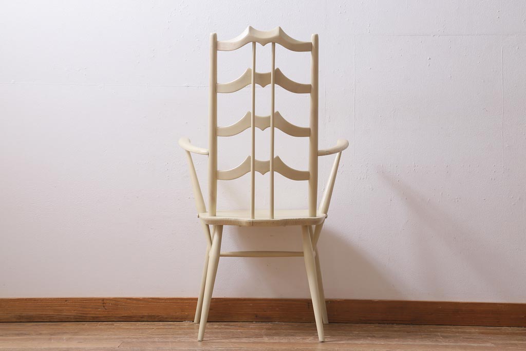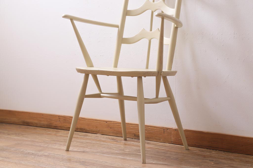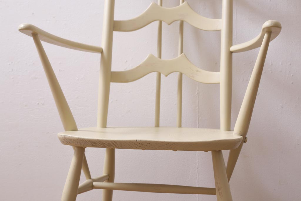 椅子・ベンチ> ダイニングチェア > ヴィンテージ家具 イギリスビンテージ ERCOL(アーコール) アンティークペイント 希少!洗練された佇まいのラダーバックアームチェア(ダイニングチェア、椅子)(R-038911)